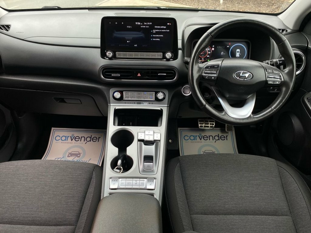 At Carvender we are presenting the stunning all-electric 2021 Hyundai Kona 64kWh Premium 5dr. This Hyundai Kona is a top-tier compact SUV designed for modern living. This Hyundai Kona is powered by a 204 Brake Horse Power (BHP) motor and offers eco-friendly seamless blend of efficiency, style and cutting-edge technology. The Hyundai Kona is equipped with a 64kWh battery which delivers a range of up to 300 miles in single charge by books. This Hyundai Kona is in eye-catching colour which features full LED headlights and sleek body lines for a sophisticated look. This Hyundai Kona is equipped with luxurious cabin with premium materials and modern features including Adaptive Cruise Control, Lane Keeping Assist, Reversing Camera, Rear & Front Parking Sensors, Heated Seats, Heated Steering, SatNav, Apple CarPlay/Android Auto, Mobile Connection and much more. We have Full Hyundai Main Dealer Service History which have been carried out at mileages of 9629, 20333, 30980 and 40972 on 25/03/2025. Contact us today to schedule a test drive or visit our website for home delivery with 14 days money back guaranty and enjoy the future of driving with zero emissions, a refined ride and high-end comfort. 10.25in Widescreen Navigation with Bluel, 100 Percent MapCare Programme - 10 Years, 17in Alloy Wheels, ABS - Anti-Lock Brake System, Adjustable Head Restraints, Airbags - Front - Front Side and Curtain, Automatic Dimming Rear View Mirror, Automatic Headlights with Dusk Sensor, Automatic Windscreen Wipers with Rain Se, Battery Heater, Blind Spot Collision Avoidance Assist, Bluetooth Connectivity with Voice Recogn, CCS Combo Rapid Charge Port - 50kW, Central Locking - Remote Control, Charging Cable - 7 Pin Type 2, Charging Cable - Emergency 3 Pin Connect, Climate Control with Automatic De-Fog Sy, Cruise Control - Smart Adaptive Speed Co, Cup Holders - Front, Daytime Running Lights - LED, Digit
