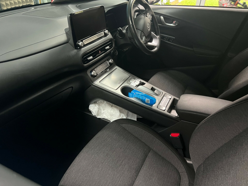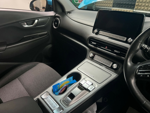 This 2022 Hyundai Kona 64kWh Premium SUV 5dr Electric Auto with 39000 miles on the clock is the perfect choice for those looking for a spacious and efficient eV this 5-seater vehicle is ULEZ compliant, making it ideal for city driving or that long trip with a WLTP range of 300 miles! . The electric engine delivers 204ps and comes with a 10.5kW AC onboard charger, while the CCS Combo Rapid Charge rate is up to 77kW. kW ensures quick and convenient charging. The sleek Dive Blue exterior is complemented by a 10.25in Widescreen Navigation with Bluelink and Mapcare system, allowing for easy navigation and updates, while Bluetooth connectivity with voice recognition adds to the convenience. With the 100 Percent MapCare Programme providing 10 years of map updates, this Hyundai Kona is as up-to-date as it is practical.These are really great and super capable cars with great range. New to eVs? Talk to us. We'd be happy to help as we are eV specialists. UK delivery. PX welcome. Hyundai history. Just serviced. Still has balance of Hyundai 5 year warranty plus 8 year battery warranty (from date of registration) .25in widescreen navigation with bluelink and mapcare, 100 percent mapcare programme - 10 years of map updates, bluetooth connectivity with voice recognition, ccs combo rapid charge port - 50kw, drivers supervision instrument cluster with full tft display - 10.25in, krell premium audio - 8 speakers and subwoofer, phone connection - android auto, phone connection - apple carplay, radio - rds and digital radio - dab, usb charger - centre console, usb and aux connections, wireless phone charging pad, ecall, 17in alloy wheels, door mirrors - body coloured, door mirrors - electric heated and folding, electric windows - front and rear, electric windows - one touch controls - driver, exterior door handles - body coloured, indicator lights - door mirror, positioning lights led, privacy glass - rear side window and tailgate, roof rails, solar glass with windscreen shade band, tyre repair kit, abs - anti-lock brake system, airbags - front - front side and curtain airbags, central locking - remote control, electric windows - anti-trap mechanism - driver, electronic stability control - esc, forward collision avoidance assist with pedestrian and cycle detection - fca, hac - hill-start assist control, immobiliser, intelligent speed limit warning - islw, lane keep assist - lka, parking brake - electric, rear cross traffic collision avoidance, smart key - keyless entry with engine start-stop button, adjustable head restraints, automatic dimming rear view mirror, automatic windscreen wipers with rain sensor, climate control with automatic de-fog system for front windscreen, cup holders - front, drivers seat height adjustment - manual, front seat back pockets - driver and passenger seat, heated front seats, heated steering wheel, interior door handles - chrome effect, interior light - ambient lighting, interior light - centre, interior light - front, lane follow assist - lfa, leather wrapped steering wheel, passenger seat height adjustment - manual, regenerative brake shift paddles, seats - drivers electric lumbar support, steering column - height and reach adjustable, steering wheel - audio controls, sun visors with driver and passenger illuminated vanity mirrors, sunglasses holder, automatic headlights with dusk sensor, daytime running lights - led, headlights - full led, rear lights - led, battery heater, blind spot collision avoidance assist, charging cable - 7 pin type 2, charging cable - emergency 3 pin connector - iccb, cruise control - smart adaptive speed control with stop and go function, digital clock, drive mode selector, forward collision warning system, motor driven power steering - mdps, parking sensors - front and rear, parking system - rear camera and guidance system, tyre pressure monitoring system - tpms, windscreen washer fluid sensor and warning indicator