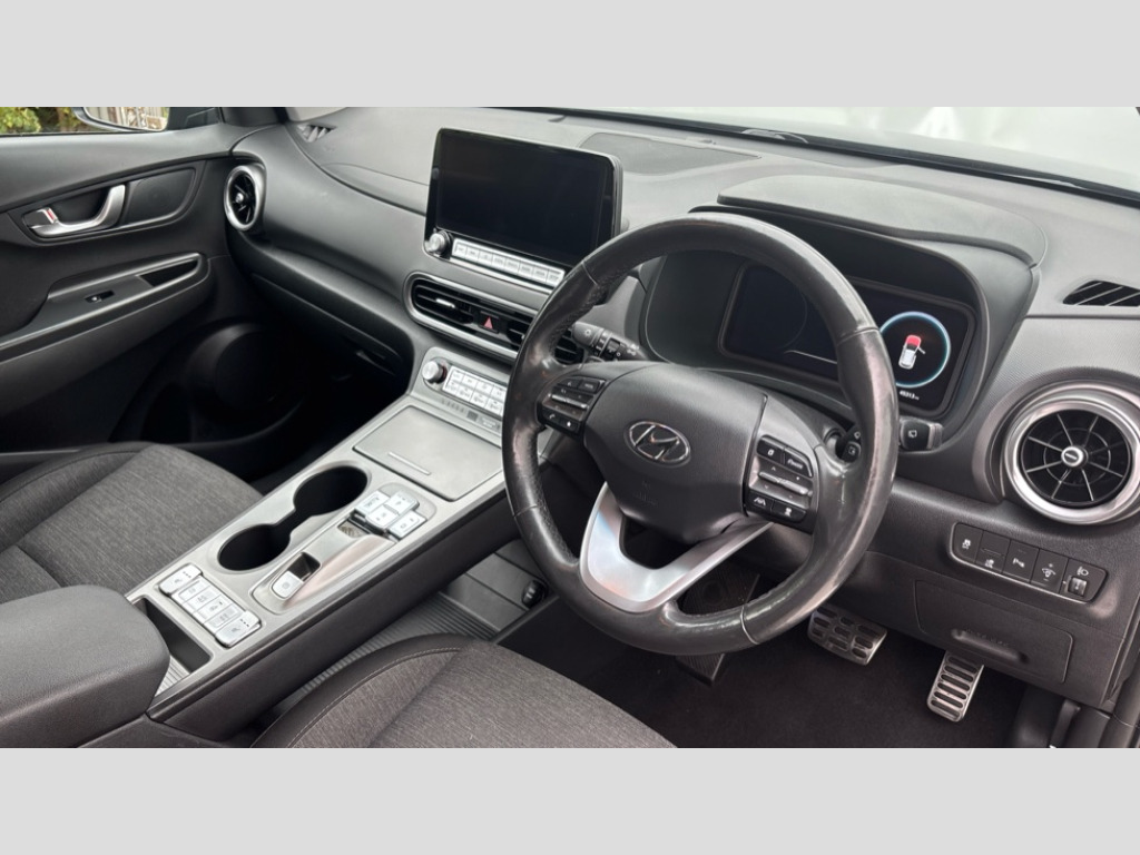 Hyundai Kona 150kW Premium 64kWh 5dr Auto 10.25" touchscreen satellite Navigation with Bluelink and Mapcare, Blind spot collision avoidance assist, Bluetooth connectivity with voice recognition, Cruise control - smart adaptive speed control with stop and go function, Digital clock, Drive mode selector, Driver supervision instrument cluster with 10.25" LCD display, eCall emergency call system, Forward collision assist with pedestrian monitoring and cycle detection, Front parking sensor, Intelligent speed limit warning, Lane follow assist, Lane keep assist, Parking system with rear camera and guidance system, PAS, Phone connection with apple carPlay and android auto, Rear cross traffic collision avoidance (RCCA), Rear parking sensor, Roadside assistance, Windscreen washer fluid sensor and warning indicator, Wireless phone charging pad, 10.5 kWh 3 Phase On Board Charger, 7 pin charging cable, Battery heater, Emergency 3 pin connector charging cable (ICCB), Single speed transmission, Vehicle Stability Control (VSC), Krell premium audio system with 8 speakers and subwoofer, RDS and Digital DAB, Steering wheel mounted audio/phone controls, USB/aux input socket, 3rd brake light, Auto dimming rear view mirror, Automatic headlights with dusk sensor, Automatic windscreen wipers with rain sensor, Body colour door mirrors and handles, Door mirror integrated indicators, Electric front/rear windows with drivers one touch/anti-trap, Electrically adjustable and heated door mirrors, Full LED MFR headlights, LED daytime running lights, LED rear lights, Positioning Lights - LED, Power folding door mirrors, Privacy glass - Rear windows and tailgate, Rear side wing doors, Rear wiper, Roof rails, Solar glass with windscreen shade band, 3 seat bench in 2nd row, 60/40 split folding rear seat, Adjustable head restraints, Ambient lighting, Automatic climate control with defog system for front windscreen, CCS Combo rapid charge port (50kW), Centre interior light, Chrome interior door handles, Cloth upholstery, Door scuff plate, Driver and passenger front seat pockets, Driver's electric adjustable lumbar support, Driver's seat height adjustment, Driver's seat manual adjustment, Driver/passenger sunvisors and illuminated vanity mirrors, Front cup holders, Front interior light, Front passenger seat manual adjustments, Heated front seats, Heated steering wheel, Height/reach adjustable steering column, Leather wrapped steering wheel, Luggage compartment undertray, Rear centre console with air vents, Single front passenger seat, Sunglasses holder, USB charger in centre console, 3x3 point rear seatbelts, Airbags - front, front side and curtain airbags, Anti-lock brake system (ABS), Autonomous Emergency Braking with pedestrian recognition, Childproof rear door locks, EBD + Brake Assist, Electric parking brake, Electronic stability control, Fasten seatbelt reminder, Front seatbelt pretensioners, Height adjustable front seatbelts, Hill start assist control (HAC), Passenger airbag deactivate switch, Regenerative brake shift paddles, Tyre pressure monitoring system with individual tyre pressure display, Alarm/immobiliser, Deadlocks, Folding key, Locking wheel nuts, Remote central locking, Smart Key - Keyless entry with Power On/Off button, 17" Alloy wheels, Tyre repair kit