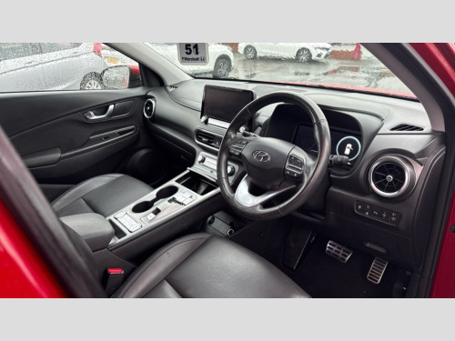 Hyundai Kona 150kW Ultimate 64kWh 5dr Auto 10.25" touchscreen satellite Navigation with Bluelink and Mapcare, Blind spot collision avoidance assist, Bluetooth connectivity with voice recognition, Cruise control - smart adaptive speed control with stop and go function, Digital clock, Drive mode selector, Driver supervision instrument cluster with 10.25" LCD display, eCall emergency call system, Forward collision assist with pedestrian monitoring and cycle detection, Front parking sensor, Head up Display, Highway driver assist, Intelligent speed limit warning, Lane follow assist, Lane keep assist, Parking system with rear camera and guidance system, PAS, Phone connection with apple carPlay and android auto, Rear cross traffic collision avoidance (RCCA), Rear parking sensor, Roadside assistance, Windscreen washer fluid sensor and warning indicator, Wireless phone charging pad, 10.5 kWh 3 Phase On Board Charger, 7 pin charging cable, Battery heater, Emergency 3 pin connector charging cable (ICCB), Single speed transmission, Vehicle Stability Control (VSC), Krell premium audio system with 8 speakers and subwoofer, RDS and Digital DAB, Steering wheel mounted audio/phone controls, USB/aux input socket, 3rd brake light, Auto dimming rear view mirror, Automatic headlights with dusk sensor, Automatic windscreen wipers with rain sensor, Body colour door mirrors and handles, Door mirror integrated indicators, Electric front/rear windows with drivers one touch/anti-trap, Electric tilt/slide glass sunroof, Electrically adjustable and heated door mirrors, Full LED MFR headlights, High beam assist, LED daytime running lights, LED rear lights, Positioning Lights - LED, Power folding door mirrors, Privacy glass - Rear windows and tailgate, Rear side wing doors, Rear wiper, Roof rails, Solar glass with windscreen shade band, Static cornering light, 3 seat bench in 2nd row, 60/40 split folding rear seat, Adjustable head restraints, Ambient lighting, Automatic climate control with defog system for front windscreen, CCS Combo rapid charge port (50kW), Centre interior light, Chrome interior door handles, Door scuff plate, Driver and passenger front seat pockets, Driver's electric adjustable lumbar support, Driver's seat electric adjustments, Driver's seat electric height adjustment, Driver/passenger sunvisors and illuminated vanity mirrors, Front cup holders, Front interior light, Front passenger's seat electric adjustments, Front passenger's seat electric height adjustment, Heated front seats, Heated outer rear seats, Heated steering wheel, Height/reach adjustable steering column, Leather upholstery, Leather wrapped steering wheel, Luggage compartment undertray, Rear centre console with air vents, Single front passenger seat, Sunglasses holder, USB charger in centre console, Ventilated front seats, 3x3 point rear seatbelts, Airbags - front, front side and curtain airbags, Anti-lock brake system (ABS), Autonomous Emergency Braking with pedestrian recognition, Childproof rear door locks, EBD + Brake Assist, Electric parking brake, Electronic stability control, Fasten seatbelt reminder, Front seatbelt pretensioners, Height adjustable front seatbelts, Hill start assist control (HAC), Passenger airbag deactivate switch, Regenerative brake shift paddles, Tyre pressure monitoring system with individual tyre pressure display, Alarm/immobiliser, Deadlocks, Folding key, Locking wheel nuts, Remote central locking, Smart Key - Keyless entry with Power On/Off button, 17" Alloy wheels, Tyre repair kit