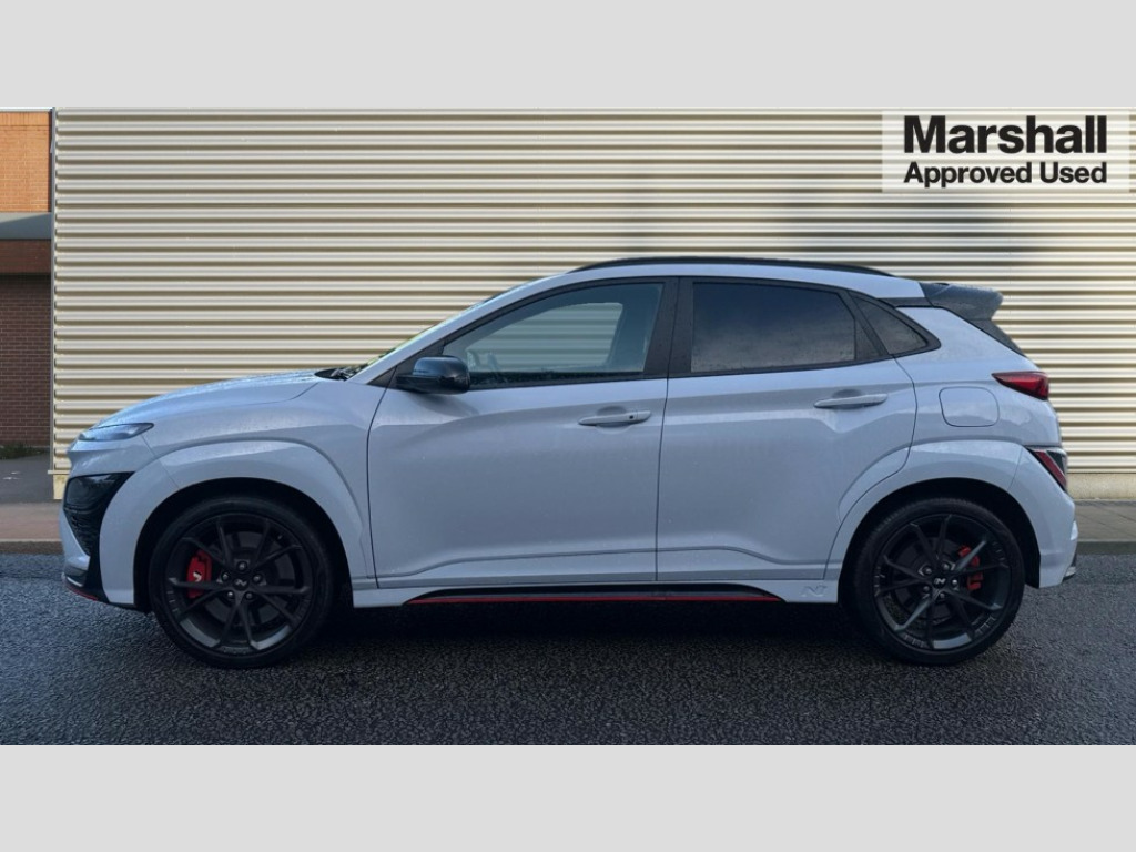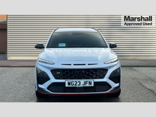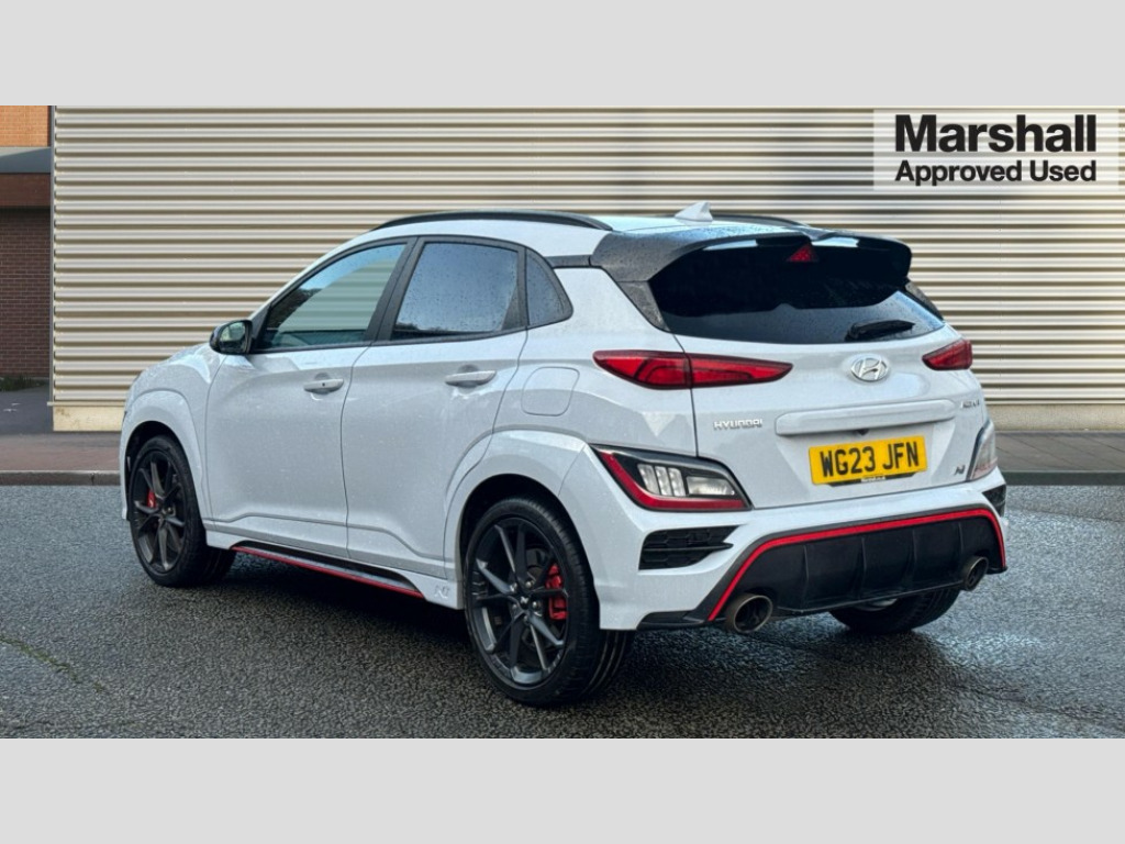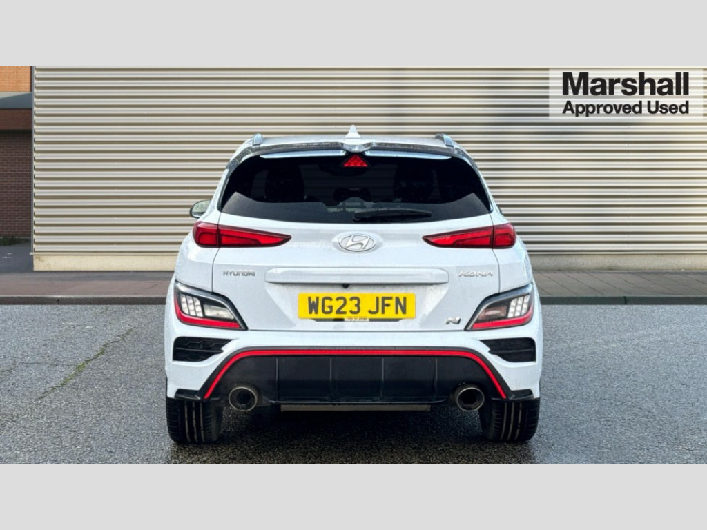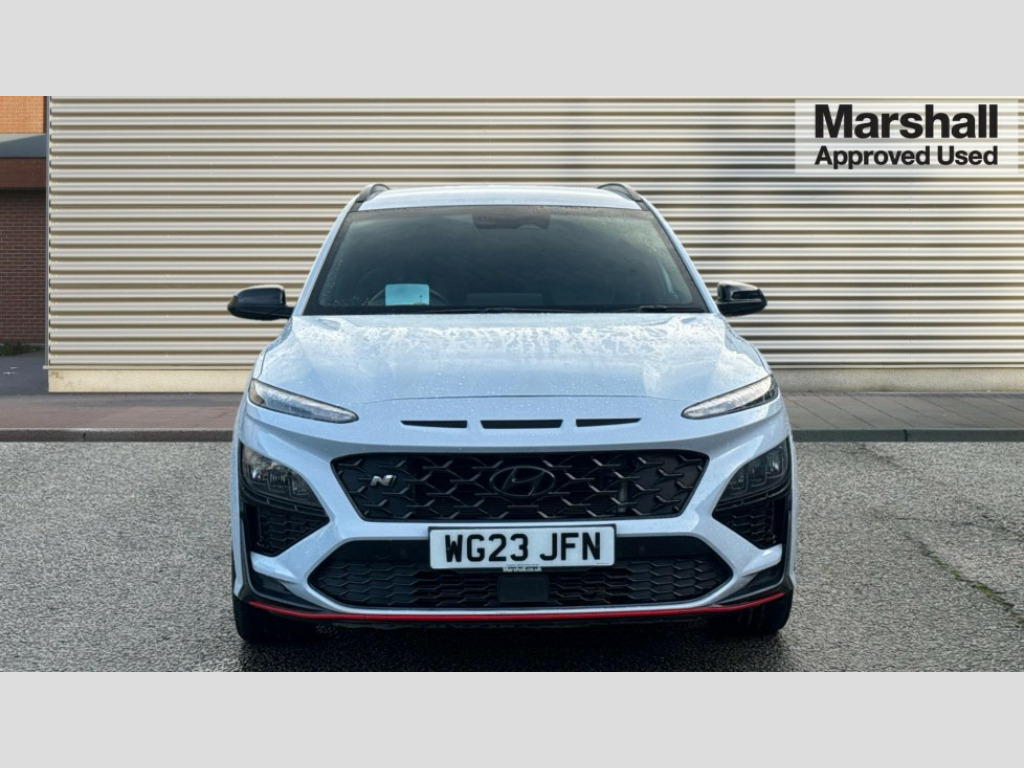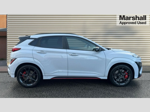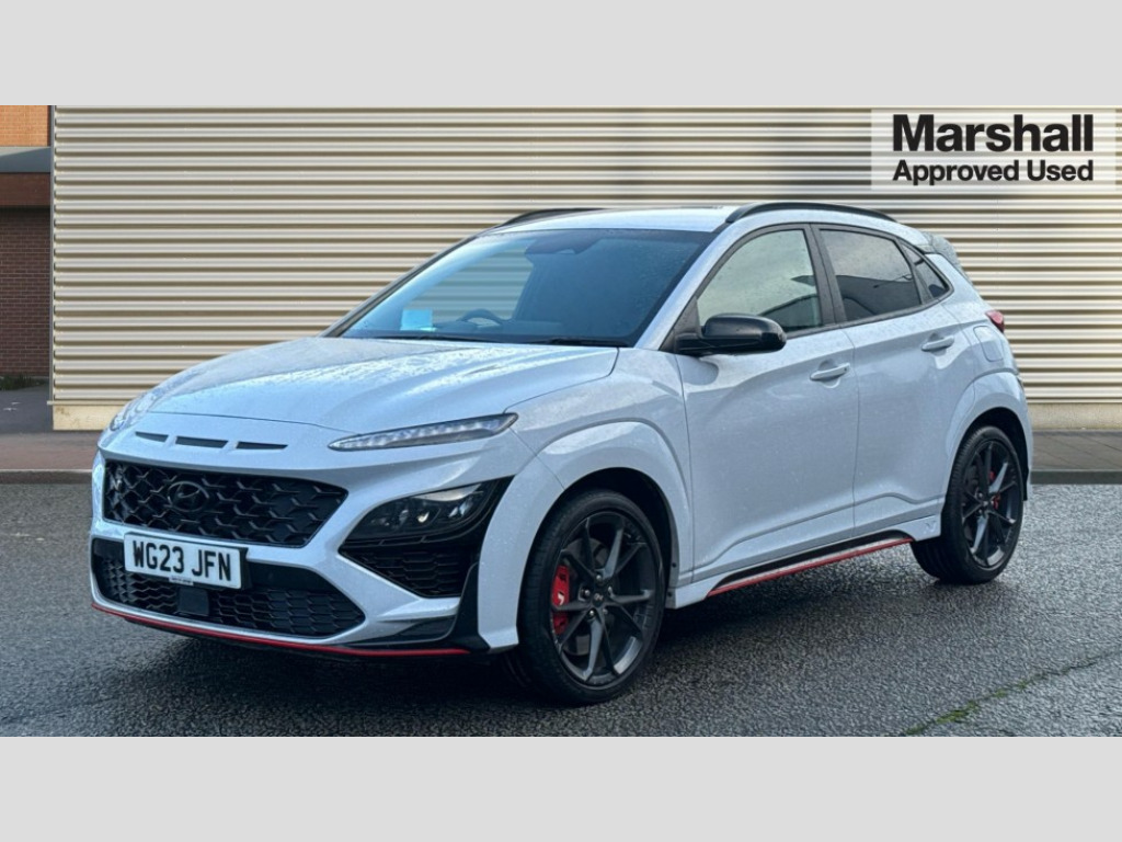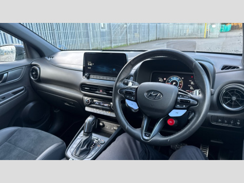 Hyundai Kona 2.0 TGDi N 5dr DCT 10.25" touchscreen centre console display satellite navigation with live services and mapcare, Apple car play and Android auto, Blind spot collision avoidance assist, Bluetooth connectivity with voice recognition, Cruise control - Smart adaptive speed control, Drive mode buttons, Driver supervision instrument cluster with 10.25" LCD display, eCall emergency call system, Forward collision avoidance assist (FCA) (City, Urban, Pedestrian, Cycle), Front parking sensor, Head up Display, Intelligent speed limit warning, Lane follow assist, Lane keep assist, N grin control system, N mode button, N power sense axle, N track sense, Parking system with rear camera and guidance system, Rack motor driven power steering, Rear cross traffic collision avoidance (RCCA), Rear parking sensor, Safe exit warning (SEW), Windscreen washer fluid sensor and warning indicator, Wireless phone charging pad, Dual clutch transmission with Creep Off, Electronic limited slip differential, Electronically controlled suspension, Launch control, Sports suspension, DAB Digital radio, Front and rear USB ports, Krell premium audio system with 8 speakers and subwoofer, Steering wheel mounted audio/phone controls, Active variable N twin finisher exhaust system, Auto dimming rear view mirror, Automatic headlights with dusk sensor, Automatic windscreen wipers with rain sensor, Body colour bodyside mouldings, Body colour bumpers, Body colour exterior door handles, Door mirror integrated indicators, Electric front/rear windows with drivers one touch/anti-trap, Electrically adjustable and heated door mirrors, Full LED MFR headlights, Gloss black door mirrors, LED daytime running lights, LED rear lights, N exclusive front and rear bumpers, N rear spoiler, N side skirt, Positioning Lights - LED, Power folding door mirrors, Privacy glass - Rear windows and tailgate, Rear fog lights, Rear roof spoiler with integrated LED brake light, Rear side wing doors, Rear skid plate - silver, Rear wiper, Roof rails, Solar glass with windscreen shade band, Variable front intermittent wipers, Windscreen auto defog function, 12V power outlet, 3 seat bench in 2nd row, 60/40 split folding rear seat, Air conditioning climate control, Alloy pedals, Ambient lighting, Bottle holders in front/rear doors + front centre console, Centre interior light, Driver's seat electric adjustments, Driver's seat electric lumbar support, Driver/passenger front seatback pockets, Driver/passenger sunvisors and illuminated vanity mirrors, Electric Sound Generator, Front interior light, Front passenger's seat electric adjustments, Gearshift paddles, Heated front seats, Heated outer rear seats, Heated steering wheel, Height/reach adjustable steering column, Interior front map reading light, Isofix rear child seat fastenings, Leather and chrome coated gear knob, Leather wrapped steering wheel, Luggage compartment lighting, Luggage cover, Luggage hooks, Luggage net, Metal paint effect interior door handles, N exclusive sports seats, Pronounced side bolsters, Single front passenger seat, Suede/leather upholstery, Sunglasses holder, Ventilated front seats, Vertical adjustment front and rear head restraints, Trailer wiring package - Kona, 3x3 point rear seatbelts, Airbags - front, front side and curtain airbags, Anti-lock brake system (ABS), Childproof rear door locks, EBD + Brake Assist, Electronic stability control, Fasten seatbelt reminder, Front seatbelt pretensioners, Height adjustable front seatbelts, High performance brakes, Hill start assist control (HAC), Manual parking brake, N power shift, Passenger airbag deactivate switch, Red brake calipers with N logo, Reinforced brakes, Traction control, Tyre pressure monitoring system with individual tyre pressure display, Alarm/immobiliser, Deadlocks, Locking wheel nuts, Remote central locking, Smart key with keyless entry and engine start/stop button, 19" lightweight forged alloy wheels, Pirelli P-Zero high performance tyres, Tyre repair kit