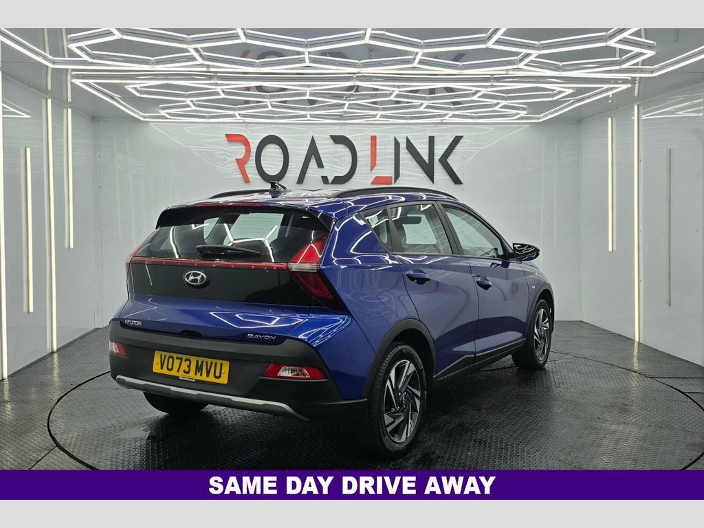The Hyundai Bayon is a stylish compact SUV designed to stand out with 16in alloy wheels, glossy black front grille, roof rails, rear spoiler and sharp LED daytime running lights. Inside, the cabin feels modern with a 10.25in digital supervision cluster, an 8in touchscreen display with Apple CarPlay and Android Auto, and a leather-wrapped steering wheel and gear knob. Comfort is well catered for with manual air conditioning, driver's seat height adjustment, electric windows all round with one-touch function, and blue interior mood lighting. Practical touches include 60-40 split folding rear seats, a luggage board, illuminated vanity mirrors, and ample storage throughout. Safety is a strong point, offering forward collision avoidance with pedestrian and cyclist detection, lane keep assist, driver attention alert, autonomous emergency braking and ISOFIX child seat anchors. Convenience is further enhanced with cruise control and speed limiter, automatic headlights with dusk sensor, high beam assist and rear parking sensors. The Bayon also features a rear-view parking camera, hill-start assist, vehicle stability management and a perimeter alarm for added peace of mind. Entertainment comes via a DAB radio and six-speaker sound system with USB and AUX connections for easy device integration. Finished with body-coloured details, satin chrome-effect interior handles, a shark fin antenna and black window surrounds, the Bayon delivers a blend of efficiency, style and everyday usabi 12V Power Outlet - Front Console, 16in Alloy Wheels, ABS - Anti-Lock Brake System, Adjustable Head Restraints, Adjustable Intermittent Front Windscreen, Air Conditioning - Manual, Airbag - Front Passenger Deactivation Sw, Airbags - Front - Front Side and Curtain, Automatic Headlights with Dusk Sensor, Autonomous Emergency Braking - AEB, Bluetooth Connectivity with Voice Recogn, Branded Tyres - Michelin, Bumpers - Body Coloured, Central Locking - Remote Control, Centre Console Display - 8in Touchscreen, Childproof Rear Door Locks, Cruise Control with Speed Limiter, Daytime Running Lights - LED, Deadlocks, Door Mirrors - Electric Folding - Electr, Door Mirrors with Integrated Indicators , Driv