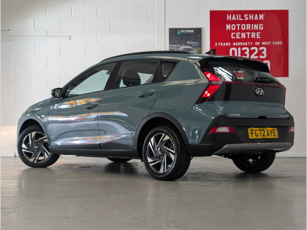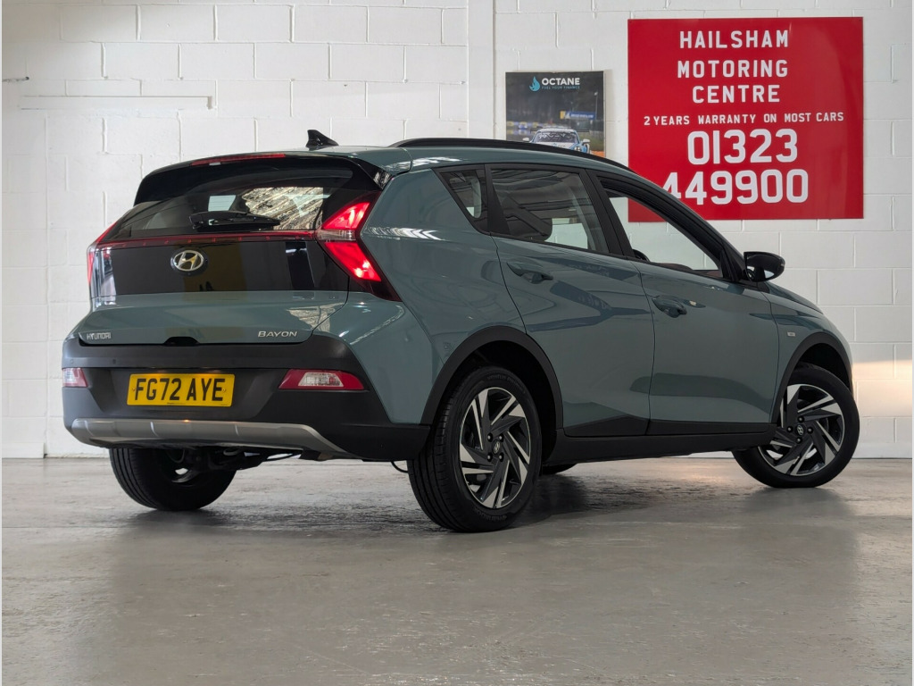 **Manufacturers Warranty 09/2027**Hailsham Motoring Centre are pleased to be offering this ULEZ compliant 2022 Hyundai Bayon 1.0 T-GDi MHEV SE Connect SUV for sale, with ONLY ONE OWNER FROM NEW and 58,700 miles. This car comes with FULL MAIN DEALER SERVICE HISTORY. The car will leave with an interim service, a new MOT and a PDI. Finished in Mangrove green with black cloth trim.**WHY BUY FROMUS****Established In 1980****24 Month Warranty On AllCars & vans Over £4500, & Those Not Covered By A Manufactures Warranty**** All Our Cars Are Hpi Clear So You Can Buy With Confidence****Competitive Finance RatesSubject To Status****Multi Branches****Open 7 Days a Week Inc Bank Holidays****Monday - Friday - 8.30amto 6pm****Saturday - 9.00am to 5pm****Sunday - 10am to 4pm****Bank holidays 10am to 4pm**For more pictures and a walk around video please go to https://www.hailshammotoringcentre.co.uk/Please call to arrange viewing and a test drive on01323 449900.Here at Hailsham Motoring Centre, we have up to 50 cars& a small selection vans on show, also at our Hampden Park branch we have up to 50 further cars & a small selection vans available for viewing, please call 01323 507307 for more info.For more information on our Bayon please see the benefits below as stated, v power outlet - front console, bluetooth connectivity with voice recognition, centre console display - 8in touchscreen display audio with smart device integration, drivers digital supervision instrument cluster - 10.25in, phone connection - android auto, phone connection - apple carplay, radio - digital dab, shark fin antenna, speakers - 2 tweeters - 2 front - 2 rear, usb and aux connections - front, ecall - emergency call button, 16in alloy wheels, branded tyres - michelin, bumpers - body coloured, door mirrors - electric folding - electric adjustment and heated, door mirrors with integrated indicators - body coloured, electric windows - front and rear with drivers anti-trap and one-touch up-down control, exterior door handles - body coloured, front grille - glossy black, locking wheel nuts, rear spoiler with integral led brake light, roof rails, tinted windshield, tyre repair kit, window surround - black, abs - anti-lock brake system, airbag - front passenger deactivation switch, airbags - front - front side and curtain airbags, autonomous emergency braking - aeb, central locking - remote control, childproof rear door locks, deadlocks, esp - electronic stability programme, ess - emergency stop signal, forward collision avoidance assist with pedestrian and cycle detection - fca, hac - hill-start assist control, isofix child seat anchorage points - rear, immobiliser, impact sensing auto door unlocking, lane keep assist - lka, perimeter alarm, rear wiper-washer with intermittent function, seatbelt pre-tensioners - front, seatbelt reminder - front and rear, speed sensitive automatic door locking, vsm - vehicle stability management, adjustable head restraints, adjustable intermittent front windscreen wipers with aero wiper blade, air conditioning - manual, drivers seat height adjustment - manual, front map reading lights, interior - black mono, interior door handles - satin chrome effect, interior light - cabin and luggage compartment, interior mood lighting - blue, leather wrapped gear knob, leather wrapped steering wheel, luggage board, seats - 60-40 split folding rear, steering column - height and reach adjustable, steering wheel audio and phone controls, sun visors with driver and passenger illuminated vanity mirrors, automatic headlights with dusk sensor, daytime running lights - led, front static cornering lights, halogen rear combination lights, headlights - halogen, high beam assist, cruise control with speed limiter, drive mode select, driver attention alert - daa, electric power steering, lane departure warning system, parking sensors - rear, rear-view parking camera, trip computer, tyre pressure monitoring system - tpms, manufacturers warranty