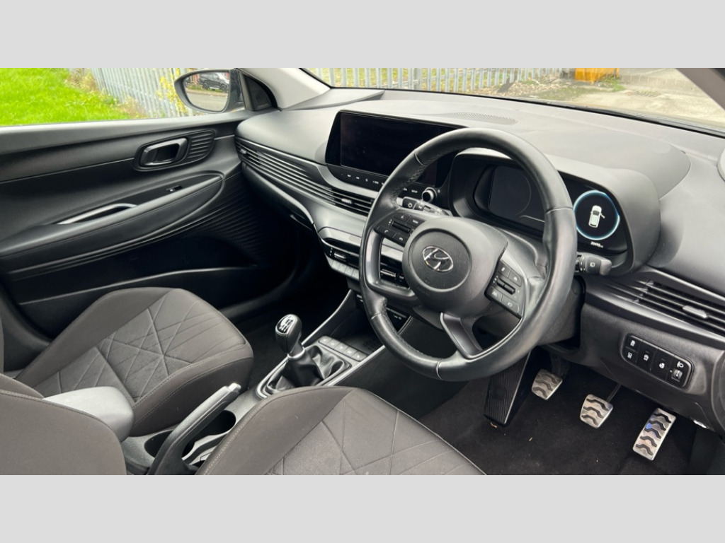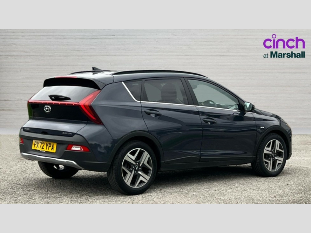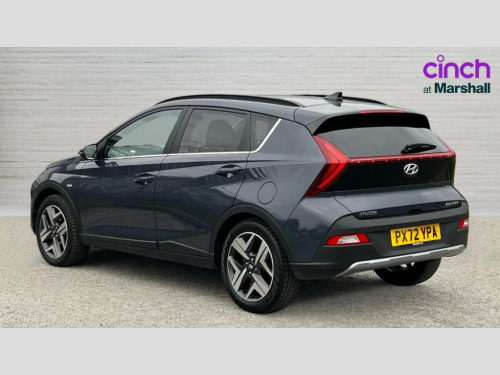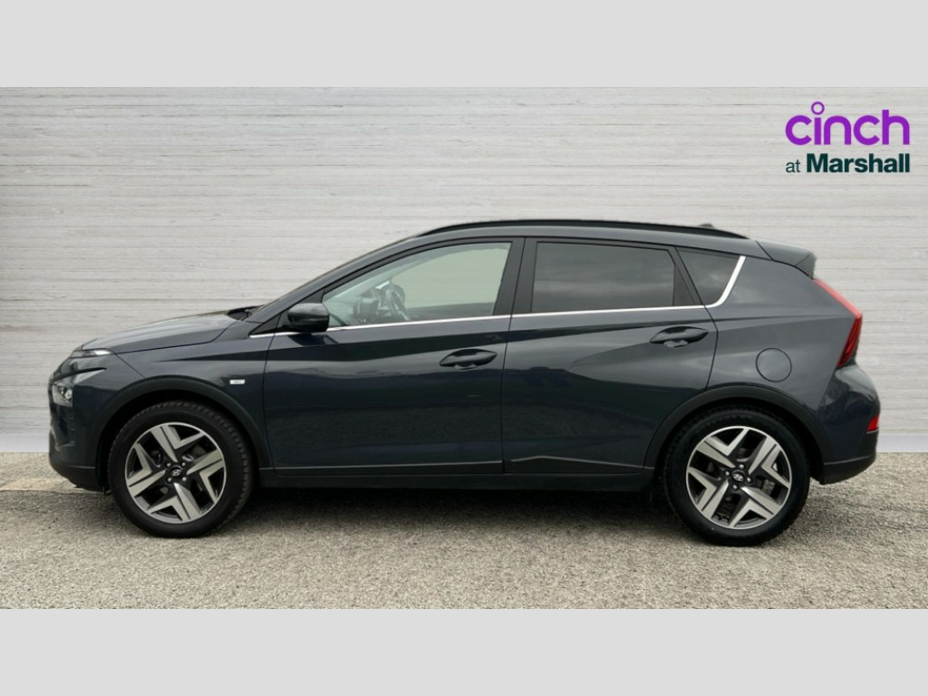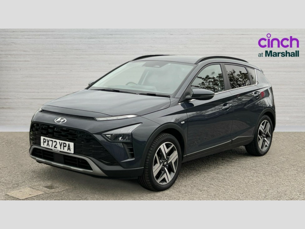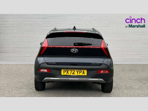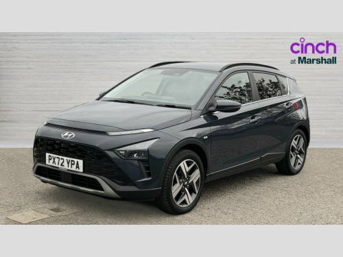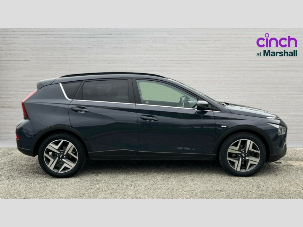 Hyundai Bayon 1.0 TGDi [120] 48V MHEV Premium 5dr 10.25" digital supervision cluster, 10.25" touchscreen centre console display satellite navigation including traffic messaging channel, map care and live services, Bluelink telematics, Bluetooth connectivity with voice recognition, Cruise control with speed limiter, Drive mode selector, Driver attention alert system, eCall emergency call system, Electric power steering, Emergency stop signalling system, Forward collision assist with pedestrian monitoring and cycle detection, Lane departure warning system with lane keep assist - LKAS, Phone connection with apple carPlay and android auto, Rear parking sensors, Rear view camera, Trip computer, Wireless charging pad, 2 front and 2 rear speakers with 2 tweeters, DAB radio, Steering wheel mounted audio/phone controls, USB and aux connection in front, Adjustable intermittent front windscreen wipers with aero wiper blade, Auto dimming rear view mirror, Automatic headlights with dusk sensor, Automatic windscreen wipers with rain sensor, Body colour bumpers, Body colour door handles, Body colour door mirrors with integrated indicators, Chrome finish window surround, Electric adjustable/heated/folding door mirrors, Electric front/rear windows with drivers one touch/anti-trap, Gloss black radiator grille, High beam assist, LED daytime running lights, LED headlamps, LED rear combination lights, Privacy glass - Rear windows and tailgate, Rear roof spoiler with integrated LED brake light, Rear side wing doors, Rear wash/wipe with intermittent wipe setting, Roof rails, Shark fin antenna, Static cornering light, Tinted windshield, 12V power outlet in front console, 3 rear seats, 60/40 split folding rear seat, Adjustable head restraints, Automatic climate control with defog system for front windscreen, Blue interior mood lighting, Cabin and luggage compartment interior lighting, Cloth seat trim, Driver's seat manual height adjustment, Front armrest/storage, Heated front seats, Heated steering wheel, Height/reach adjustable steering column, Illuminated driver/passenger vanity mirror, Interior front map reading light, Leather wrapped gear shift knob, Leather wrapped steering wheel, Luggage board, Satin chrome interior door handles, Single front passenger seat, 3 point front seatbelts with pre-tensioners, 3 point rear seatbelts, Airbags - front, front side and curtain airbags, Anti-lock braking system (ABS), Autonomous emergency braking, Childproof rear door locks, Electronic Stability Programme (ESP), Front and rear seatbelt reminder, Front passenger airbag deactivation switch, Height adjustable front seatbelts, Hill start assist control (HAC), Impact sensing auto door unlocking, Isofix child seat anchorage points - rear, Tyre pressure monitoring system, Vehicle stability management, Deadlocks, Immobiliser, Locking wheel nuts, Perimeter alarm, Remote control central locking, Speed sensitive automatic door locking, Black mono interior trim, 17" Alloy wheels, Michelin Tyre brand, Tyre repair kit