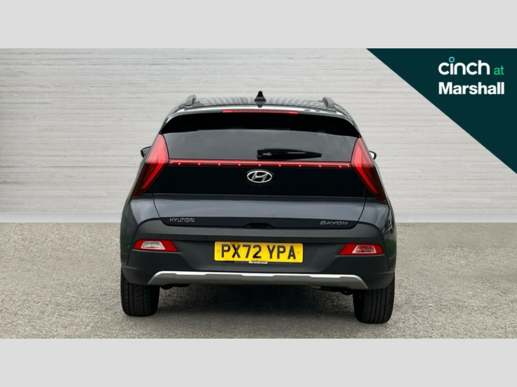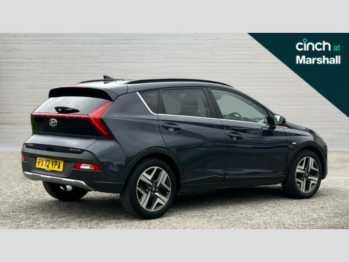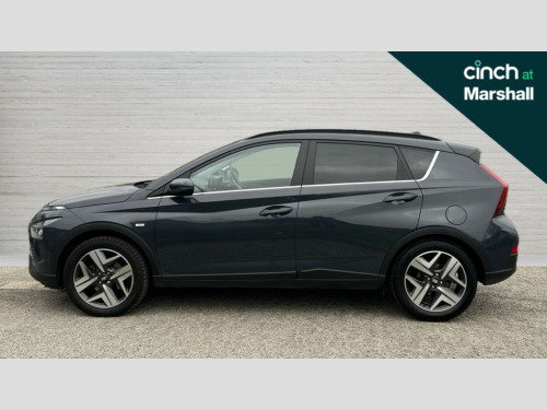 Hyundai Bayon 1.0 TGDi [120] 48V MHEV Premium 5dr 10.25" digital supervision cluster, 10.25" touchscreen centre console display satellite navigation including traffic messaging channel, map care and live services, Bluelink telematics, Bluetooth connectivity with voice recognition, Cruise control with speed limiter, Drive mode selector, Driver attention alert system, eCall emergency call system, Electric power steering, Emergency stop signalling system, Forward collision assist with pedestrian monitoring and cycle detection, Lane departure warning system with lane keep assist - LKAS, Phone connection with apple carPlay and android auto, Rear parking sensors, Rear view camera, Trip computer, Wireless charging pad, 2 front and 2 rear speakers with 2 tweeters, DAB radio, Steering wheel mounted audio/phone controls, USB and aux connection in front, Adjustable intermittent front windscreen wipers with aero wiper blade, Auto dimming rear view mirror, Automatic headlights with dusk sensor, Automatic windscreen wipers with rain sensor, Body colour bumpers, Body colour door handles, Body colour door mirrors with integrated indicators, Chrome finish window surround, Electric adjustable/heated/folding door mirrors, Electric front/rear windows with drivers one touch/anti-trap, Gloss black radiator grille, High beam assist, LED daytime running lights, LED headlamps, LED rear combination lights, Privacy glass - Rear windows and tailgate, Rear roof spoiler with integrated LED brake light, Rear side wing doors, Rear wash/wipe with intermittent wipe setting, Roof rails, Shark fin antenna, Static Cornering lights, Tinted windshield, 12V power outlet in front console, 3 rear seats, 60/40 split folding rear seat, Adjustable head restraints, Automatic climate control with defog system for front windscreen, Blue interior mood lighting, Cabin and luggage compartment interior lighting, Cloth seat trim, Driver's seat manual height adjustment, Front armrest/storage, Heated front seats, Heated steering wheel, Height/reach adjustable steering column, Illuminated driver/passenger vanity mirror, Interior front map reading light, Leather wrapped gear shift knob, Leather wrapped steering wheel, Luggage board, Satin chrome interior door handles, Single front passenger seat, 3 point front seatbelts with pre-tensioners, 3 point rear seatbelts, Airbags - front, front side and curtain airbags, Anti-lock braking system (ABS), Autonomous emergency braking, Childproof rear door locks, Electronic Stability Programme (ESP), Front and rear seatbelt reminder, Front passenger airbag deactivation switch, Height adjustable front seatbelts, Hill start assist control (HAC), Impact sensing auto door unlocking, Isofix child seat anchorage points - rear, Tyre pressure monitoring system, Vehicle stability management, Deadlocks, Immobiliser, Locking wheel nuts, Perimeter alarm, Remote control central locking, Speed sensitive automatic door locking, Black mono interior trim, 17" Alloy wheels, Michelin Tyre brand, Tyre repair kit