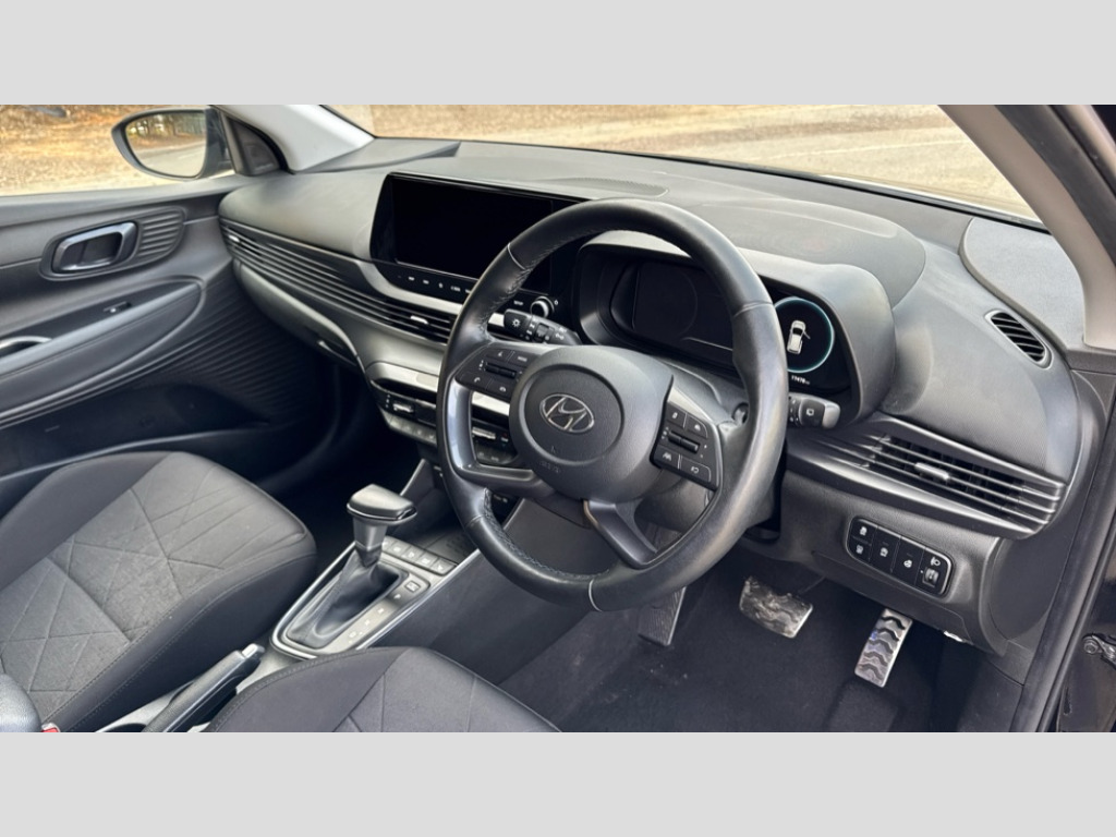 Hyundai Bayon 1.0 TGDi [120] 48V MHEV Premium 5dr DCT 10.25" digital supervision cluster, 10.25" touchscreen centre console display satellite navigation including traffic messaging channel, map care and live services, Bluelink telematics, Bluetooth connectivity with voice recognition, Cruise control with speed limiter, Drive mode selector, Driver attention alert system, eCall emergency call system, Electric power steering, Emergency stop signalling system, Forward collision assist with pedestrian monitoring and cycle detection, Lane departure warning system with lane keep assist - LKAS, Phone connection with apple carPlay and android auto, Rear parking sensors, Rear view camera, Trip computer, Wireless charging pad, 2 front and 2 rear speakers with 2 tweeters, DAB radio, Steering wheel mounted audio/phone controls, USB and aux connection in front, Adjustable intermittent front windscreen wipers with aero wiper blade, Auto dimming rear view mirror, Automatic headlights with dusk sensor, Automatic windscreen wipers with rain sensor, Body colour bumpers, Body colour door handles, Body colour door mirrors with integrated indicators, Chrome finish window surround, Electric adjustable/heated/folding door mirrors, Electric front/rear windows with drivers one touch/anti-trap, Gloss black radiator grille, High beam assist, LED daytime running lights, LED headlamps, LED rear combination lights, Privacy glass - Rear windows and tailgate, Rear roof spoiler with integrated LED brake light, Rear side wing doors, Rear wash/wipe with intermittent wipe setting, Roof rails, Shark fin antenna, Static Cornering lights, Tinted windshield, 12V power outlet in front console, 3 rear seats, 60/40 split folding rear seat, Adjustable head restraints, Automatic climate control with defog system for front windscreen, Blue interior mood lighting, Cabin and luggage compartment interior lighting, Cloth seat trim, Driver's seat manual height adjustment, Front armrest/storage, Heated front seats, Heated steering wheel, Height/reach adjustable steering column, Illuminated driver/passenger vanity mirror, Interior front map reading light, Leather wrapped gear shift knob, Leather wrapped steering wheel, Luggage board, Satin chrome interior door handles, Single front passenger seat, 3 point front seatbelts with pre-tensioners, 3 point rear seatbelts, Airbags - front, front side and curtain airbags, Anti-lock braking system (ABS), Autonomous emergency braking, Childproof rear door locks, Electronic Stability Programme (ESP), Front and rear seatbelt reminder, Front passenger airbag deactivation switch, Height adjustable front seatbelts, Hill start assist control (HAC), Impact sensing auto door unlocking, Isofix child seat anchorage points - rear, Tyre pressure monitoring system, Vehicle stability management, Deadlocks, Immobiliser, Locking wheel nuts, Perimeter alarm, Remote control central locking, Speed sensitive automatic door locking, Black mono interior trim, 17" Alloy wheels, Michelin Tyre brand, Tyre repair kit