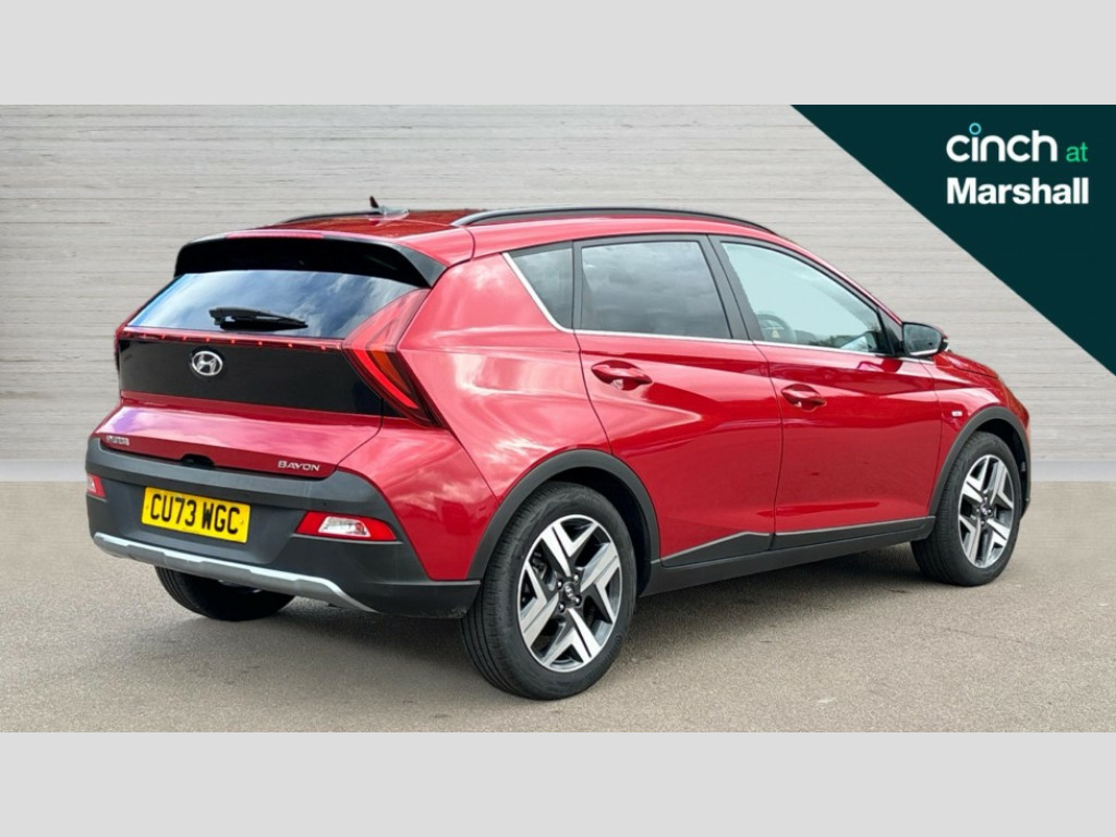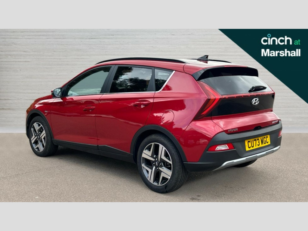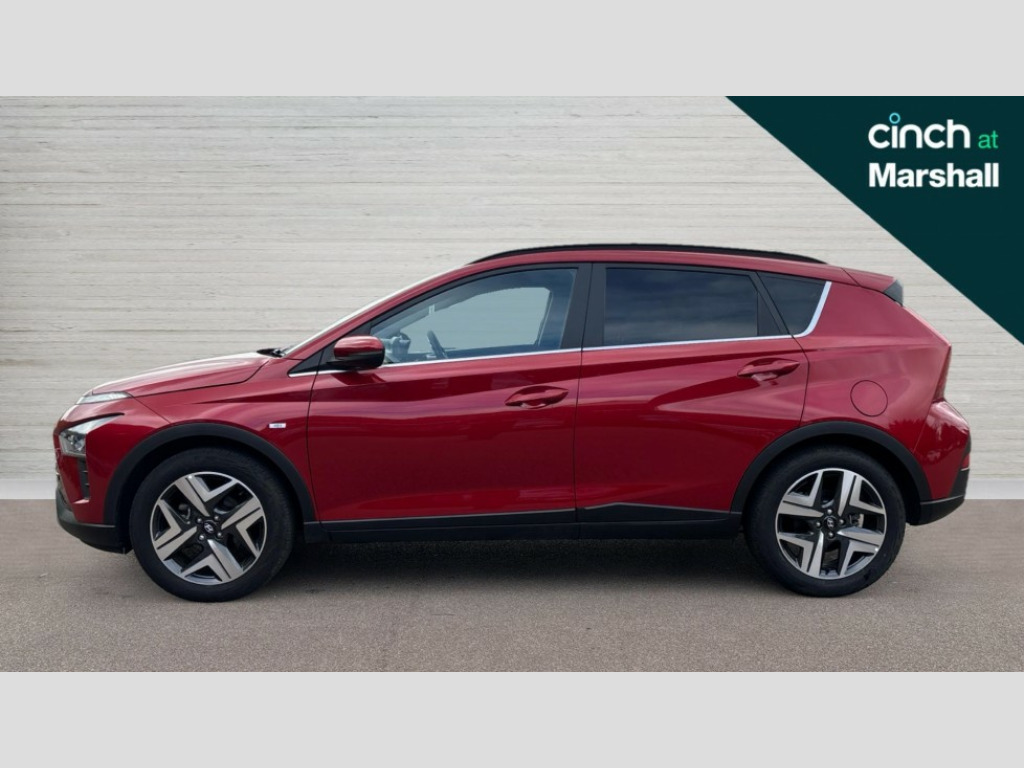 Hyundai Bayon 1.0 TGDi [120] 48V MHEV Premium 5dr DCT 10.25" digital supervision cluster, 10.25" touchscreen centre console display satellite navigation including traffic messaging channel, map care and live services, Bluelink telematics, Bluetooth connectivity with voice recognition, Cruise control with speed limiter, Drive mode selector, Driver attention alert system, eCall emergency call system, Electric power steering, Emergency stop signalling system, Forward collision assist with pedestrian monitoring and cycle detection, Lane departure warning system with lane keep assist - LKAS, Phone connection with apple carPlay and android auto, Rear parking sensors, Rear view camera, Trip computer, Wireless charging pad, 2 front and 2 rear speakers with 2 tweeters, DAB radio, Steering wheel mounted audio/phone controls, USB and aux connection in front, Adjustable intermittent front windscreen wipers with aero wiper blade, Auto dimming rear view mirror, Automatic headlights with dusk sensor, Automatic windscreen wipers with rain sensor, Body colour bumpers, Body colour door handles, Body colour door mirrors with integrated indicators, Chrome finish window surround, Electric adjustable/heated/folding door mirrors, Electric front/rear windows with drivers one touch/anti-trap, Gloss black radiator grille, High beam assist, LED daytime running lights, LED headlamps, LED rear combination lights, Privacy glass - Rear windows and tailgate, Rear roof spoiler with integrated LED brake light, Rear side wing doors, Rear wash/wipe with intermittent wipe setting, Roof rails, Shark fin antenna, Static Cornering lights, Tinted windshield, 12V power outlet in front console, 3 rear seats, 60/40 split folding rear seat, Adjustable head restraints, Automatic climate control with defog system for front windscreen, Blue interior mood lighting, Cabin and luggage compartment interior lighting, Cloth seat trim, Driver's seat manual height adjustment, Front armrest/storage, Heated front seats, Heated steering wheel, Height/reach adjustable steering column, Illuminated driver/passenger vanity mirror, Interior front map reading light, Leather wrapped gear shift knob, Leather wrapped steering wheel, Luggage board, Satin chrome interior door handles, Single front passenger seat, 3 point front seatbelts with pre-tensioners, 3 point rear seatbelts, Airbags - front, front side and curtain airbags, Anti-lock braking system (ABS), Autonomous emergency braking, Childproof rear door locks, Electronic Stability Programme (ESP), Front and rear seatbelt reminder, Front passenger airbag deactivation switch, Height adjustable front seatbelts, Hill start assist control (HAC), Impact sensing auto door unlocking, Isofix child seat anchorage points - rear, Tyre pressure monitoring system, Vehicle stability management, Deadlocks, Immobiliser, Locking wheel nuts, Perimeter alarm, Remote control central locking, Speed sensitive automatic door locking, Black mono interior trim, 17" Alloy wheels, Michelin Tyre brand, Tyre repair kit
