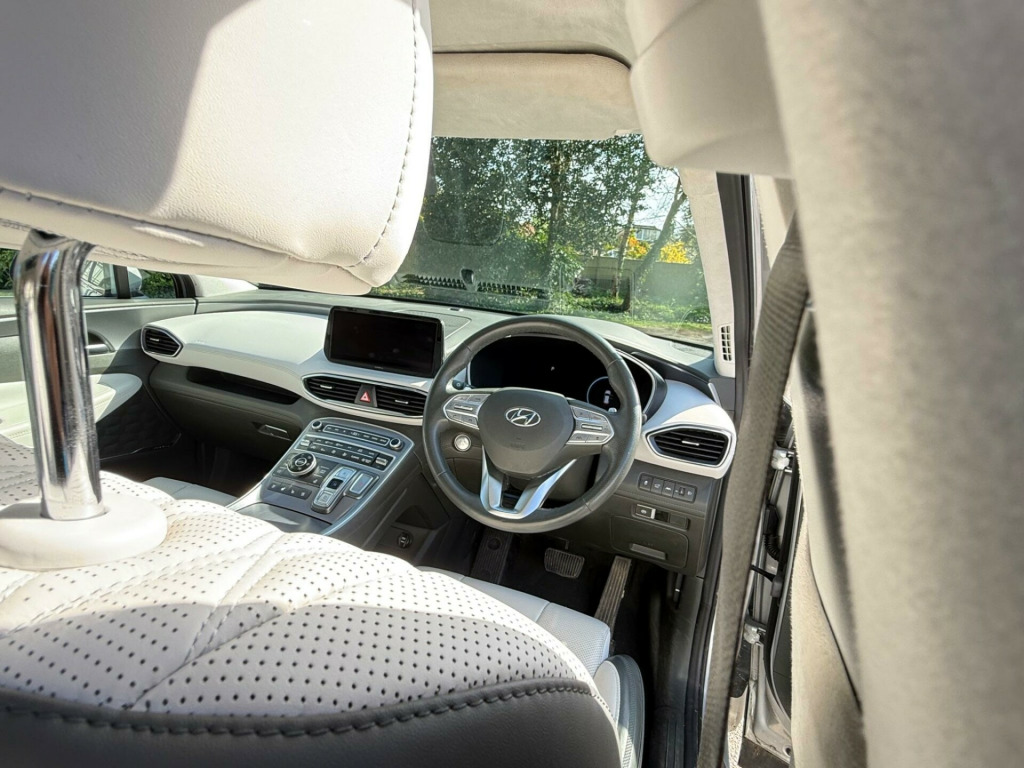 The 2022 Hyundai Santa Fe 1.6L Petrol Hybrid h T-GDi Ultimate is a four-wheel drive car with seven seats and a Euro 6 emission class. The Ultimate trim includes heated front passenger seats, adding a touch of luxury for those longer journeys. Enjoy the open road with the electric tilt and slide panoramic glass sunroof, and maintain a safe distance with the smart adaptive cruise control, complete with stop and go functionality. The driver can also benefit from a seat with memory function, and forward park distance warning to make parking easier.With the Santa Fe, you can enjoy a large boot space, making it ideal for family trips and carrying larger loads, setting it apart from other vehicles in its class. Furthermore, acceleration from 0-62mph in just 9.1 seconds means that this car delivers a responsive and engaging driving experience, making it a great choice for those who value performance.