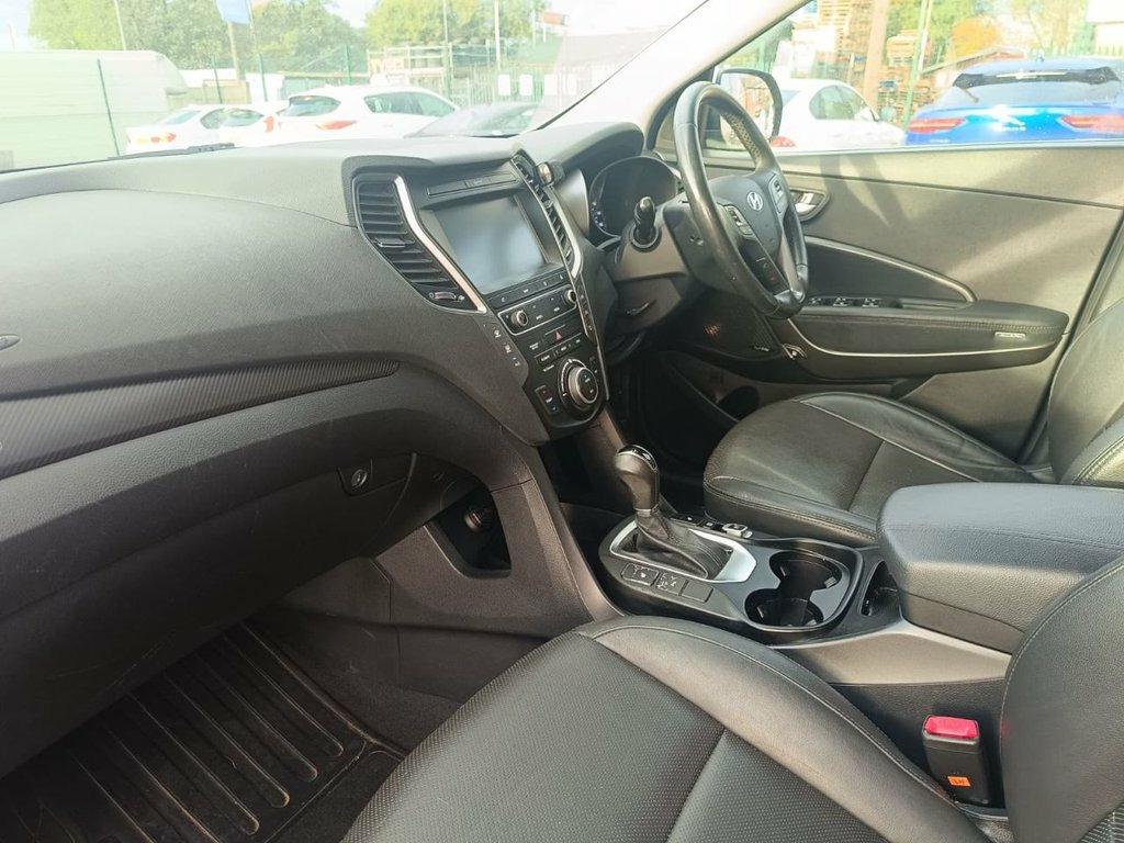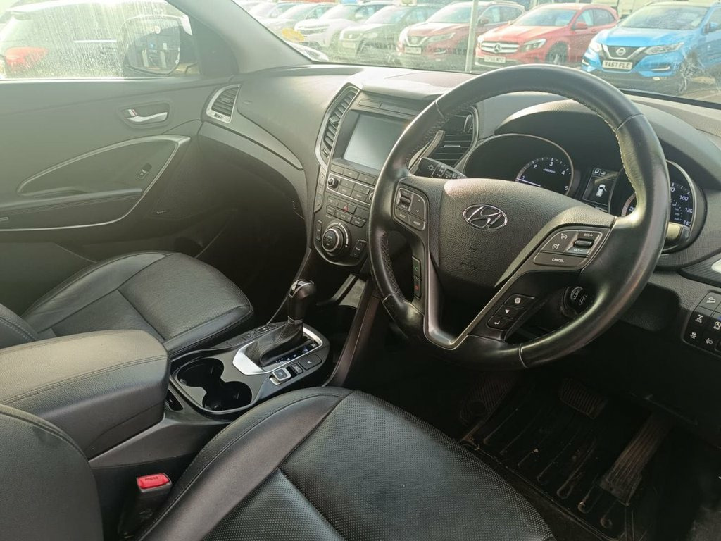 Introducing the Hyundai Santa Fe, a dynamic SUV finished in Ionic silver. With extensive service history and 2 Former Keepers, this vehicle has been exceptionally well maintained. With its eye-catching design, precise handling and 197 bhp engine, the Hyundai Santa Fe delivers an exceptional driving experience. With 7-seats, this car is designed to provide ample room for every journey, prioritising spaciousness for a comfortable and enjoyable ride. Loaded with Navigation, USB, Leather, Powered, Front and Rear Heated Seats, Two Zones Climate Control, Automatic Folding Mirrors, Cruise Control, Front and Rear Parking Sensors, Rear View Camera, Sport Mode Function and 18 Inch Alloy Wheels, it will elevate your driving experience on every trip. Your peace of mind is ensured with 3-Month warranty, next MOT due 11/2026, last serviced 10/2025 (total 5 services), 2 keys, ULEZ Compliant, HPI clear. The car has been prepared to meet high standards, undergoing a rigorous 100-point check. Rest assured that the car comes with clean bodywork, tidy interior and a smooth drive on the road. WE PROVIDE FINANCING ON ALL VEHICLES AT COMPETITIVE RATES, CHECK ELIGIBILITY USING OUR FREE FINANCE CHECKER WITHOUT AFFECTING YOUR CREDIT SCORE AT CARCART.CO.UK/FINANCE. V5C form present or to follow. PAY REFUNDABLE FEE ON OUR WEBSITE TO RESERVE VEHICLE! Viewing available 7 days a week! AS WE ARE A VERY BUSY DEALERSHIP, PLEASE CHECK THE AVAILABILITY BEFORE COMING DOWN CALLING 03330509911 OR TEXTING VIA WHA 12V Power Outlet - Front - Rear Consoles, 18in Alloy Wheels, 7 Airbags - Front - Front Side - Drivers, ABS - Anti-Lock Brake System, Active Bonnet System, Active Head Restraints, Adjustable Intermittent Front Windscreen, Air Conditioning - Rear, Armrest - Front Centre with Storage Comp, Armrest - Rear Centre with Cup Holders, Automatic De-Fog System for Front Windsc, Automatic Dimming Rear View Mirror with , Automatic Windscreen Wipers with Rain Se, BAS - Brake Assist System, Bluetooth Connectivity, Body Colour Bumpers, Bottle Holders - Front Centre Console - , Brake Light - LED, Childproof Rear Door Locks, Chrome Effect Interior Door Handles, Climate Control - Dual Zone, Cloth Covered A-B-C