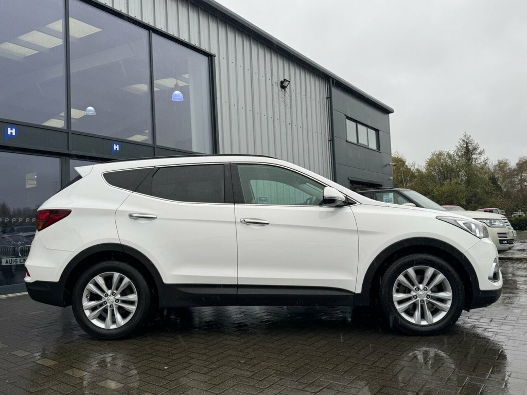 DRIVE HOME TODAY IN THIS SUPER SPEC 2016-66 HYUNDAI SANTA FE 2.2 CRDI BLUE DRIVE PREMIUM 5 DOOR 4WD EURO 6 7 SEAT 200 BHP FINISHED IN PURE HITE TRIMMED WITH BLACK HEATED ELECTRIC ADJUSTABLE LEATHER SEATING. TWO OWNERS FROM NEW WITH THE LAST SINCE 2018 WITH LOW MILEAGE ONLY 88K MILES WITH A FULL SERVICE HISTORY INC X6 SERVICES AND LAST SERVICED @ 84,422 MILES. A SUPERB COMBINATION OF STYLE, LUXURY AND PRACTICALITY WITH 7 SEATS. HUGE SPEC INC ALLOY WHEELS, HEATED SEATS, SAT-NAV, CAMERA, PRIVACY GLASS ,DAB ,BLUETOOTH, CLIMATE & CRUISE CONTROL, PREMIUM SOUND SYSTEM UP GRADE, TOW BAR , FRONT & REAR SENSORS, SPARE WHEEL. Leather - Black, Pure White, 12V Power Outlet - Front - Rear Consoles, 18in Alloy Wheels, 7 Airbags - Front - Front Side - Drivers, ABS - Anti-Lock Brake System, Active Bonnet System, Active Head Restraints, Adjustable Intermittent Front Windscreen, Air Conditioning - Rear, Armrest - Front Centre with Storage Comp, Armrest - Rear Centre with Cup Holders, Automatic De-Fog System for Front Windsc, Automatic Dimming Rear View Mirror with , Automatic Windscreen Wipers with Rain Se, BAS - Brake Assist System, Bluetooth Connectivity, Body Colour Bumpers, Bottle Holders - Front Centre Console - , Brake Light - LED, Childproof Rear Door Locks, Chrome Effect Interior Door Handles, Climate Control - D