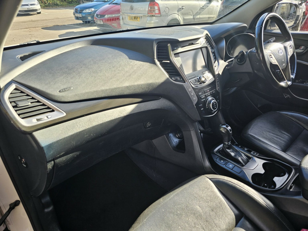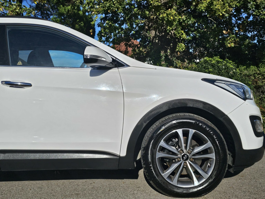 2015 Hyundai Santa Fe, finished in white. Complete with multi-spoke alloy sport wheels, this vehicle boasts an array of desirable features, including satellite navigation and a rear parking camera, ensuring a hassle-free driving experience.Inside, the full black leather interior provides a comfortable ambiance, while heated seats offer added comfort during the colder months. This Santa Fe is a practical SUV, perfect for families or individuals seeking a spacious and comfortable vehicle. The ample boot space and generous interior room make it an ideal choice for those requiring a car that can accommodate their busy lifestyle. Also including a Tow Bar for a variety of uses.As a well-maintained model, this Hyundai Santa Fe comes complete with a comprehensive service history, providing peace of mind for its new owner. Furthermore, a new service is included, ensuring the vehicle is in excellent condition and ready for immediate use. Two keys are provided, and the car has been thoroughly valeted, making it available to drive away today.With its robust 2.2-litre diesel engine, this Santa Fe delivers a smooth and refined driving experience. This model offers the perfect blend of comfort, practicality, and style, making it an excellent choice for those seeking a high-specification SUV.Key features:* 2015 Hyundai Santa Fe* White colour* Full black leather interior with heated seats* Satellite navigation* Rear parking camera* Comprehensive service history* New service included* Tow bar* Two keys provided* Valeted and ready to drive awayThis Hyundai Santa Fe is offering a combination of comfort, practicality, and style. If youre seeking a high-specification SUV that meets your needs, 6 months warranty included, contact Frontline Cars today on 01202 577544 to arrange a viewing.