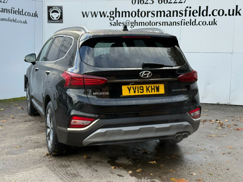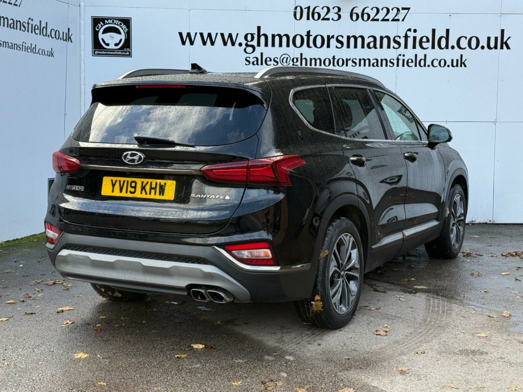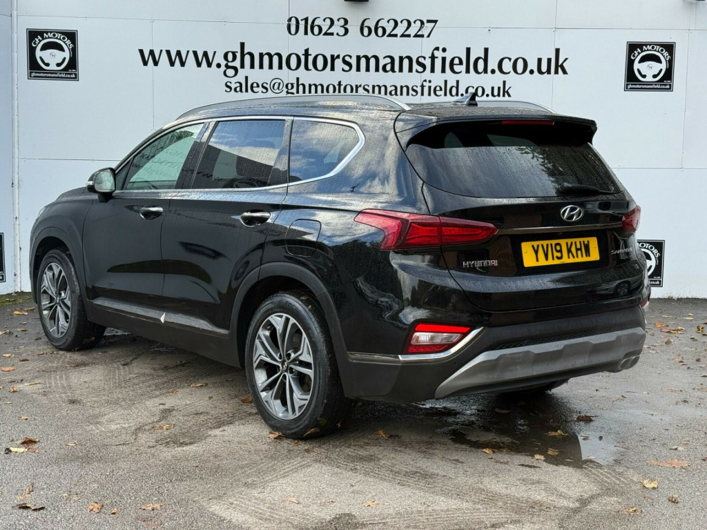 12 MONTHS WARRANTY £299,Discover this 2019 Hyundai Santa Fe CRDi Premium SE, a versatile 7 seat family SUV that offers exceptional value. Powered by an efficient 2.2L Diesel engine and meeting Euro 6 emissions standards, this model combines practicality with comfort. Inside, you'll find a heated steering wheel for those chilly mornings, a panoramic sunroof with electric tilt and slide for an airy cabin feel, and a convenient wireless phone charging pad. Manoeuvring is made simple with front and rear parking sensors, further enhanced by the Around View Monitor system providing a 360 degree camera view.This Santa Fe stands out with its low insurance group, making it an economical choice for many drivers. Furthermore, its generous boot space ensures you have ample room for luggage, shopping, or sports equipment, indicating its superior practicality compared to similar vehicles. The Premium SE trim level ensures a high specification, offering a comfortable and well equipped driving experience for all occupants.. 12V Power Outlet - Front - Rear Consoles and Luggage Compartment, 19in Alloy Wheels, 8in Touchscreen Satellite Navigation including Traffic Messaging Channel - Mapcare and Live Services, A-B-C Pillar Trim - Cloth, ABS - Anti-Lock Brake System, Air Conditioning - Dual Zone Climate Control, Airbags - Front - Front Side and Curtain Airbags, Alarm - Thatcham Category 1, Armrest - Front with Storage, Armrest - Rear with Cup Holders, Automatic Dimming Rear View Mirror with Compass, Automatic Headlights with Dusk Sensor and Follow Me Home Function, Automatic Windscreen Wipers with Rain Sensor, Autonomous Emergency Braking with Pedestrian Recognition - AEB, Blind Spot Detection System with Brake Assist, Blinds - Manual Rear Doors, Bluetooth Connectivity with Voice Recognition, Body Colour Bumpers, Bottle Holders - Front and Rear Centre Consoles - Front and Rear Doors, Central Locking - Remote Control, Chrome Effect Interior Door Handles, Cornering Lights - Dynamic Bending Headlight, Cruise Control - Smart Adaptive Speed Control with Stop and Go Function, DBC - Downhill Brake Control, Deadlocks, Door Centre Trim - Faux Leather, Door Handles - Chrome Effect - Exterior, Door Mirror Puddle Lights, Door Mirrors - Electric Adjustment and Heated with Power Folding Function, Door Mirrors with Integrated Indicators - Body Coloured, Drive Mode Select, Driver Attention Alert - DAA, Drivers Seat Electric Adjustments, Drivers Seat Height Adjustment - Electric, Drivers Seat Lumbar Support - Electric, Drivers Seat with Memory Function, ESS - Emergency Stop Signal, Electric Parking Brake with Auto Hold Function, Electric Windows - Front and Rear with Anti-Trap Mechanism, Electronic Stability Control - ESC, Faux Leather Wrapped Dashboard, Fog Lights - LED Rear, Front Fog Lights - LED, Front Head Restraints - Vertical and Horizontal Adjustment, Front Passenger Airbag De-Activation Switch, Front Passengers Seat Electric Adjustments, Front Passengers Seat Height Adjustment - Electric, Front Passengers Seat Lumbar Support - Electric, Front Seat Back Pockets, Front Ventilated Seats, Front and Rear Door Pockets, Front and Rear Seatbelt Pre-Tensioners, Glove Compartment with Cooling Function and Illumination, Grab Handles x3, HAC - Hill-Start Assist Control, Head Restraints - Rear with Vertical and Horizontal Adjustment, Head Up Display - HUD, Headlights - LED, Headlights - Smart High Beam, Heated Front Seats, Heated Rear Seats, Heated Steering Wheel, Height Adjustable Front Seatbelts, ISOFIX Child Seat Anchorage Points - Front Passenger Seat, ISOFIX Child Seat Anchorage Points - Rear - Outer Rear, Interior Lights - Front - Rear and Luggage Compartment, Lane Departure Warning System with Lane Keeping Assist, Leather Wrapped Steering Wheel and Gear Knob, Locking Wheel Nuts, Luggage Cover, Luggage Hooks, Luggage Net, One-Touch Indicators, Panoramic Sunroof - Electric Tilt and Slide, Parking Sensors - Front and Rear, Parking System - Around View Monitor, Phone Connection - Android Auto, Phone Connection - Apple CarPlay, Positioning Lights - LED, Power Assisted Steering, Privacy Glass - Rear Windows and Tailgate, Radiator Grille - Dark Chrome, Rear Cross Traffic Alert with Brake Assist, Rear Lights - LED, Rear Occupancy Alert, Rear Seats - Second Row - One Touch Folding, Rear Seats - Second Row - Split Folding 60-40, Rear Seats - Third Row - Split Folding 50-50, Rear Spoiler with Integrated LED Brake Light, Rear View Parking Camera with Parking Guidance System, Rear Windscreen - Heated with Washer, Roof Rails, Seatbelt Reminder, Smart Electric Tailgate - Hands Free Opening Function, Smart Key - Keyless Entry with Engine Start-Stop Button, Spare Wheel - Temporary Space Saver - Alloy, Speakers - KRELL Premium Audio - 10 Speaker System Including External Amplifier and Subwoofer, Steering Column - Height and Reach Adjustable, Steering Wheel with Audio - Phone and Cruise Controls, Sun Visors - with Driver and Passenger Illuminated Vanity Mirrors and Driver Ticket Hol.