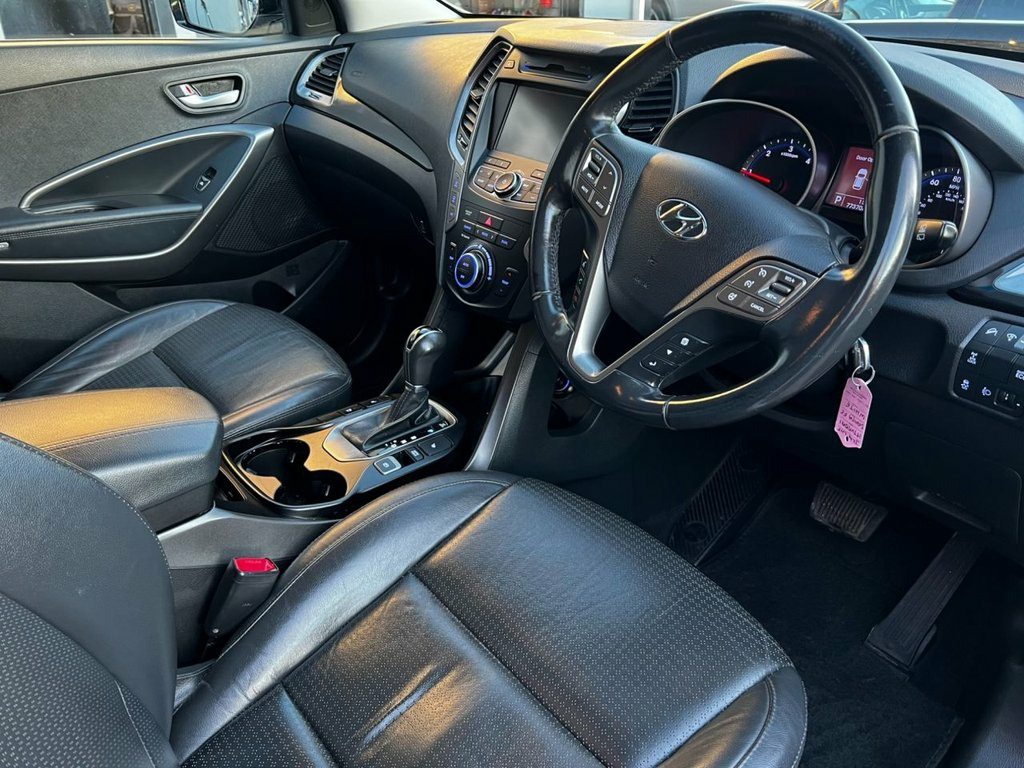 2014  HYUNDAI SANTA FE 2.2 CRDi Premium SUV 5dr Diesel Auto 4WD, 7 SEATS, ONLY 77350 MILES, MOT FEB 26, 6 STAMP SERVICE HISTORY, JUST SERVICED, EXCELLENT TOP SPEC 7 SEATER, SPEC INCLUDES SAT NAV, HANDS FREE, DRL LIGHTS, HEATED LEATHER SEATS, FACTORY TINTED WINDOWS, REVERSE CAMERA, ALLOYS, FULL ELECTRICS, IN EXCELLENT CONDITION  12V Power Outlet - Front, 12V Power Outlet - Luggage Compartment, 12V Power Outlet - Rear Console, 18in Alloy Wheels, ABS - Anti-Lock Brake System, AHS - Active Hood System, Air Conditioning - Rear, Airbags - Driver, Airbags - Drivers Knee, Airbags - Front Passenger, Airbags - Full Length Curtain, Airbags - Side, Alarm, Amplifier, Armrest - Front Centre with Storage Comp, Armrest - Rear Centre, Automatic De-Fog System for Front Windsc, BAS - Brake Assist System, Bluetooth Connectivity with Voice Recogn, Childproof Rear Door Locks, Chrome Effect Interior Door Handles, Cigarette Lighter and Ashtray, Climate Control - Dual Zone, Cruise Control with Speed Limiter, Cup Holders - Front, Cup Holder