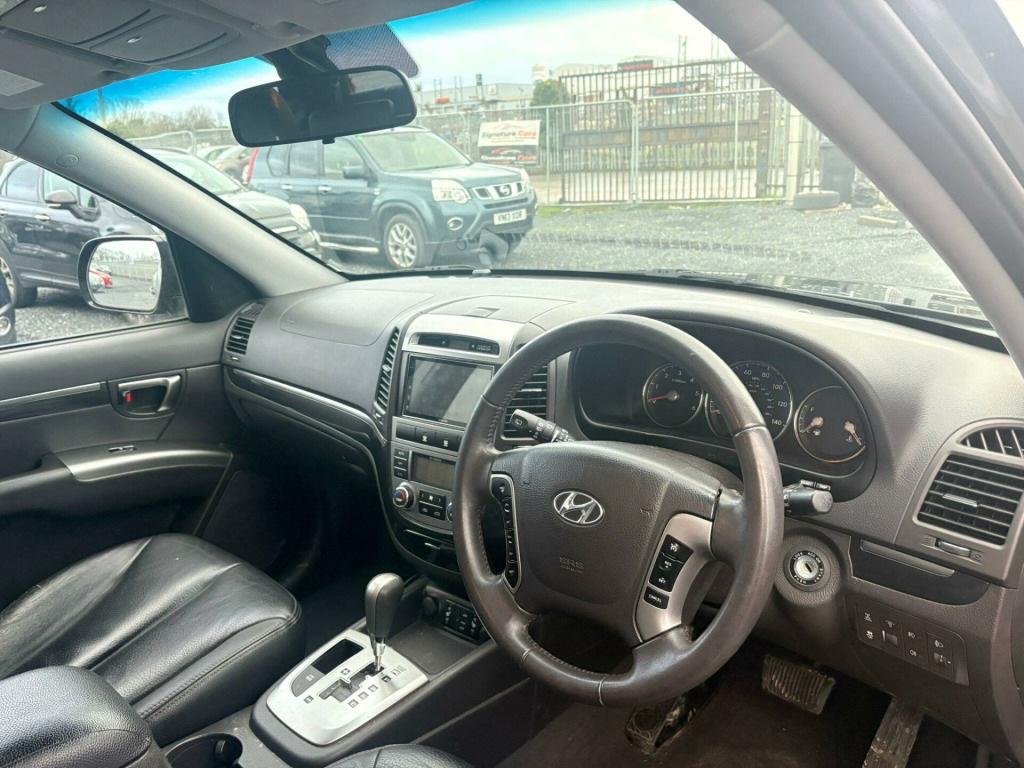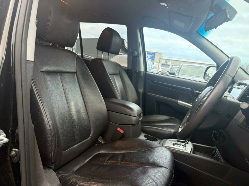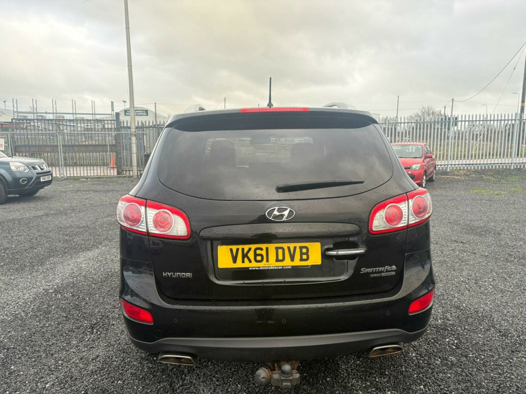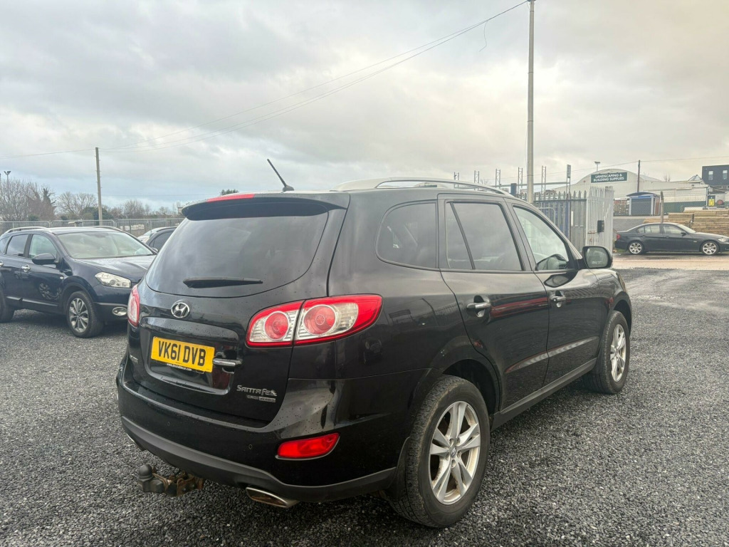 Hyundai Santa Fe 2.2 CDTi Premium Automatic 7 Seater.Registered September 2011Fresh Out Of England.Only 1 Previous Owner.Warranted 161k UK Miles With A 8 Stamp Service History.MOT November 2026.Full Pre Delivery Inspection In Our Workshop.3 Months Comprehensive No Quibble In House Warranty Included.Finished In Metallic Black With Full Black Leather Trim.Top Spec Premium Model Factory Extra's Include Full Leather Trim,Electric Heated Front Seats, Dual Digital Climate Control & Air Conditioning, Cruise Control, Trip Computer, Bluetooth Connectivity & Bluetooth Music Playback, Rear Parking Sensors, Xenon Headlamps With Wash Jets,18inch Alloy Wheels, Remote Central Locking With Factory Alarm & Immobiliser, 2 Keys Supplied, Fitted Tow Bar With Single Electrics.Part Exchange & Nationwide Delivery Available.Viewing By Appointment Only.Signature Cars Of Portadown Best Value Approved Used Cars In Northern Ireland .***** Check Out Our 5Star Reviews On Line *****, v power outlet, 18in alloy wheels, abs - anti-lock brake system, air conditioning, airbags - curtain, airbags - front side, alarm, armrest - front centre with storage compartment, armrest - rear centre, bluetooth connectivity with voice recognition, body colour door handles and mirrors, carbon black effect fascia and door trim, childproof rear door locks, cigarette lighter and ashtray, climate control - dual zone with humidity sensor and ioniser, cruise control, cup holders - front, cup holders - rear, dbc - downhill brake control, deadlocks, door courtesy lights, door handles - chrome, door mirrors - electric folding, door mirrors - electric heated, driver seat height adjustment, ebd - electronic brake force distribution, esp - electronic stability programme, eco drive indicator, electric heated door mirrors with integrated indicators, electric windows - front and rear, front fog lights, front passenger airbag de-activation switch, front and rear door pockets, gear knob - leather, glove compartment lockable, head restraints - active front, headlights - automatic, heated front seats, isofix child seat anchorage points - rear - outer rear, immobiliser, locking wheel nuts, luggage hooks, luggage net, mud flaps, one touch down drivers window control, power assisted steering, privacy glass, rds radio-cd player with mp3 compatibility, rain sensing front wipers, rear spoiler with high-mounted brake light, remote central locking, reversing sensors, roof rails, seats - 50-50 flat folding third row, seats - drivers electric adjustment, seats - drivers lumbar adjustment, side impact bars, spare wheel - full size alloy, speakers x6, speed sensitive automatic door locking, steering column - height and reach adjustable, steering wheel - audio controls, steering wheel - leather, suspension - self levelling, traction control, trip computer, twin exhaust pipes, usb and aux connections, ipod functionality
