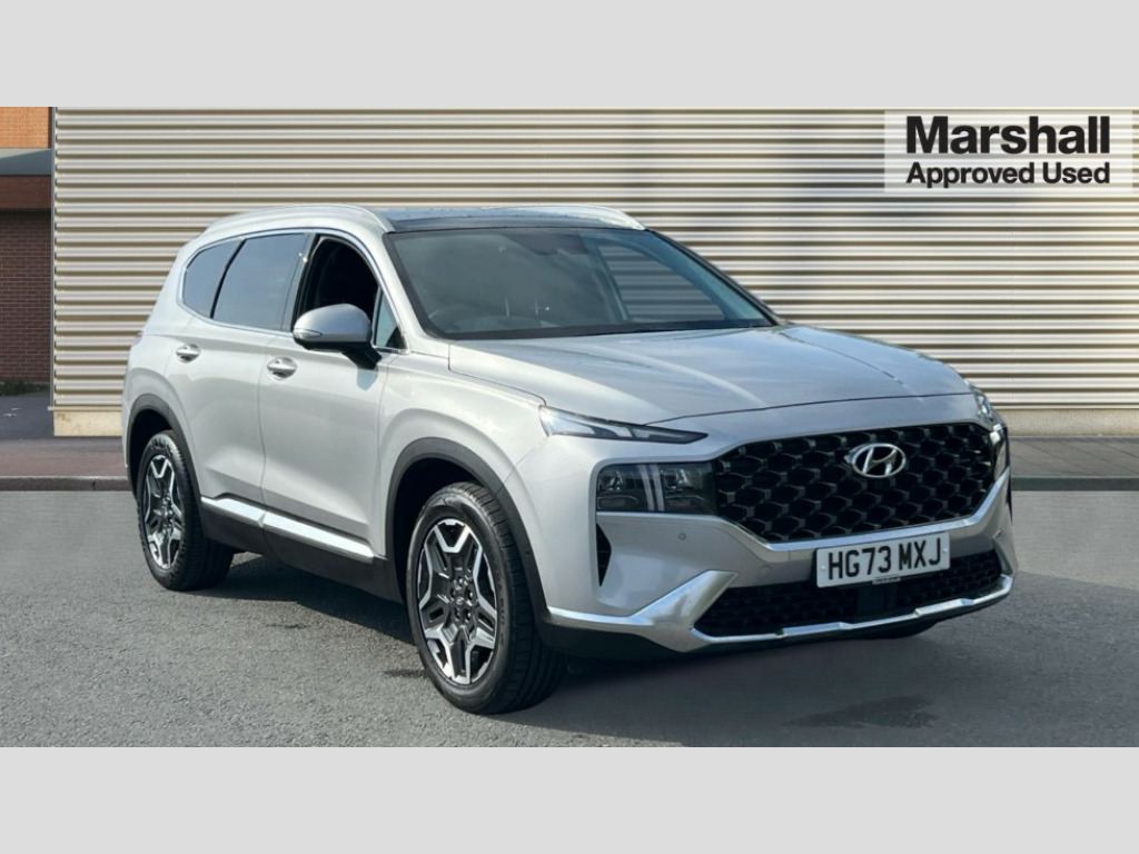 Hyundai Santa Fe 1.6 TGDi Hybrid Ultimate 5dr 4WD Auto 10.25" touchscreen satellite navigation with mapcare and live services, 12.3" TFT supervision cluster display, Apple car play/Android Auto, Blind spot collision avoidance assist, Blind spot monitor, Bluetooth connectivity with voice control, Cruise control - smart adaptive speed control with stop and go function, Drive mode selector, Driver attention alert system, E-call, Emergency stop signalling system, Forward Collision Avoidance Assist (FCA) - Car, Pedestrian and Cycle, Forward Collision Avoidance Assist Junction Turning (FCAJX), Front parking sensor, Head up Display, Highway driver assist, Intelligent speed limit warning, Lane departure warning system with lane keep assist - LKAS, Parking system with surround view monitor, PAS, Rear cross traffic alert, Rear parking sensor, Remote smart parking, Reverse parking collision aviodance assist, Safe exist assist (SEA), Smart electric tailgate with hand's free opening function, Smart posture control, Smartphone connectivity, Smartphone wireless charging plate, Trip computer, Self levelling suspension, Auxiliary input socket, DAB Digital radio, Krell premium audio with 10 speakers including external amplifier and subwoofer, Rear USB port, Steering wheel mounted controls, USB connection located in centre console, Automatic defog system, Automatic dimming rear view mirror, Automatic headlights with dusk sensor, Automatic windscreen wiper control, Body colour door handles with chrome inserts, Body coloured bumpers, Body coloured door mirrors, Dynamic bending headlight/cornering lights, Electric adjustable/heated/folding door mirrors, Electric front/rear windows/one touch/anti trap, Electric glass tilt and slide panoramic sunroof, Follow me home headlights, Full LED headlights, Heated rear windscreen with washer, LED daytime running lights, LED front fog lights, LED rear fog light, LED rear lights, Positioning Lights - LED, Privacy glass in rear window and tailgate, Puddle lights, Rain sensor, Rear side wing doors, Rear wash/wipe with intermittent wipe setting, Roof rails, Smart high beam headlights, Solar glass with windscreen shade band, Third brake light, Trailer stability assist, Variable front intermittent wipers, Windscreen wiper de-icer, 12V power point in luggage area, 12V power points in front + rear centre consoles, 2 seat bench in 3rd row, 3 seat bench in 2nd row, 50/50 split/folding 3rd row of seats, 60/40 split folding slide/recline seats 2nd row, Adjustable head restraints, Air conditioning - rear manual temperature control, Bottle holders, Driver seat memory function, Driver's lumbar support, Driver's seat electric adjustments, Driver/passenger sunvisors + illuminated vanity mirrors (drivers with ticket holder), Dual zone climate control, Faux leather door trim, Front and rear door pockets, Front armrest with storage compartment, Front cupholders, Front map reading lights, Front passenger's seat electric adjustments, Front seat and rear pockets, Front/rear interior lights, Grab handles (x3), Heated front seats, Heated outer rear seats, Heated steering wheel, Height/reach adjustable steering column, Illuminated cooling glove compartment, Isofix child seat preparation for front passenger seat, Isofix on 2nd row outer seats, Leather wrapped gear shift knob, Leather wrapped hand brake, Leather wrapped steering wheel, Luggage compartment lighting, Luggage cover, Luggage hooks, Luggage net, Manual rear door side blinds, One-touch folding rear seats, Rear armrest with storage, Retractable load area cover, Single front passenger seat, Sunglasses holder, Underfloor storage system in load area, Ventilated front seats, Trailer wiring pack - Santa Fe, 3 point seatbelts on all seats, ABS/EBD, Childproof rear door locks, Curtain airbags, Downhill brake control, Driver and passenger airbags, Electric parking brake, ESP, Front seatbelt pretensioner, Front side airbags, Height adjustable front seatbelts, Hill start assist control (HAC), Passenger airbag deactivate switch, Rear seat belt pretensioners, Rear seat Occupancy alert, Seat belt reminder, Seatbelt warning lamp, Traction control, Tyre pressure monitoring system, Deadlocks, Engine immobiliser, Keyless entry with start/stop button, Locking wheel nuts, Remote control central locking, Speed sensitive auto door locking, Thatcham category 1 alarm, 19" Alloy wheels, Tyre repair kit