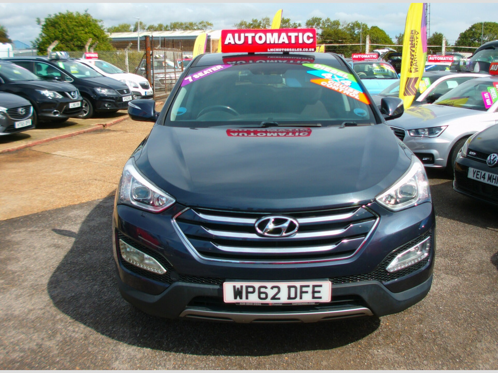 HYUNDAI SANTA FE AUTOMATIC STYLE CRDI 2.2 DIESEL 44 5 DOOR 7 SEAT, BLUE, 3 OWNERS, 95,272 MILES, MAIN DEALER SERVICE HISTORY, HEATED SEATS, AIR CON, BLUETOOTH, USB, AUX, CD PLAYER, E/MIRRORS, E/WINDOWS, ABS, CENTRAL LOCKS, MULTI AIR BAGS, ISOFIX, CRUISE CONTROL, HILL ASSIST, R/W/WIPE, 17'' ALLOY WHEELS, SUSSEX, EAST SUSSEX, EASTBOURNE, BN236PJ, 01323 643326, r conditioning, bluetooth connection, adaptive steering, cruise control, multi-function steering wheel, power steering, rear parking sensor, traction control, abs, isofix child seat anchor points, multiple airbags, central locking, electric mirrors, electric windows, auxiliary input socket, cd player, heated seats, 7 seater, alloy wheels, colour coded body, front fog lights, rear wash/wipe, tow pack, usb, zero admin charge
