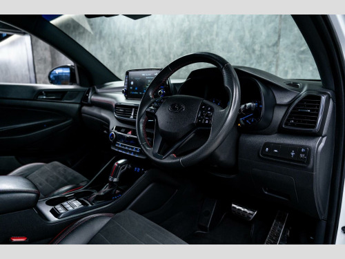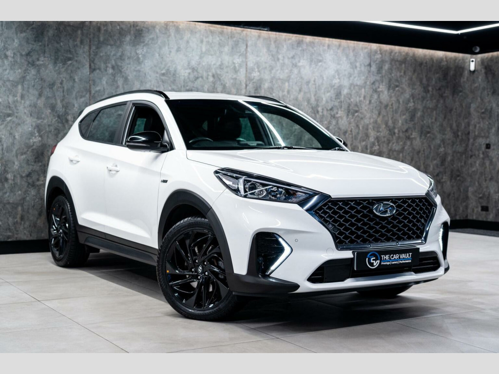 We At The Car Vault Are Proud To Offer This Stunning HYUNDAI TUCSON 1.6 CRDi MHEV N LINE DCT Euro 6 Finished In POLAR WHITE Paint, This Vehicle Is an Excellent Example and Comes With a Full Comprehensive HYUNDAI MAIN DEALER/SPECIALIST SERVICE HISTORY, It Also Comes With 2 ORIGINAL HYUNDAI REMOTE KEYS, This HYUNDAI TUCSON N-LINE Comes With The Following OPTIONAL SPECIFICATION : N Line Body Styling, Twin Exhaust Finisher, Black Roof Rails, Halogen Projector Headlights, Positioning Lights LED, NEXTBASE Front and Rear DASHCAMS, Parking System-Rear Camera, Parking Sensors-Front and Rear, HAC-Hill Start Assist Control, VSM-Vehicle Stability Management, Lane Keep Assist-LKA, Smart Key-Keyless Entry with Engine Start/Stop Button, 8in Touchscreen Satellite Navigation including Traffic Messaging Channel-Mapcare and Live Services, Phone Connection-Apple CarPlay/Android Auto, Wireless Phone Charging Pad, Steering Wheel Audio and Phone Controls, USB and AUX Connections, Leather/Suede-Black with Red Stitching Seats, Heated Front Seats, Door Mirrors-Electric Adjustment and Heated with Power Folding Function, Privacy Glass, 19in Alloy Wheels