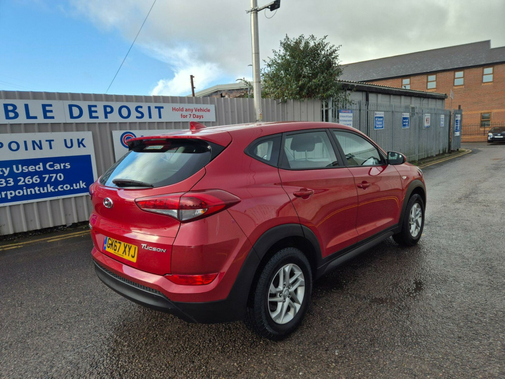This 2017 Hyundai TUCSON GDi S offers excellent peace of mind with its MOT valid until October 2026 and a full service history, with the last service completed on 2025-10-20 at 73043 miles. This Euro 6 compliant 1.6 litre petrol SUV is presented in the S trim, featuring practical amenities such as Air Conditioning and Bluetooth Connectivity for your convenience. The automatic headlights with a dusk sensor also add to the ease of driving.The TUCSON GDi S stands out with its impressive fuel economy, achieving up to 45 mpg, which is better than many similar vehicles. Furthermore, its low insurance group rating indicates lower running costs, and the generous boot space makes it a highly practical choice for families or those needing extra storage.. 12V Power Outlet - Front Console and Luggage Compartment, 16in Alloy Wheels, 6 Airbags - Front - Front Seat Side and Curtain, 6 Speakers - 2 Tweeters - 2 Front Door - 2 Rear Door, ABS - Anti-Lock Brake System with EBD - Electronic Brake-Force Distribution, Active Bonnet System, Adjustable Head Restraints, Adjustable Intermittent Front Windscreen Wipers with Aero Wiper Blade, Air Conditioning, Armrest - Front with Storage, Armrest - Rear Centre with Cup Holders, Automatic Headlights with Dusk Sensor, BAS - Brake Assist System, Bluetooth Connectivity, Body Colour Bumpers, Bottle Holders - Front Centre Console and Door, Childproof Rear Door Locks, Courtesy Light - Front Door, Curtain Airbag Rollover Sensor, DBC - Downhill Brake Control, Daytime Running Lights - LED, Deadlocks, Digital Clock, Door Mirrors - Body Coloured, Door Mirrors - Electric Folding - Electric Adjustment and Heated, Driver Seat Height Adjustment, ESP - Electronic Stability Programme, ESS - Emergency Stop Signal, Electric Windows - Front and Rear, Exterior Door Handles - Body Coloured, Front Map Reading Lights, Front Passenger Airbag De-Activation Switch, HAC - Hill-Start Assist Control, Headlights - Follow Me Home Function, Height Adjustable Front Seatbelts, ISOFIX Child Seat Anchorage Points - Rear - Outer Rear, Immobiliser, Interior Light - Luggage Compartment, Locking Wheel Nuts, Luggage Hooks, Perimeter Alarm, Positioning Lights LED, Power Assisted Steering, Projection Headlights, Rear Spoiler with Integral LED Brake Light, Remote Central Locking, Retractable Load Cover, Seatbelt Anchor Pre-Tensioners - Front, Seatbelt Reminder - Front and Rear, Seats - 60-40 Split Folding Rear, Seats - Rear Reclining, Side Body Moulding - Black, Speed Sensitive Automatic Door Locking, Steering Wheel Audio and Phone Controls, Stereo RDS DAB Digital Radio with MP3 Compatibility, Sun Visors with Driver and Passenger Vanity Mirrors, Sunglasses Holder, TSA - Trailer Stability Assist, Tinted Glass with Shade Band, Trip Computer, Tyre Pressure Monitoring System with Individual Tyre Display, Tyre Repair Kit, USB and AUX Connections, VSM - Vehicle Stability Management, Windscreen Washer Fluid Sensor and Warning Indicator. Full service history