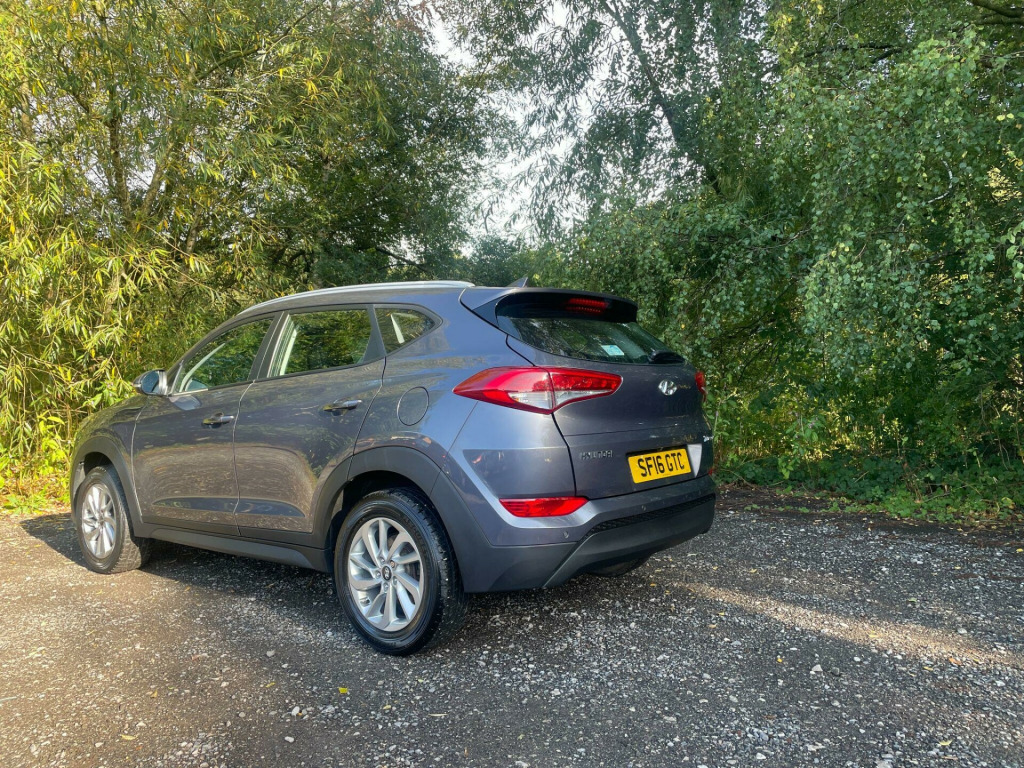 WE ARE PLEASED TO OFFER THIS LOW MILEAGE HYUNDAI TUCSON 1.6 SE NAV IN METALLIC GREY WITH THE BENFIT OF SERVICE HISTORY. GREAT SPEC WHICH INCLUDES SATELLITE NAVIGATION, CRUISE CONTROL, HEATED FRONT SEATS, REAR PARKING SENSORS AND REVERSING CAMERA, DAB RADIO WITH USB INPUT, BLUETOOTH, DUAL ZONE CLIMATE CONTROL WITH AIR CONDITIOING, REAR ISOFIX ANCHORAGE POINTS, ELECTRIC WINDOWS, ELECTRIC DOOR MIRRORS, ROOF RAILS AND ALLOY WHELLS. SUPPLIED WITH TWO KEYS.. 12V Power Outlet - Front Console and Luggage Compartment, 17in Alloy Wheels, 6 Airbags - Front - Front Seat Side and Curtain, 6 Speakers - 2 Tweeters - 2 Front Door - 2 Rear Door, 8in Touchscreen Satellite Navigation with Traffic Messaging Channel - Reversing Camera - Mapcare and Tom Tom LIVE Services, ABS - Anti-Lock Brake System with EBD - Electronic Brake-Force Distribution, Active Bonnet System, Adjustable Head Restraints, Adjustable Intermittent Front Windscreen Wipers with Aero Wiper Blade, Armrest - Front with Storage, Armrest - Rear Centre with Cup Holders, Automatic De-Fog System for Front Windscreen, Automatic Headlights with Dusk Sensor, BAS - Brake Assist System, Bluetooth Connectivity, Body Colour Bumpers, Bottle Holders - Front Centre Console and Door, Childproof Rear Door Locks, Climate Control - Dual Zone with Ioniser, Courtesy Light - Front Door, Cruise Control with Speed Limiter, Curtain Airbag Rollover Sensor, DBC - Downhill Brake Control, Daytime Running Lights - LED, Deadlocks, Digital Clock, Door Mirrors - Body Coloured, Door Mirrors - Electric Adjustment and Heated with Power Folding Function, Driver Seat Height Adjustment, ESP - Electronic Stability Programme, ESS - Emergency Stop Signal, Electric Windows - Front and Rear with Drivers Anti-Trap and One-Touch Up-Down Control, Exterior Door Handles - Body Coloured, Flex Steering, Front Fog Lights, Front Map Reading Lights, Front Passenger Airbag De-Activation Switch, Glove Compartment with Cooling Function and Illumination, HAC - Hill-Start Assist Control, Headlights - Follow Me Home Function, Heated Front Seats, Height Adjustable Front Seatbelts, ISOFIX Child Seat Anchorage Points - Rear - Outer Rear, Immobiliser, Interior Door Handles - Chrome Effect, Interior Light - Luggage Compartment, Interior Trim - Soft Touch - Door Top and Centre Trim, Lane Departure Warning System with Lane Keeping Assist, Leather Wrapped Steering Wheel and Gear Knob, Locking Wheel Nuts, Luggage Hooks, Luggage Net, Parking Sensors - Rear, Perimeter Alarm, Positioning Lights LED, Power Assisted Steering, Projection Headlights with Static Cornering Lights, Rear Lights - LED, Rear Spoiler with Integral LED Brake Light, Remote Central Locking, Retractable Load Cover, Roof Rails - Silver, Seatbelt Anchor Pre-Tensioners - Front, Seatbelt Reminder - Front and Rear, Seats - 60-40 Split Folding Rear, Seats - Drivers Electric Lumbar Support, Seats - Rear Reclining, Side Body Moulding - Black, Skid Plates - Front - Silver, Speed Limit Information System, Speed Sensitive Automatic Door Locking, Steering Wheel Audio and Phone Controls, Stereo RDS DAB Digital Radio with MP3 Compatibility, Sun Visors with Driver and Passenger Illuminated LED Vanity Mirrors, Sunglasses Holder, TSA - Trailer Stability Assist, Tinted Glass with Shade Band, Trip Computer, Tyre Pressure Monitoring System with Individual Tyre Display, Tyre Repair Kit, USB and AUX Connections, VSM - Vehicle Stability Management, Windscreen Washer Fluid Sensor and Warning Indicator.