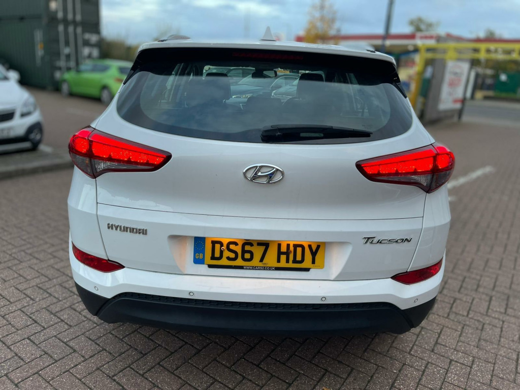 This 2017 Hyundai TUCSON GDi SE Nav boasts a clear vehicle history, offering you peace of mind. This stylish SUV is equipped with a 1.6 litre petrol engine and meets Euro 6 emissions standards. Inside, you'll find an 8 inch touchscreen with satellite navigation, including traffic messaging and Tom Tom LIVE services, alongside a helpful reversing camera. Enjoy the convenience of automatic headlights that activate with the dusk sensor, dual zone climate control with an ioniser, and heated front seats for added comfort. Bluetooth connectivity ensures you can easily connect your devices.The TUCSON SE Nav stands out with its impressive fuel economy, achieving up to 45 miles per gallon, which is excellent for its class. Furthermore, its low insurance group rating means more money in your pocket. You'll also appreciate the generous boot space, making it a practical choice for families or those who need ample room for luggage or shopping. These highlights demonstrate how this TUCSON offers a superior ownership experience compared to other vehicles in its segment. v power outlet - front console and luggage compartment, 17in alloy wheels, 6 airbags - front - front seat side and curtain, 6 speakers - 2 tweeters - 2 front door - 2 rear door, 8in touchscreen satellite navigation with traffic messaging channel - reversing camera - mapcare and tom tom live services, abs - anti-lock brake system with ebd - electronic brake-force distribution, active bonnet system, adjustable head restraints, adjustable intermittent front windscreen wipers with aero wiper blade, armrest - front with storage, armrest - rear centre with cup holders, automatic de-fog system for front windscreen, automatic headlights with dusk sensor, bas - brake assist system, bluetooth connectivity, body colour bumpers, bottle holders - front centre console and door, childproof rear door locks, climate control - dual zone with ioniser, courtesy light - front door, cruise control with speed limiter, curtain airbag rollover sensor, dbc - downhill brake control, daytime running lights - led, deadlocks, digital clock, door mirrors - body coloured, door mirrors - electric adjustment and heated with power folding function, driver seat height adjustment, esp - electronic stability programme, ess - emergency stop signal, electric windows - front and rear with drivers anti-trap and one-touch up-down control, exterior door handles - body coloured, flex steering, front fog lights, front map reading lights, front passenger airbag de-activation switch, glove compartment with cooling function and illumination, hac - hill-start assist control, headlights - follow me home function, heated front seats, height adjustable front seatbelts, isofix child seat anchorage points - rear - outer rear, immobiliser, interior door handles - chrome effect, interior light - luggage compartment, interior trim - soft touch - door top and centre trim, lane departure warning system with lane keeping assist, leather wrapped steering wheel and gear knob, locking wheel nuts, luggage hooks, luggage net, parking sensors - rear, perimeter alarm, positioning lights led, power assisted steering, projection headlights with static cornering lights, rear lights - led, rear spoiler with integral led brake light, remote central locking, retractable load cover, roof rails - silver, seatbelt anchor pre-tensioners - front, seatbelt reminder - front and rear, seats - 60-40 split folding rear, seats - drivers electric lumbar support, seats - rear reclining, side body moulding - black, skid plates - front - silver, speed limit information system, speed sensitive automatic door locking, steering wheel audio and phone controls, stereo rds dab digital radio with mp3 compatibility, sun visors with driver and passenger illuminated led vanity mirrors, sunglasses holder, tsa - trailer stability assist, tinted glass with shade band, trip computer, tyre pressure monitoring system with individual tyre display, tyre repair kit, usb and aux connections, vsm - vehicle stability management, windscreen washer fluid sensor and warning indicator