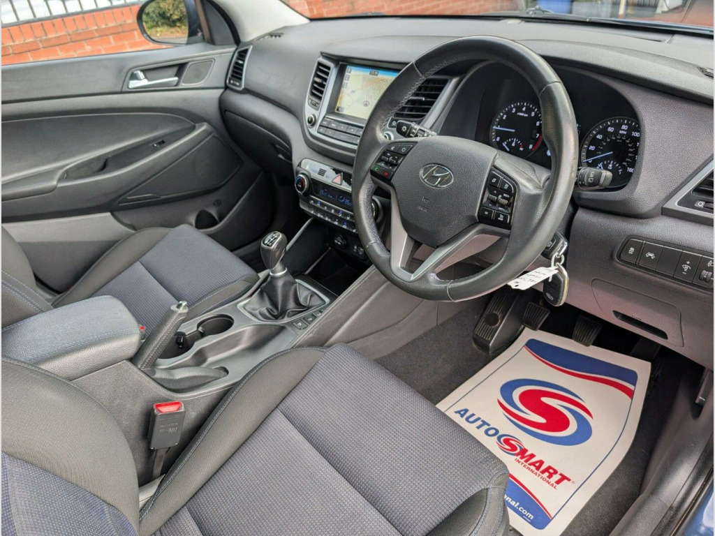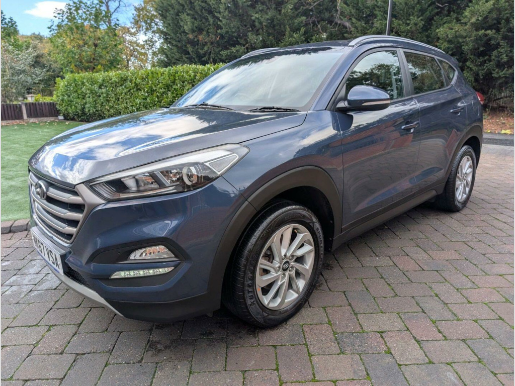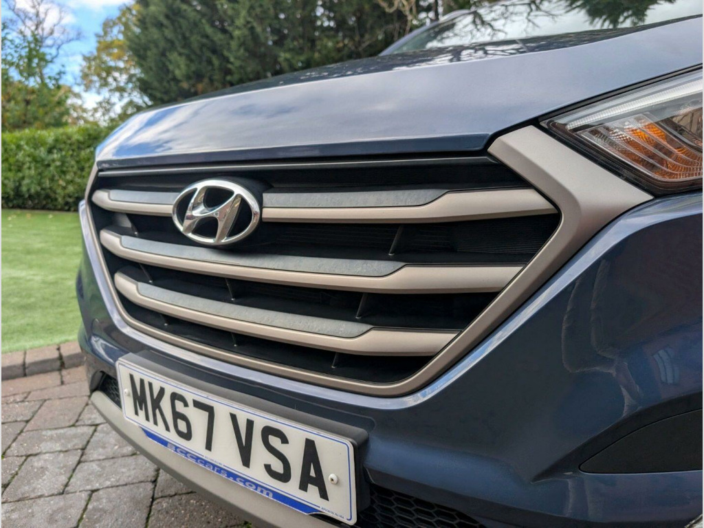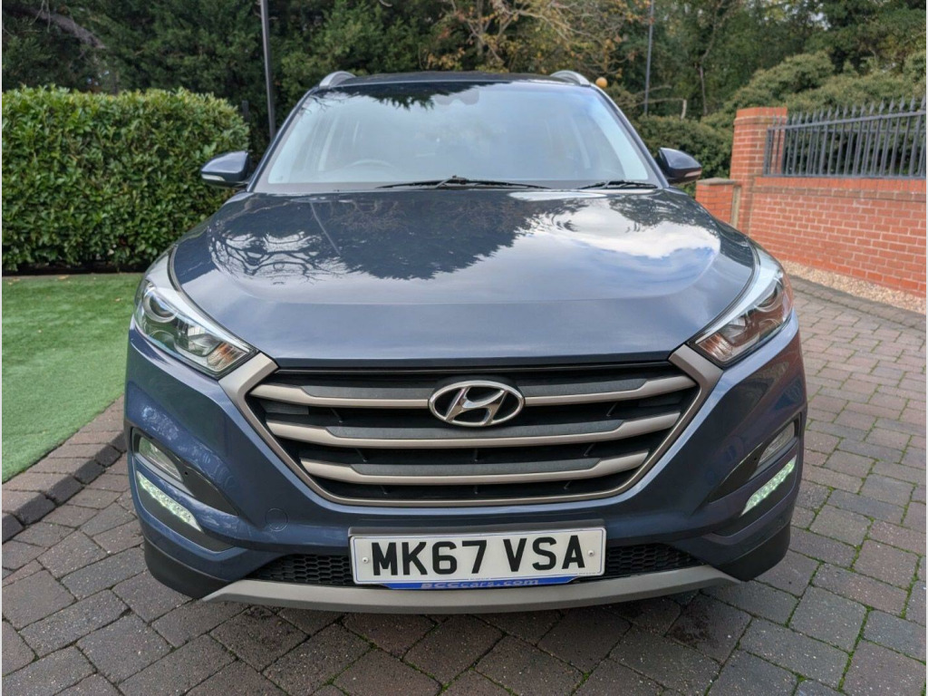 * BRAND NEW CLUTCH FITTED * 1 Former Keeper From New, Full Service History, Last Serviced in November 2025 with New Clutch, MOTed Until 28th November 2026 with No Advisories :: 1.6 GDi Petrol Engine, 132 BHP, 6-Speed Manual Gearbox :: ECONOMICALLY: Averages 44.8 MPG! 52.3 MPG on Motorways! :: 5 Door SUV, 5 Seats :: Stargazing Blue Metallic Paintwork, LED Daytime Running Lights, Two-Tone Black & Blue Comfort Cloth Upholstery, Satin Silver Interior Trim :: Touch-Screen Infotainment Screen, Satellite Navigation, Heated Front Seats with 3-Levels, Reversing Camera, Rear Parking Sensors, Cruise Control with Speed Limiter, Air Conditioning, 17'' Alloy Wheels, Bluetooth Phone Connection & Music Streaming, Voice Recognition, DAB Digital Radio, Auxiliary & USB Connections, Multi-Functional Steering Wheel, Electric Front & Rear Windows, Electric Heated Fold-In Mirrors, Drivers Electric Lumbar Support, Front & Rear Centre Armrests, Remote Central Locking with Spare Key, Satin Silver Roof Rails, Height Adjustable Front Seats, Isofix Preparation, Front Foglamps, Projection Headlights with Static Cornering Lights, Trip Computer, Tyre Pressure Monitoring System with Individual Tyre Display, Automatic Headlights with Dusk Sensor, Cupholders, Hyundai Kickplates, Rear Boot Spoiler, Electronic Stability Program, Automatic De-Fog System for Front Windscreen, Rear Load Cover, Vehicle Stability Management, Traction Control :: Cost Over £23,000 When New in late 2017! A very well-maintained family SUV!. 12V Power Outlet - Front Console and Luggage Compartment, 17in Alloy Wheels, 6 Airbags - Front - Front Seat Side and Curtain, 6 Speakers - 2 Tweeters - 2 Front Door - 2 Rear Door, 8in Touchscreen Satellite Navigation with Traffic Messaging Channel - Reversing Camera - Mapcare and Tom Tom LIVE Services, ABS - Anti-Lock Brake System with EBD - Electronic Brake-Force Distribution, Active Bonnet System, Adjustable Head Restraints, Adjustable Intermittent Front Windscreen Wipers with Aero Wiper Blade, Armrest - Front with Storage, Armrest - Rear Centre with Cup Holders, Automatic De-Fog System for Front Windscreen, Automatic Headlights with Dusk Sensor, BAS - Brake Assist System, Bluetooth Connectivity, Body Colour Bumpers, Bottle Holders - Front Centre Console and Door, Childproof Rear Door Locks, Climate Control - Dual Zone with Ioniser, Courtesy Light - Front Door, Cruise Control with Speed Limiter, Curtain Airbag Rollover Sensor, DBC - Downhill Brake Control, Daytime Running Lights - LED, Deadlocks, Digital Clock, Door Mirrors - Body Coloured, Door Mirrors - Electric Adjustment and Heated with Power Folding Function, Driver Seat Height Adjustment, ESP - Electronic Stability Programme, ESS - Emergency Stop Signal, Electric Windows - Front and Rear with Drivers Anti-Trap and One-Touch Up-Down Control, Exterior Door Handles - Body Coloured, Flex Steering, Front Fog Lights, Front Map Reading Lights, Front Passenger Airbag De-Activation Switch, Glove Compartment with Cooling Function and Illumination, HAC - Hill-Start Assist Control, Headlights - Follow Me Home Function, Heated Front Seats, Height Adjustable Front Seatbelts, ISOFIX Child Seat Anchorage Points - Rear - Outer Rear, Immobiliser, Interior Door Handles - Chrome Effect, Interior Light - Luggage Compartment, Interior Trim - Soft Touch - Door Top and Centre Trim, Lane Departure Warning System with Lane Keeping Assist, Leather Wrapped Steering Wheel and Gear Knob, Locking Wheel Nuts, Luggage Hooks, Luggage Net, Parking Sensors - Rear, Perimeter Alarm, Positioning Lights LED, Power Assisted Steering, Projection Headlights with Static Cornering Lights, Rear Lights - LED, Rear Spoiler with Integral LED Brake Light, Remote Central Locking, Retractable Load Cover, Roof Rails - Silver, Seatbelt Anchor Pre-Tensioners - Front, Seatbelt Reminder - Front and Rear, Seats - 60-40 Split Folding Rear, Seats - Drivers Electric Lumbar Support, Seats - Rear Reclining, Side Body Moulding - Black, Skid Plates - Front - Silver, Speed Limit Information System, Speed Sensitive Automatic Door Locking, Steering Wheel Audio and Phone Controls, Stereo RDS DAB Digital Radio with MP3 Compatibility, Sun Visors with Driver and Passenger Illuminated LED Vanity Mirrors, Sunglasses Holder, TSA - Trailer Stability Assist, Tinted Glass with Shade Band, Trip Computer, Tyre Pressure Monitoring System with Individual Tyre Display, Tyre Repair Kit, USB and AUX Connections, VSM - Vehicle Stability Management, Windscreen Washer Fluid Sensor and Warning Indicator, Cloth - Blue-Black.