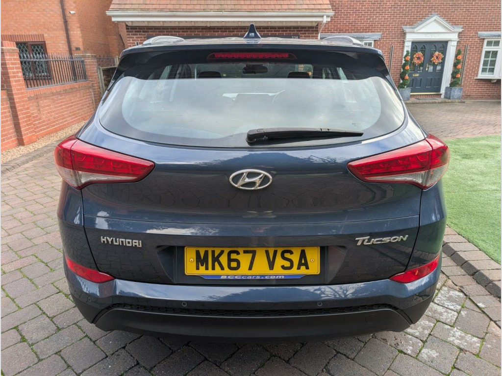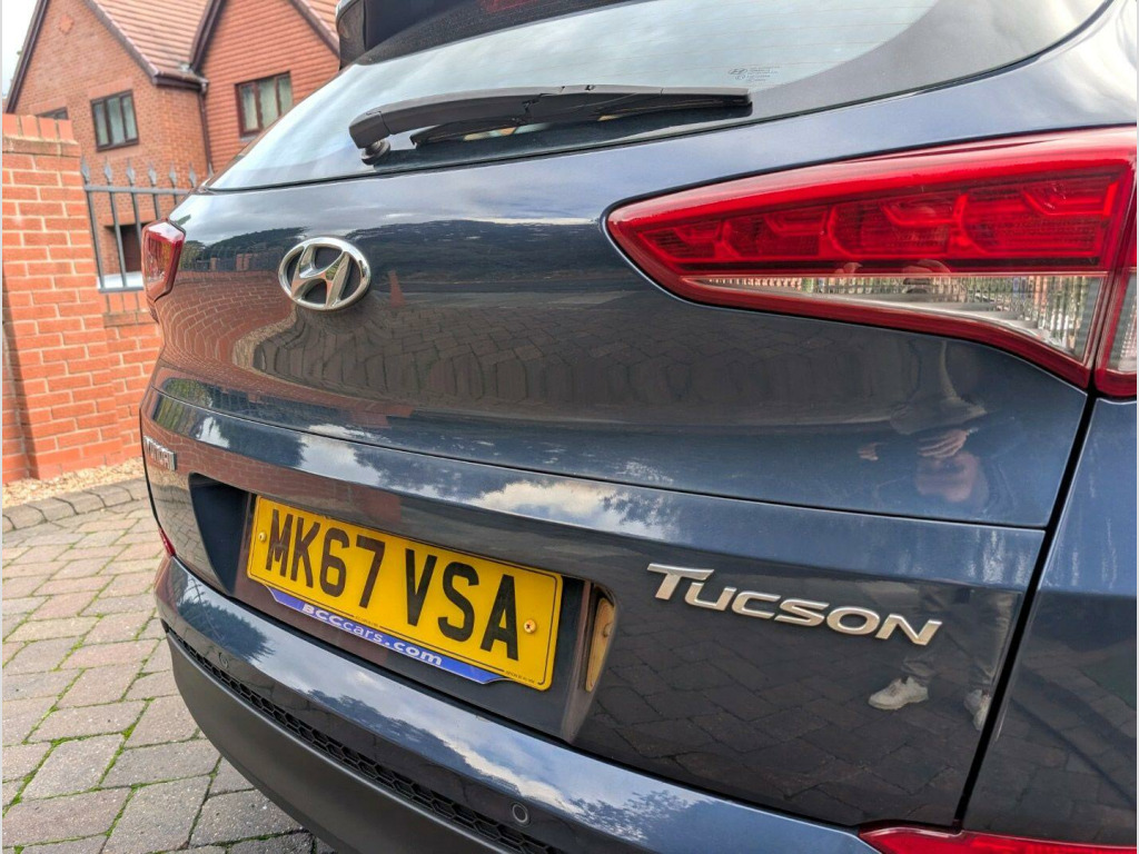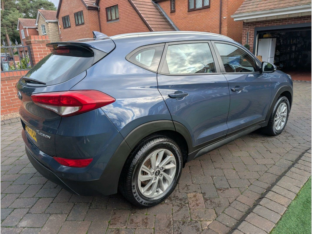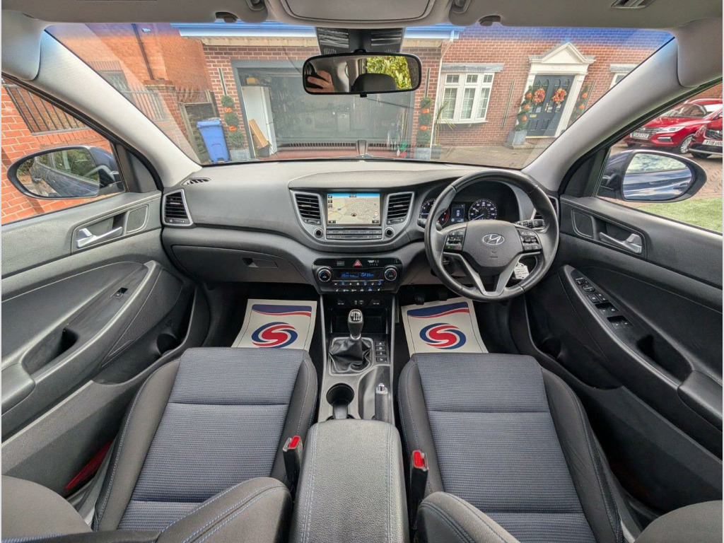 * BRAND NEW CLUTCH FITTED * 1 Former Keeper From New, Full Service History, Last Serviced in November 2025 with New Clutch, MOTed Until 28th November 2026 with No Advisories :: 1.6 GDi Petrol Engine, 132 BHP, 6-Speed Manual Gearbox :: ECONOMICALLY: Averages 44.8 MPG! 52.3 MPG on Motorways! :: 5 Door SUV, 5 Seats :: Stargazing Blue Metallic Paintwork, LED Daytime Running Lights, Two-Tone Black & Blue Comfort Cloth Upholstery, Satin Silver Interior Trim :: Touch-Screen Infotainment Screen, Satellite Navigation, Heated Front Seats with 3-Levels, Reversing Camera, Rear Parking Sensors, Cruise Control with Speed Limiter, Air Conditioning, 17'' Alloy Wheels, Bluetooth Phone Connection & Music Streaming, Voice Recognition, DAB Digital Radio, Auxiliary & USB Connections, Multi-Functional Steering Wheel, Electric Front & Rear Windows, Electric Heated Fold-In Mirrors, Drivers Electric Lumbar Support, Front & Rear Centre Armrests, Remote Central Locking with Spare Key, Satin Silver Roof Rails, Height Adjustable Front Seats, Isofix Preparation, Front Foglamps, Projection Headlights with Static Cornering Lights, Trip Computer, Tyre Pressure Monitoring System with Individual Tyre Display, Automatic Headlights with Dusk Sensor, Cupholders, Hyundai Kickplates, Rear Boot Spoiler, Electronic Stability Program, Automatic De-Fog System for Front Windscreen, Rear Load Cover, Vehicle Stability Management, Traction Control :: Cost Over £23,000 When New in late 2017! A very well-maintained family SUV!. 12V Power Outlet - Front Console and Luggage Compartment, 17in Alloy Wheels, 6 Airbags - Front - Front Seat Side and Curtain, 6 Speakers - 2 Tweeters - 2 Front Door - 2 Rear Door, 8in Touchscreen Satellite Navigation with Traffic Messaging Channel - Reversing Camera - Mapcare and Tom Tom LIVE Services, ABS - Anti-Lock Brake System with EBD - Electronic Brake-Force Distribution, Active Bonnet System, Adjustable Head Restraints, Adjustable Intermittent Front Windscreen Wipers with Aero Wiper Blade, Armrest - Front with Storage, Armrest - Rear Centre with Cup Holders, Automatic De-Fog System for Front Windscreen, Automatic Headlights with Dusk Sensor, BAS - Brake Assist System, Bluetooth Connectivity, Body Colour Bumpers, Bottle Holders - Front Centre Console and Door, Childproof Rear Door Locks, Climate Control - Dual Zone with Ioniser, Courtesy Light - Front Door, Cruise Control with Speed Limiter, Curtain Airbag Rollover Sensor, DBC - Downhill Brake Control, Daytime Running Lights - LED, Deadlocks, Digital Clock, Door Mirrors - Body Coloured, Door Mirrors - Electric Adjustment and Heated with Power Folding Function, Driver Seat Height Adjustment, ESP - Electronic Stability Programme, ESS - Emergency Stop Signal, Electric Windows - Front and Rear with Drivers Anti-Trap and One-Touch Up-Down Control, Exterior Door Handles - Body Coloured, Flex Steering, Front Fog Lights, Front Map Reading Lights, Front Passenger Airbag De-Activation Switch, Glove Compartment with Cooling Function and Illumination, HAC - Hill-Start Assist Control, Headlights - Follow Me Home Function, Heated Front Seats, Height Adjustable Front Seatbelts, ISOFIX Child Seat Anchorage Points - Rear - Outer Rear, Immobiliser, Interior Door Handles - Chrome Effect, Interior Light - Luggage Compartment, Interior Trim - Soft Touch - Door Top and Centre Trim, Lane Departure Warning System with Lane Keeping Assist, Leather Wrapped Steering Wheel and Gear Knob, Locking Wheel Nuts, Luggage Hooks, Luggage Net, Parking Sensors - Rear, Perimeter Alarm, Positioning Lights LED, Power Assisted Steering, Projection Headlights with Static Cornering Lights, Rear Lights - LED, Rear Spoiler with Integral LED Brake Light, Remote Central Locking, Retractable Load Cover, Roof Rails - Silver, Seatbelt Anchor Pre-Tensioners - Front, Seatbelt Reminder - Front and Rear, Seats - 60-40 Split Folding Rear, Seats - Drivers Electric Lumbar Support, Seats - Rear Reclining, Side Body Moulding - Black, Skid Plates - Front - Silver, Speed Limit Information System, Speed Sensitive Automatic Door Locking, Steering Wheel Audio and Phone Controls, Stereo RDS DAB Digital Radio with MP3 Compatibility, Sun Visors with Driver and Passenger Illuminated LED Vanity Mirrors, Sunglasses Holder, TSA - Trailer Stability Assist, Tinted Glass with Shade Band, Trip Computer, Tyre Pressure Monitoring System with Individual Tyre Display, Tyre Repair Kit, USB and AUX Connections, VSM - Vehicle Stability Management, Windscreen Washer Fluid Sensor and Warning Indicator, Cloth - Blue-Black.