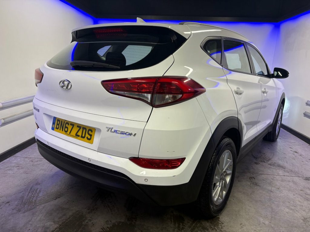 This 2017 Hyundai TUCSON GDi SE Nav boasts a clear vehicle history, offering you peace of mind. This stylish SUV is equipped with a 1.6 litre petrol engine and meets Euro 6 emission standards. Inside, you'll find comfortable heated front seats, an 8 inch touchscreen satellite navigation system with traffic messaging, a reversing camera, and Bluetooth connectivity for seamless calls and music streaming. Automatic headlights with a dusk sensor and rear parking sensors further enhance your driving experience, making every journey more convenient and secure. The TUCSON SE Nav stands out with its impressive fuel economy, achieving up to 45 miles per gallon, which is excellent for its class. Its low insurance group rating also means more affordable ownership compared to similar vehicles. Furthermore, the generous boot space provides ample room for shopping, luggage, or sports equipment, making this Hyundai TUCSON a practical and economical choice for everyday life. 12V Power Outlet - Front Console and Lug, 17in Alloy Wheels, 6 Airbags - Front - Front Seat Side and , 6 Speakers - 2 Tweeters - 2 Front Door -, 8in Touchscreen Satellite Navigation wit, ABS - Anti-Lock Brake System with EBD - , Active Bonnet System, Adjustable Head Restraints, Adjustable Intermittent Front Windscreen, Armrest - Front with Storage, Armrest - Rear Centre with Cup Holders, Automatic De-Fog System for Front Windsc, Automatic Headlights with Dusk Sensor, BAS - Brake Assist System, Bluetooth Connectivity, Body Colour Bumpers, Bottle Holders - Front Centre Console an, Childproof Rear Door Locks, Climate Control - Dual Zone with Ioniser, Courtesy Light - Front Door, Cruise Control