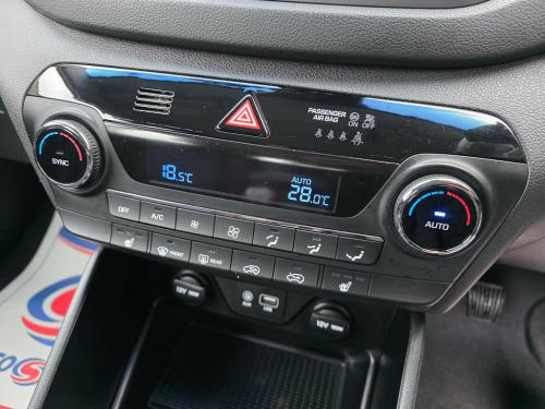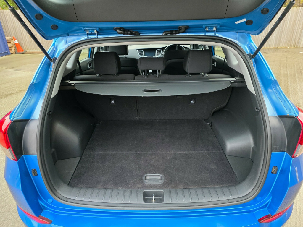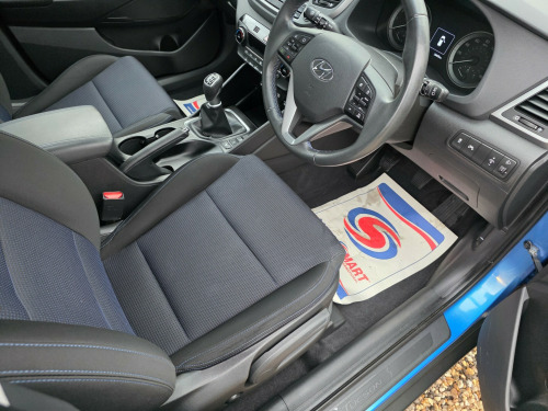 We are delighted to offer This two owner low milage 2018 Hyundai Tucson 1.6 GDi Blue Drive SE Nav SUV with 34,000 miles on the clock with full service history comes with a new mot, a stylish and reliable 5-door, 5-seater vehicle that runs on petrol and is ULEZ compliant, Packed with features such as 8in touchscreen satellite navigation with traffic messaging channel, reversing camera, and Bluetooth connectivity, this Euro 6 (s/s) (132 ps) SUV also includes stereo RDS DAB digital radio with MP3 compatibility, 6 speakers, and 12V power outlet in the front console and luggage compartment. With its sleek design and top-notch performance, this vehicle is the perfect choice for those seeking a comfortable and efficient ride, fantastic looking in metallic blue with charcoal/blue interior. v power outlet - front console and luggage compartment, 6 speakers - 2 tweeters - 2 front door - 2 rear door, 8in touchscreen satellite navigation with traffic messaging channel - reversing camera - mapcare and tom tom live services, bluetooth connectivity, stereo rds dab digital radio with mp3 compatibility, usb and aux connections, 17in alloy wheels, body colour bumpers, door mirrors - body coloured, door mirrors - electric adjustment and heated with power folding function, electric windows - front and rear with drivers anti-trap and one-touch up-down control, exterior door handles - body coloured, locking wheel nuts, positioning lights led, rear spoiler with integral led brake light, roof rails - silver, side body moulding - black, skid plates - front - silver, tinted glass with shade band, tyre repair kit, 6 airbags - front - front seat side and curtain, abs - anti-lock brake system with ebd - electronic brake-force distribution, active bonnet system, bas - brake assist system, childproof rear door locks, curtain airbag rollover sensor, dbc - downhill brake control, deadlocks, esp - electronic stability programme, ess - emergency stop signal, flex steering, front passenger airbag de-activation switch, hac - hill-start assist control, height adjustable front seatbelts, isofix child seat anchorage points - rear - outer rear, immobiliser, perimeter alarm, remote central locking, seatbelt anchor pre-tensioners - front, seatbelt reminder - front and rear, speed limit information system, speed sensitive automatic door locking, tsa - trailer stability assist, vsm - vehicle stability management, adjustable head restraints, adjustable intermittent front windscreen wipers with aero wiper blade, armrest - front with storage, armrest - rear centre with cup holders, automatic de-fog system for front windscreen, bottle holders - front centre console and door, climate control - dual zone with ioniser, courtesy light - front door, driver seat height adjustment, front map reading lights, glove compartment with cooling function and illumination, heated front seats, interior door handles - chrome effect, interior light - luggage compartment, interior trim - soft touch - door top and centre trim, leather wrapped steering wheel and gear knob, luggage hooks, luggage net, retractable load cover, seats - 60-40 split folding rear, seats - drivers electric lumbar support, seats - rear reclining, steering wheel audio and phone controls, sun visors with driver and passenger illuminated led vanity mirrors, sunglasses holder, automatic headlights with dusk sensor, daytime running lights - led, front fog lights, headlights - follow me home function, projection headlights with static cornering lights, rear lights - led, cruise control with speed limiter, digital clock, lane departure warning system with lane keeping assist, parking sensors - rear, power assisted steering, trip computer, tyre pressure monitoring system with individual tyre display, windscreen washer fluid sensor and warning indicator
