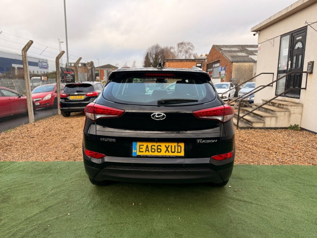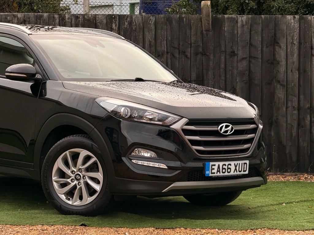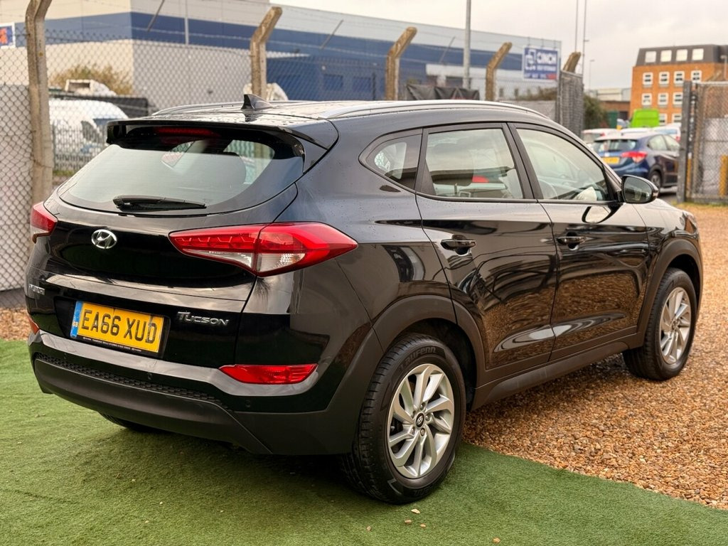 FINANCE AVAILABLE 2016 Hyundai Tucson 1.6 GDi Blue Drive SE 1.6L Petrol Engine (Euro 6 / ULEZ Compliant) Manual Transmission Presented in Black 90,323 miles 5 Door SUV Great Service History (Part) Latest Service at 83,341 miles Long MOT – Valid Until 29/10/2026 2 Keys Provided Plenty of service paperwork included Excellent condition for its age and mileage Clear vehicle history check No outstanding manufacturer recalls HPI Clear Features: Touchscreen infotainment system Bluetooth hands-free & audio streaming DAB radio USB & AUX connectivity Dual-zone climate control Rear parking sensors Cruise control with speed limiter Automatic headlights Electric folding mirrors Roof rails Alloy wheels ISOFIX child seat anchor points Electric windows front and rear Click & Collect available Nationwide delivery can be arranged Warranty: 3 Months Standard Warranty Included Options to upgrade to Comprehensive Customer Protect Warranty up to 24 months Roadside Recovery Cover also available 12V Power Outlet - Front Console and Lug, 17in Alloy Wheels, 6 Airbags - Front - Front Seat Side and , 6 Speakers - 2 Tweeters - 2 Front Door -, ABS - Anti-Lock Brake System with EBD - , Active Bonnet System, Adjustable Head Restraints, Adjustable Intermittent Front Windscreen, Armrest - Front with Storage, Armrest - Rear Centre with Cup Holders, Automatic De-Fog System for Front Windsc, Automatic Headlights with Dusk Sensor, BAS - Brake Assist System, Bluetooth Connectivity, Body Colour Bumpers, Bottle Holders - Front Centre Console an, Childproof Rear Door Locks, Climate Control - Dual Zone with Ioniser, Courtesy Light - Front Door, Cruise Control with Speed Limiter, Curtain Airbag Rollove