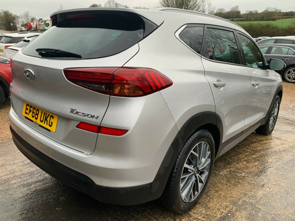 FREE UK DELIVERY - FINANCE AVAILABLE, CONTACT US NOW FOR A NO OBLIGATION QUOTE - CALL NOW TO ARRANGE A TEST DRIVE - PART EXCHANGE WELCOME - ONE YEAR WARRANTY MINIMUM, EXTENDED AVAILABLE, WARRANTY CAN BE REDEEMED AT VAT REGISETERED GARAGE - NO ADMIN FEES - ALL VEHICLES HPI CHECKED - FULL USED CAR INSPECTION MECHANICAL APPRAISAL CARRIED OUT ON ALL VEHICLES BEFORE LEAVING OURSELVES - YOU CAN REST ASSURED YOU'RE MAKING THE RIGHT DECISION WHEN PURCHASING YOUR NEW VEHICLE FROM US - OVER 100 VEHICLES IN STOCK - RIVERSIDE AUTOS LTD FAMILY RUN BUSINESS ESTABLISHED SINCE 2005 -This 2019 Hyundai TUCSON GDi Premium is a standout choice with remarkably low mileage for its age, having covered just 41994 miles. This Euro 6 compliant 1.6L petrol engine model offers a refined driving experience, enhanced by its Premium trim level. Inside, you'll find dual zone climate control to keep everyone comfortable, and heated front seats for those cooler days. Connectivity is seamless with Bluetooth and Apple CarPlay, allowing you to easily access your phone's features.The TUCSON GDi Premium also boasts practical advantages that set it apart. Its large boot space provides ample room for shopping, luggage, or equipment, making it incredibly versatile. Furthermore, its low insurance group rating indicates that running costs could be more affordable compared to similar vehicles. Front and rear parking sensors are also fitted, offering peace of mind when manoeuvring in tight spaces.. 12V Power Outlet - Front Console and Luggage Compartment, 18in Alloy Wheels, 6 Airbags - Front - Front Seat Side and Curtain, 8in Touchscreen Satellite Navigation including Traffic Messaging Channel - Mapcare and Live Services, ABS - Anti-Lock Brake System, Active Bonnet System, Adjustable Head Restraints, Adjustable Intermittent Front Windscreen Wipers with Aero Wiper Blade, Air Conditioning - Dual Zone Climate Control, Armrest - Front with Storage, Armrest - Rear Centre with Cup Holders, Automatic Dimming Rear View Mirror with Compass, Automatic Headlights with Dusk Sensor, Automatic Windscreen Wipers with Rain Sensor, Autonomous Emergency Brake, BAS - Brake Assist System, Blind Spot Detection System - BSD, Bluetooth Connectivity, Body Colour Bumpers, Bottle Holders - Front Centre Console and Door, Childproof Rear Door Locks, Chrome Effect Beltline Moulding, Cruise Control with Speed Limiter, Curtain Airbag Rollover Sensor, DAB Digital Radio, DBC - Downhill Brake Control, Daytime Running Lights - LED, Deadlocks, Digital Clock, Door Courtesy Lights, Door Mirror Puddle Lights, Door Mirrors - Electric Adjustment and Heated with Power Folding Function, Door Mirrors with Integrated Indicators - Body Coloured, Driver Attention Alert - DAA, Driver Seat Height Adjustment, ESP - Electronic Stability Programme, ESS - Emergency Stop Signal, Electric Parking Brake, Electric Windows - Front and Rear with Drivers Anti-Trap and One-Touch Up-Down Control, Exterior Door Handles - Chrome Effect with Front Handle Illumination, Flex Steering, Front Fog Lights, Front Passenger Airbag De-Activation Switch, Front Windscreen Wiper De-Icer, Glove Compartment with Cooling Function and Illumination, HAC - Hill-Start Assist Control, Headlights - Halogen Projector Type, Heated Front Seats, Heated Rear Seats, ISOFIX Child Seat Anchorage Points - Rear - Outer Rear, Immobiliser, Interior Door Handles - Chrome Effect, Interior Light - Luggage Compartment, Interior Light - Map Reading Lights, Krell Premium Audio - 8 Speakers and Subwoofer, Lane Keep Assist - LKA, Leather Effect Drivers Knee Bolster, Leather Wrapped Steering Wheel and Gear Knob, Locking Wheel Nuts, Luggage Cover, Luggage Hooks, Luggage Net, Parking Sensors - Front and Rear, Parking System - Rear Camera, Passenger Seat Height Adjustment - Electric, Perimeter Alarm, Phone Connection - Android Auto, Phone Connection - Apple CarPlay, Positioning Lights LED, Power Assisted Steering, Privacy Glass - Rear Windows and Tailgate, Radiator Grille - Chrome Effect, Rear Cross Traffic Alert - RCTA, Rear Lights - LED, Rear Seats - Reclining Manual, Roof Rails - Silver, Seatbelt Anchor Pre-Tensioners - Front, Seatbelt Reminder - Front and Rear, Seatbelts - Height Adjustable Driver and Front Side Passenger, Seats - 60-40 Split Folding Rear, Seats - Drivers Electric Adjustment, Seats - Drivers Electric Lumbar Support, Seats - Passenger Electric Adjustment, Side Body Moulding - Silver, Skid Plates - Front - Silver, Smart Key - Keyless Entry with Engine Start-Stop Button, Solar Glass with Shade Band, Spare Wheel - Temporary Space Saver, Speed Limit Information System, Speed Sensitive Automatic Door Locking, Static Cornering Lights, Steering Wheel Audio and Phone Controls, Sun Visors with Driver and Passenger Illuminated LED Vanity Mirrors, Sunglasses Holder, Supervision Instrument Cluster, TSA - Trailer Stability Assist, Trip Computer, Tyre Pressure Monitoring System with Individual Tyre Display, USB and AUX Connections - Front, VSM - Vehicle Stability Management, Windscreen Washer Fluid Sensor and Warning Indicator, Wireless Phone Charging Pad.