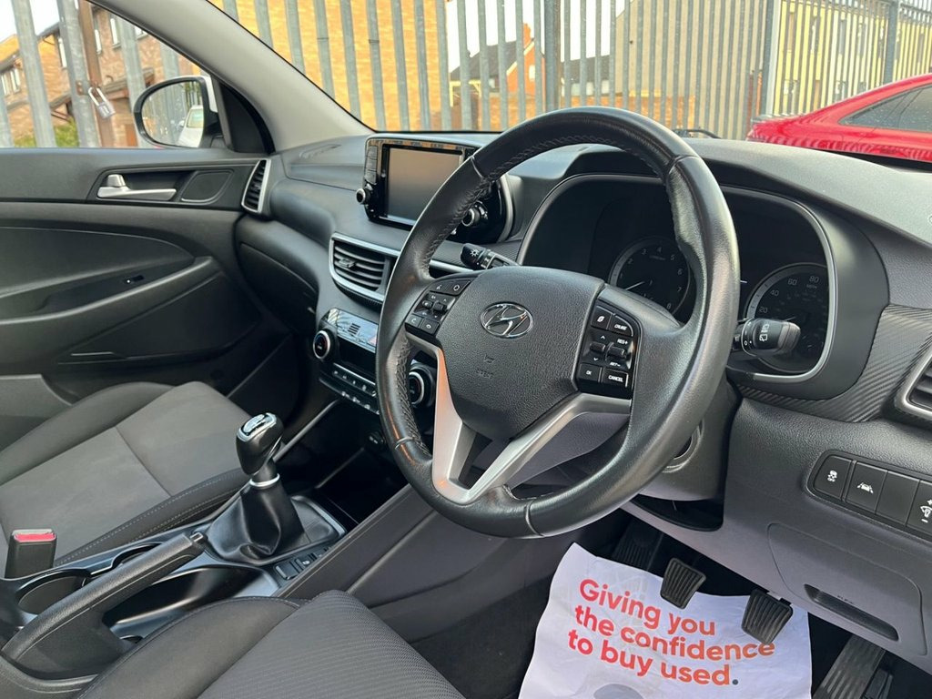 Autounit are pleased to offer this this 2019 Hyundai Tucson with just one keeper from new. It boasts a responsive 1.6 litre petrol engine, meeting Euro 6 emissions standards and as everything a family could possibly need. It boasts a large boot ideal for a family and plenty of technology including Apple CarPlay, Android Auto and a rear camera.  The 1.6 GDI engine is ideally suited to this 6 speed manual gearbox that offers responsive performance around town and happy motorway cruising.  12V Power Outlet - Front Console and Lug, 16in Alloy Wheels, 6 Airbags - Front - Front Seat Side and , 6 Speakers - 2 Tweeters - 2 Front Door -, ABS - Anti-Lock Brake System, Active Bonnet System, Adjustable Head Restraints, Adjustable Intermittent Front Windscreen, Air Conditioning - Dual Zone Climate Con, Armrest - Front with Storage, Armrest - Rear Centre with Cup Holders, Automatic Headlights with Dusk Sensor, Autonomous Emergency Brake, BAS - Brake Assist System, Bluetooth Connectivity, Body Colour Bumpers, Bottle Holders - Front Centre Console an, Centre Console Display - 7in Touchscreen, Childproof Rear Door Locks, Curtain Airbag Rollover Sensor, DAB Digital Radio, DBC - Downhill Brak
