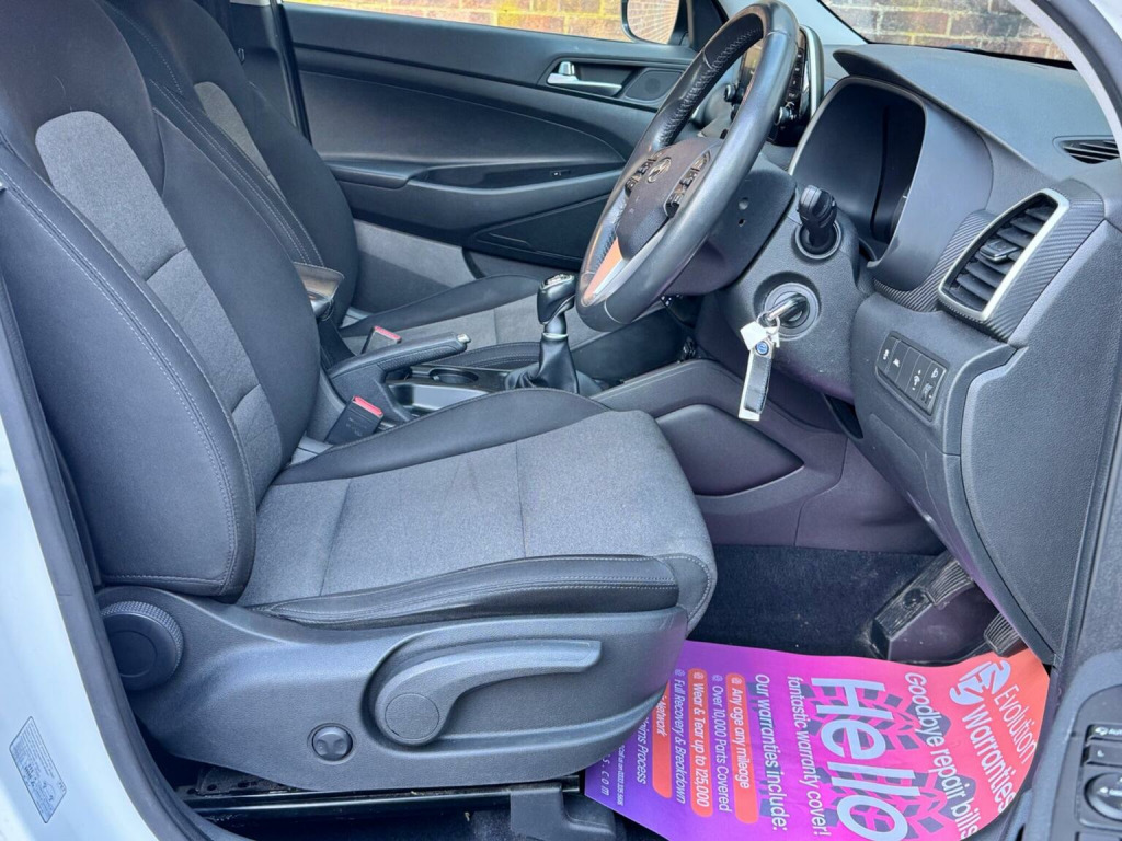 Comes with warranty, 1 Former keeper, 2 Keys, Full Service history, Last done 73881, MOT till 18-11-2026, This 2019 Hyundai TUCSON GDi SE Nav is presented with a clear vehicle history check, offering you peace of mind. This well maintained 1.6 litre petrol model, compliant with Euro 6 emissions standards, features a dual zone climate control air conditioning system to keep everyone comfortable. Navigating tight spots is made easier with rear parking sensors and a rear camera, complemented by automatic headlights that activate with a dusk sensor. For seamless connectivity, it includes Android Auto, allowing you to integrate your smartphone with the cars system. The SE Nav trim level of this TUCSON boasts a generous boot space, ideal for luggage or shopping. Furthermore, its low insurance group rating indicates that running costs are likely to be more affordable compared to similar vehicles. These combined highlights demonstrate the practical and economical advantages this Hyundai TUCSON offers. Delivery and driveway insurance available on affordable cost, Finance Available, All of our Sales are subject to Admin Fee. Welcome for part exchange and any inspection, LU61BH