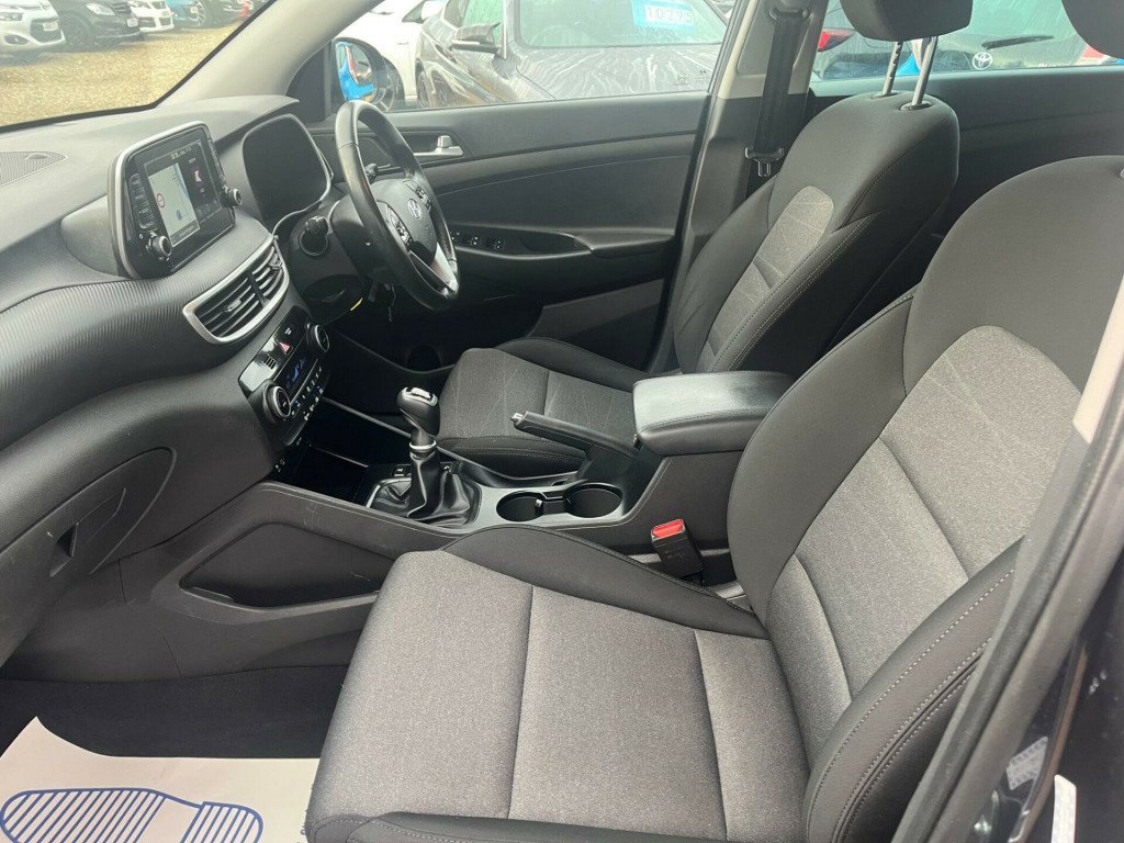 This 2019 Hyundai TUCSON GDi SE Nav is a superb example of a well maintained family SUV. It boasts a 1.6 litre petrol engine and meets Euro 6 emission standards. This SE Nav trim level comes equipped with rear parking sensors and a rear camera to assist with manoeuvring, alongside Bluetooth connectivity for seamless phone integration. Enjoy the convenience of Apple CarPlay and Android Auto, allowing you to connect your smartphone for navigation and entertainment.The TUCSON offers a generous boot space, making it ideal for carrying luggage, shopping, or sports equipment. Furthermore, its position within a low insurance group means that running costs are kept to a minimum, offering excellent value for money compared to similar vehicles. This combination of practicality, technology, and affordability makes this Hyundai TUCSON a compelling choice.. 12V Power Outlet - Front Console and Luggage Compartment, 17in Alloy Wheels, 6 Airbags - Front - Front Seat Side and Curtain, 6 Speakers - 2 Tweeters - 2 Front Door - 2 Rear Door, 8in Touchscreen Satellite Navigation including Traffic Messaging Channel - Mapcare and Live Services, ABS - Anti-Lock Brake System, Active Bonnet System, Adjustable Head Restraints, Adjustable Intermittent Front Windscreen Wipers with Aero Wiper Blade, Air Conditioning - Dual Zone Climate Control, Armrest - Front with Storage, Armrest - Rear Centre with Cup Holders, Automatic Dimming Rear View Mirror with Compass, Automatic Headlights with Dusk Sensor, Automatic Windscreen Wipers with Rain Sensor, Autonomous Emergency Brake, BAS - Brake Assist System, Bluetooth Connectivity, Body Colour Bumpers, Bottle Holders - Front Centre Console and Door, Childproof Rear Door Locks, Cruise Control with Speed Limiter, Curtain Airbag Rollover Sensor, DAB Digital Radio, DBC - Downhill Brake Control, Daytime Running Lights - LED, Deadlocks, Digital Clock, Door Courtesy Lights, Door Mirrors - Electric Adjustment and Heated with Power Folding Function, Door Mirrors with Integrated Indicators - Body Coloured, Driver Attention Alert - DAA, ESP - Electronic Stability Programme, ESS - Emergency Stop Signal, Electric Windows - Front and Rear with Drivers Anti-Trap and One-Touch Up-Down Control, Exterior Door Handles - Body Coloured, Flex Steering, Front Fog Lights, Front Passenger Airbag De-Activation Switch, Glove Compartment with Cooling Function and Illumination, HAC - Hill-Start Assist Control, Headlights - Halogen Projector Type, ISOFIX Child Seat Anchorage Points - Rear - Outer Rear, Immobiliser, Interior Door Handles - Chrome Effect, Interior Light - Luggage Compartment, Interior Light - Map Reading Lights, Lane Keep Assist - LKA, Leather Wrapped Steering Wheel and Gear Knob, Locking Wheel Nuts, Luggage Cover, Luggage Hooks, Luggage Net, Parking Sensors - Rear, Parking System - Rear Camera, Passenger Seat Height Adjustment - Manual, Perimeter Alarm, Phone Connection - Android Auto, Phone Connection - Apple CarPlay, Positioning Lights LED, Power Assisted Steering, Privacy Glass - Rear Windows and Tailgate, Radiator Grille - Chrome Effect, Rear Lights - LED, Rear Seats - Reclining Manual, Remote Central Locking, Roof Rails - Silver, Seatbelt Anchor Pre-Tensioners - Front, Seatbelt Reminder - Front and Rear, Seatbelts - Height Adjustable Driver and Front Side Passenger, Seats - 60-40 Split Folding Rear, Seats - Drivers Electric Lumbar Support, Side Body Moulding - Black, Skid Plates - Front - Silver, Spare Wheel - Temporary Space Saver, Speed Limit Information System, Speed Sensitive Automatic Door Locking, Static Cornering Lights, Steering Wheel Audio and Phone Controls, Sun Visors with Driver and Passenger Illuminated LED Vanity Mirrors, Sunglasses Holder, TSA - Trailer Stability Assist, Tinted Glass with Shade Band, Trip Computer, Tyre Pressure Monitoring System with Individual Tyre Display, USB and AUX Connections - Front, VSM - Vehicle Stability Management, Windscreen Washer Fluid Sensor and Warning Indicator.