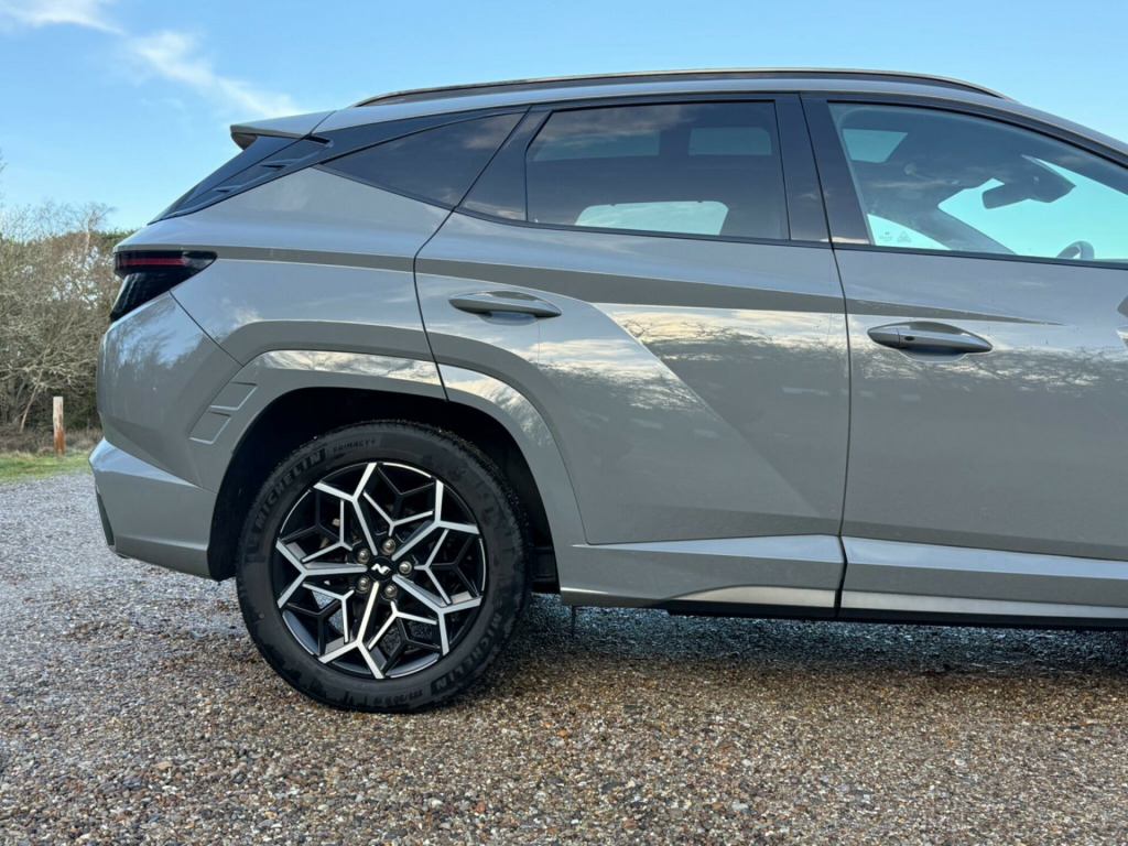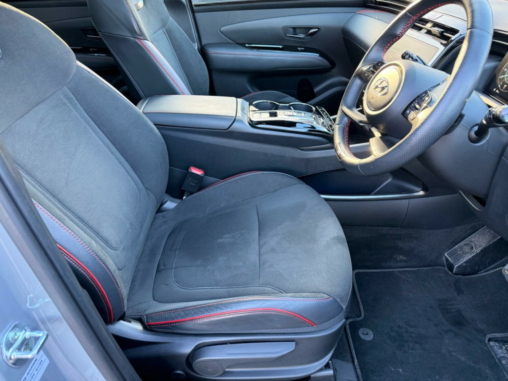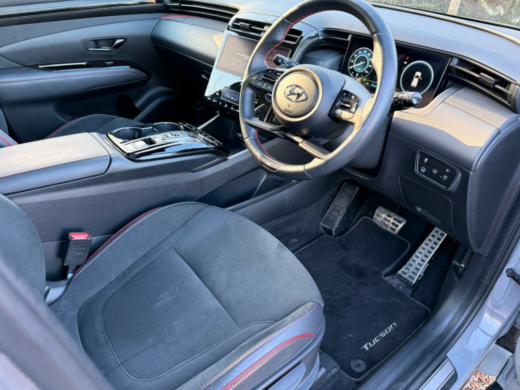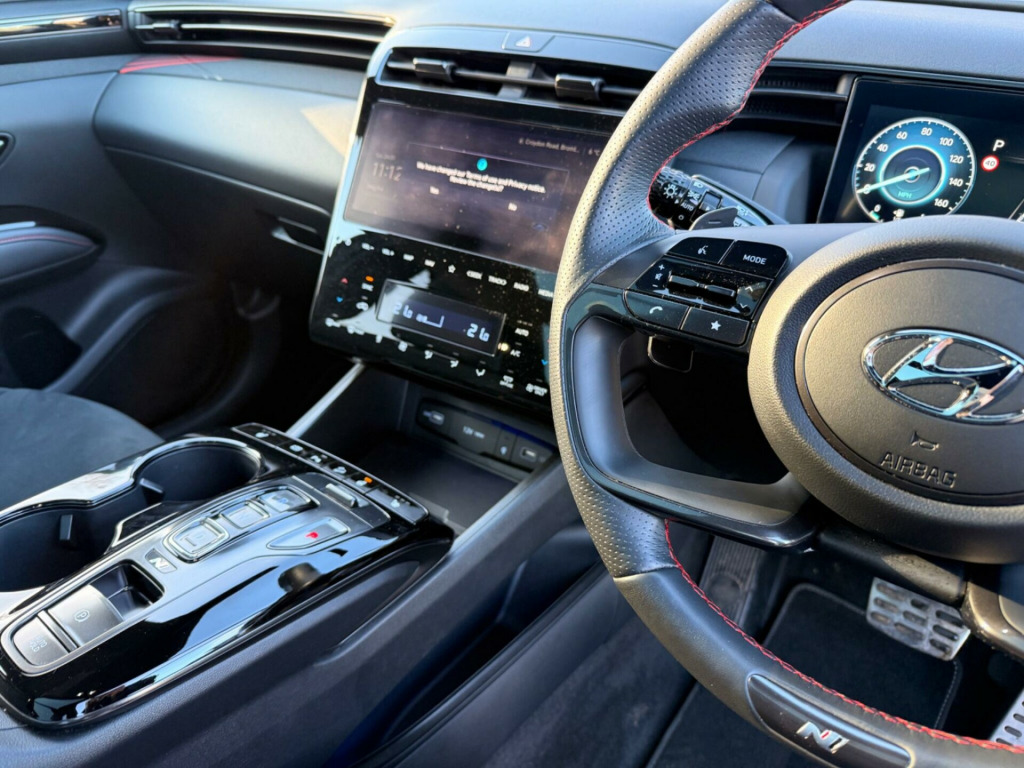 This 2022 Hyundai TUCSON h T-GDi N Line S presents an exceptional ownership proposition with its remarkably low mileage of just 7000 miles and a full dealership service history, most recently serviced on 2025-08-22 at 5742 miles, with a clear vehicle history check. This Euro 6 compliant 1.6 litre petrol hybrid is presented in the N Line S trim, offering a sophisticated driving experience. Notable features include advanced LED headlights with static bending light and automatic dusk sensing, keyless entry with an engine start-stop button, and front and rear parking sensors for effortless manoeuvring. Stay connected on the go with seamless Apple CarPlay integration.The Hyundai TUCSON h T-GDi N Line S stands out with its impressive performance, achieving 0-62mph in a swift 8.0 seconds, indicating a more responsive drive compared to similar vehicles. Its appeal is further enhanced by a low insurance group, making it a cost effective choice for many drivers. Practicality is also a key strength, boasting generous boot space that provides ample room for luggage or shopping, setting it apart from other cars in its class. With only one owner since new, this TUCSON offers a well maintained and desirable package.EMAIL: salesholwoodcarsltd.co.ukTELEPHONE: 01689 853475WEBSITE: www.holwoodcarsltd.co.ukWE OPERATE BY APPOINTMENT ONLY. PLEASE CALL THE SHOWROOM TO BOOK A TIME SLOT. 82 POINT RAC COMPLIANT INSPECTION CARRIED OUT. ather-suede - black with red stitching, 10.25in touchscreen satellite navigation - mapcare - live services, 12v power outlet - front centre facia and luggage compartment, 19in alloy wheels, abs - anti-lock brake system, adjustable head restraints, adjustable intermittent front windscreen wipers with aero wiper blade, airbags - front - front side - curtain and centre front airbag, alarm - thatcham category 1, alloy pedals, armrest - front with storage, armrest - rear with cup holders, automatic dimming rear view mirror, automatic windscreen wipers with rain sensor, bas - brake assist system, blind spot collision avoidance assist, bluelink, bluetooth connectivity, body colour bumpers, body coloured wheel arch inserts, central locking - remote control, childproof rear door locks, climate control - three zone, cruise control - smart adaptive speed control with stop and go function, dab digital radio, dbc - downhill brake control, daytime running lights - led, deadlocks, door frame moulding - gloss black, door mirrors - electric adjustment and heated with power folding function, door mirrors with integrated indicators - body coloured, drive mode select, driver attention warning, drivers seat height adjustment - manual, drivers seat lumbar support - electric, e-call, ess - emergency stop signal, electric parking brake with auto hold function, electric windows - front and rear with anti-trap mechanism and one touch control, electronic stability control - esc, exterior door handles - body coloured, forward collision-avoidance assist - fca with car - pedestrian and cycle, forward collision-avoidance assist - junction turning, front passenger airbag de-activation switch, front seatbelt pre-tensioners, front and rear seatbelt reminder, hac - hill-start assist control, headlights - automatic with dusk sensor, headlights - led - mfr with static bending light, heated front seats, heated steering wheel, high beam assist, isofix child seat anchorage points - rear, immobiliser, intelligent speed limit assist - isla, interior light - ambient lighting, interior light - luggage compartment, interior light - map reading lights, interior personal led light and overhead console lamp, krell premium audio - 8 speakers and subwoofer, lane follow assist - lfa, lane keep assist - lka, leather wrapped steering wheel and gear knob, locking wheel nuts, luggage cover, manual speed limit assist - msla, multi collision braking - mca, panoramic sunroof - glass - electric tilt and slide, parking sensors - front and rear, parking system - rear camera, passenger seat height adjustment - manual, phone connection - android auto, phone connection - apple carplay, positioning lights led, power assisted steering, privacy glass - rear windows and tailgate, radiator grille - dark chrome, rear cross traffic collision avoidance, rear lights - led, rear side window blind, roof rails, seatbelts - height adjustable driver and front passenger, seats - 40-20-40 split folding rear, skid plates - front and rear - silver, smart electric tailgate, smart key - keyless entry with engine start-stop button, speed sensitive automatic door locking, steering wheel audio and phone controls, sun visors with driver and passenger illuminated led vanity mirrors, supervision instrument cluster - 10.25in, tsa - trailer stability assist, tinted glass with windscreen shade band, tyre pressure monitoring system with individual tyre pressure display, tyre repair kit, usb connections - front and rear, windscreen washer fluid sensor and warning indicator, wireless phone charging pad