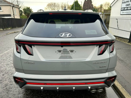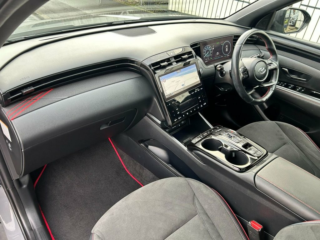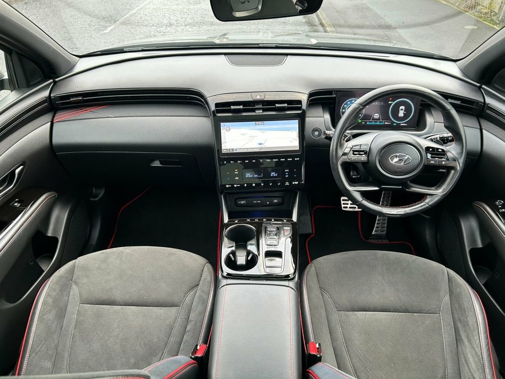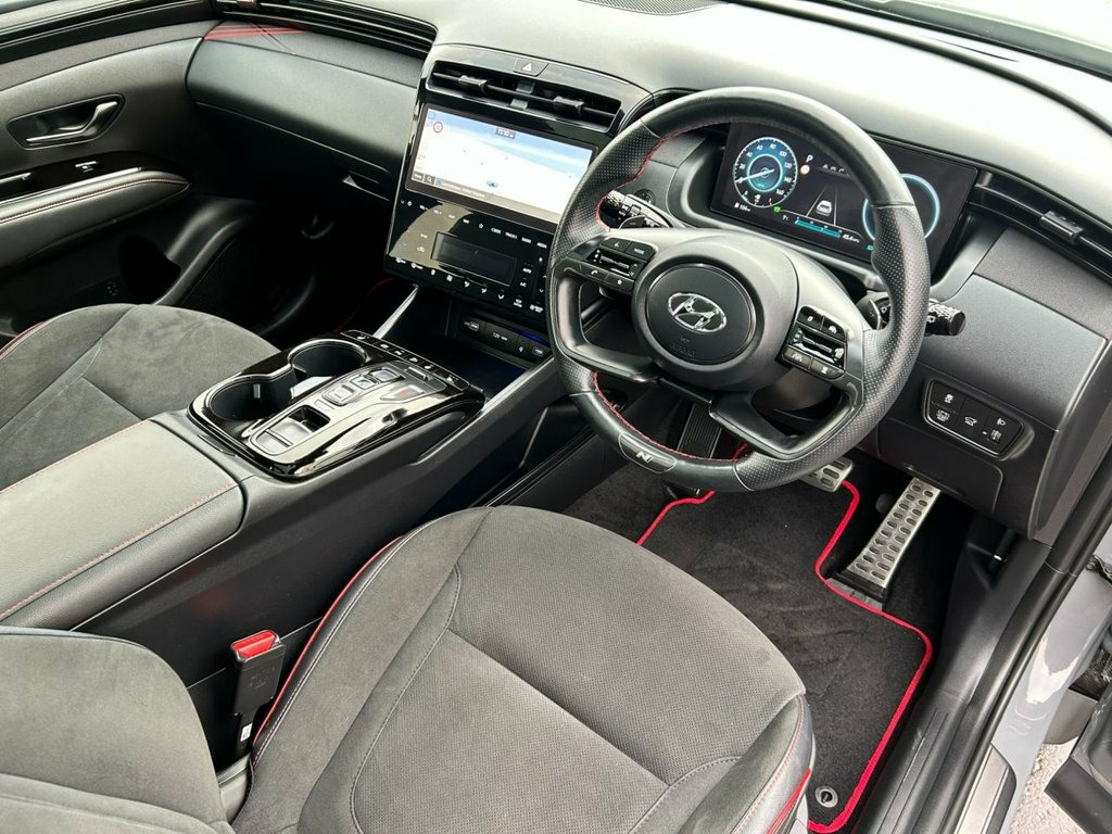 Our top of the range Hyundai Tucson N Line S is one absolutely stunning looking vehicle finished in Shadow grey with its full sized tilt and slide panoramic sunroof, rear privacy glass and these gorgeous 19 inch alloy wheels. The latest Hybrid technology means that behind the wheel its nothing short of hugely impressive, producing an astonishing 230bhp whilst switching seamlessly from its hybrid electric battery and a 1.6 litre turbo charged petrol engine self charging the batteries and saving fuel without the need to plug in and charge - this car charges itself! Sporty N Line S trim is well finished, trimmed in red stitching to seats, door cards and steering wheel and its packed with tech like satellite navigation, smart phone connection, wireless phone charging and Hyundai BlueLink connectivity along with those everyday essentials such as parking sensors, reversing camera, electrically powered tailgate and keyless entry. For driver comfort its equipped with heated seats, heated steering wheel, LED lighting with high beam assist and an array of safety features such as lane assist, collision avoidance, blind spot monitoring and cruise control. Spacious and great to drive this very popular choice of SUV has had just two previous owners, comes with a 4 stamps in a Hyundai service history and is still covered by Hyundai manufacturer warranty until November 2027. Buy this modern and tech packed SUV today and the list price is over £42000 - so at our price this is so much ca Shadow Grey Solid, 10.25in Touchscreen Satellite Navigation, 12V Power Outlet - Front Centre Facia an, 19in Alloy Wheels, ABS - Anti-Lock Brake System, Adjustable Head Restraints, Adjustable Intermittent Front Windscreen, Airbags - Front - Front Side - Curtain a, Alarm - Thatcham Category 1, Armrest - Front with Storage, Armrest - Rear with Cup Holders, Automatic Dimming Rear View Mirror, Automatic Windscreen Wipers with Rain Se, BAS - Brake Assist System, Blind Spot Collision Avoidance Assist, BlueLink, Bluetooth Connectivity, Body Colour Bumpers, Body Coloured Wheel Arch Inserts, Central Locking - Remote Control, Childproof Rear Door Locks, Climate Control - Three Zone, Cruise Control - Sm