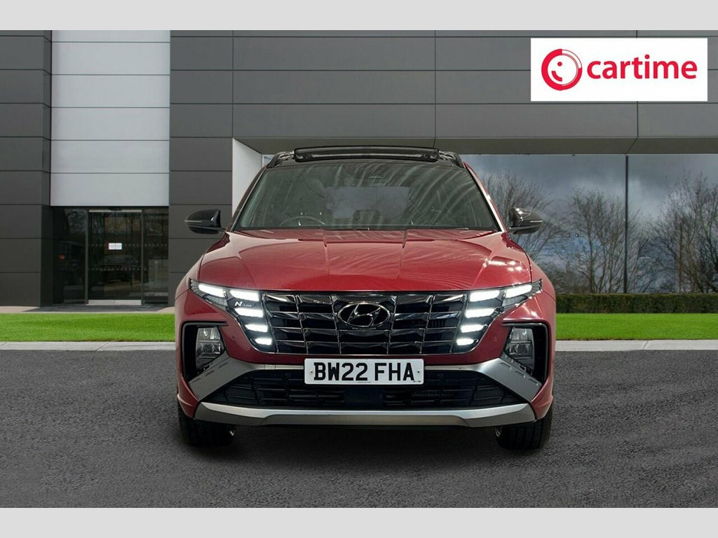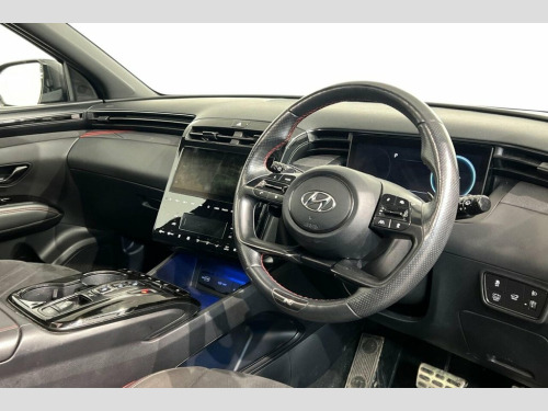This 2022 Hyundai TUCSON h T-GDi N Line S offers exceptional provenance, having had only one owner and boasting an MOT valid until August 2026, with a clear vehicle history check. This Euro 6 compliant 1.6 litre petrol hybrid is presented in the sporty N Line S trim, featuring desirable additions such as heated front seats and a heated steering wheel for ultimate comfort, front and rear parking sensors to aid manoeuvrability, and seamless Bluetooth connectivity with Android Auto and Apple CarPlay for effortless phone integration. Experience impressive performance with an acceleration of 0-60mph in just 8.0 seconds, demonstrating its capability. The TUCSON also stands out with its generous boot space, offering practicality for all your needs, and benefits from a low insurance group, making it an economical choice. These highlights collectively indicate that this Hyundai TUCSON offers a superior ownership experience compared to similar vehicles. 10.25in Touchscreen Satellite Navigation, 12V Power Outlet - Front Centre Facia an, 19in Alloy Wheels, ABS - Anti-Lock Brake System, Adjustable Head Restraints, Adjustable Intermittent Front Windscreen, Airbags - Front - Front Side - Curtain a, Alarm - Thatcham Category 1, Alloy Pedals, Armrest - Front with Storage, Armrest - Rear with Cup Holders, Automatic Dimming Rear View Mirror, Automatic Windscreen Wipers with Rain Se, BAS - Brake Assist System, Blind Spot Collision Avoidance Assist, BlueLink, Bluetooth Connectivity, Body Colour Bumpers, Body Coloured Wheel Arch Inserts, Central Locking - Remote Control, Childproof Rear Door Locks, Climate Control - Three Zone, Cruise Control - Smart A