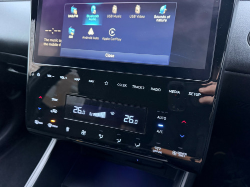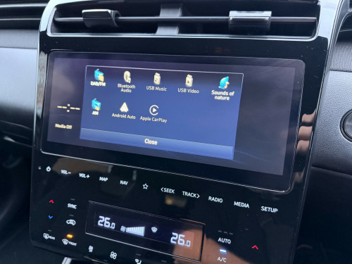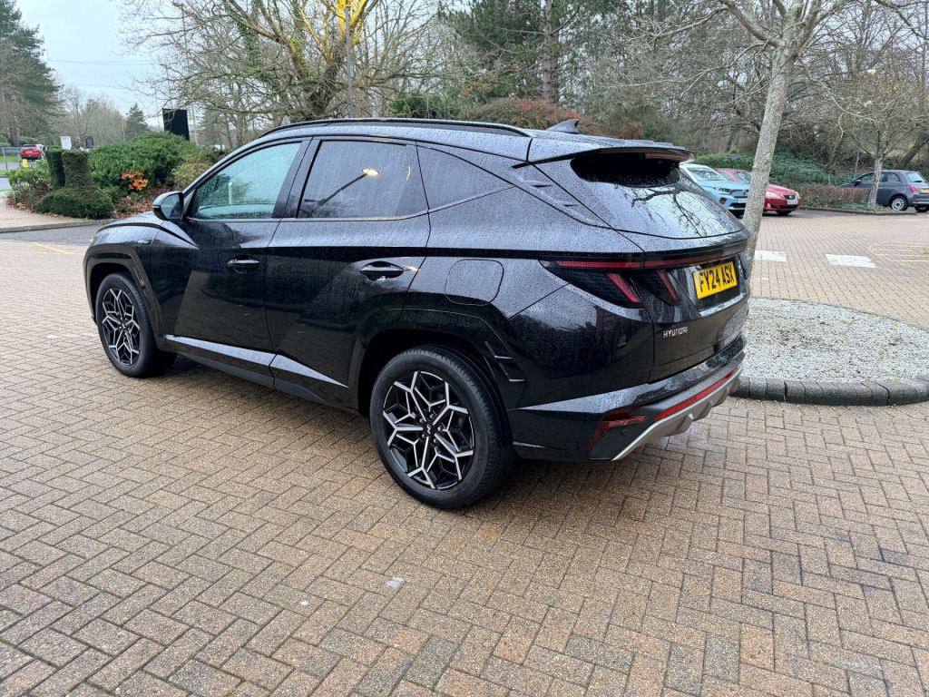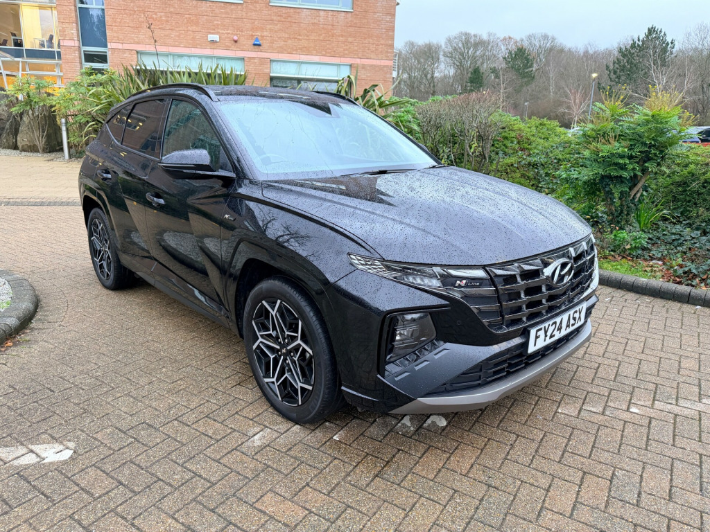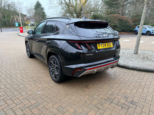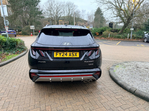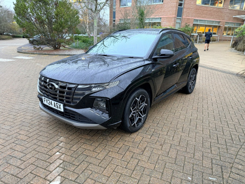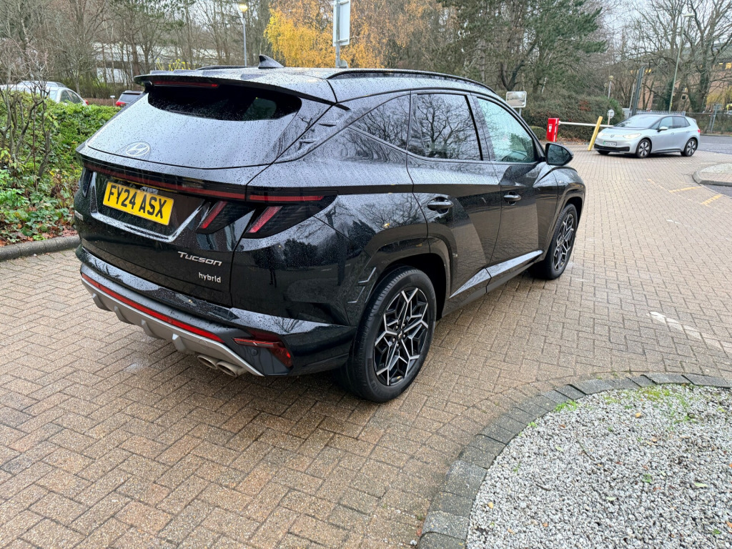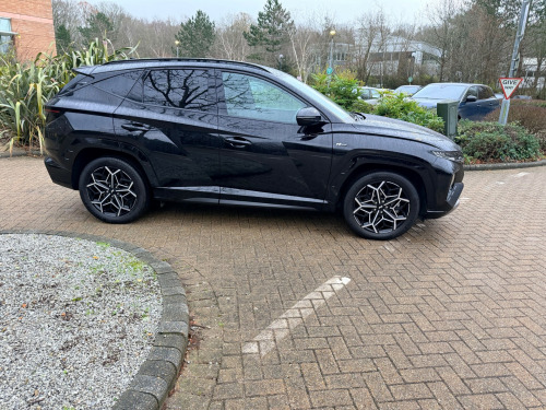 Comes with Hyundai warranty This 2024 Hyundai Tucson 1.6 h T-GDi N Line SUV with a mileage of 15000 miles is a Petrol Hybrid vehicle and is ULEZ compliant. The MOT for this 5-door SUV with 5 seats expires on 28/04/2027. It comes with features like Abyss Black, 10.25in Touchscreen Satellite Navigation with Mapcare and LIVE Services, 12V Power Outlet in the front centre facia and luggage compartment, BlueLink, and Bluetooth Connectivity. With 230 ps, this Euro 6 (s/s) vehicle is a reliable and efficient choice for anyone in need of a spacious and comfortable drive. BY APPOINTMENT ONLY! .25in touchscreen satellite navigation - mapcare - live services, 12v power outlet - front centre facia and luggage compartment, bluelink, bluetooth connectivity, dab digital radio, e-call, phone connection - android auto, phone connection - apple carplay, speakers - front - rear and tweeters, usb - front - 1x charger 1x connectivity, usb - rear, wireless phone charging pad, 19in alloy wheels, body colour bumpers, body coloured wheel arch inserts, door frame moulding - gloss black, door mirrors - electric adjustment and heated with power folding function, door mirrors with integrated indicators - body coloured, electric windows - front and rear with anti-trap mechanism and one touch control, exterior door handles - body coloured, locking wheel nuts, privacy glass - rear windows and tailgate, radiator grille - dark chrome, roof rails, skid plates - front and rear - silver, tinted glass with windscreen shade band, tyre repair kit, abs - anti-lock brake system, airbags - front - front side - curtain and centre front airbag, alarm - thatcham category 1, bas - brake assist system, central locking - remote control, childproof rear door locks, dbc - downhill brake control, deadlocks, ess - emergency stop signal, electric parking brake with auto hold function, electronic stability control - esc, front passenger airbag de-activation switch, front seatbelt pre-tensioners, front and rear seatbelt reminder, hac - hill-start assist control, isofix child seat anchorage points - rear, immobiliser, lane keep assist - lka, multi collision braking - mca, seatbelts - height adjustable driver and front passenger, smart key - keyless entry with engine start-stop button, speed sensitive automatic door locking, tsa - trailer stability assist, adjustable head restraints, adjustable intermittent front windscreen wipers with aero wiper blade, armrest - front with storage, armrest - rear with cup holders, automatic dimming rear view mirror, automatic windscreen wipers with rain sensor, climate control - dual zone, drivers seat height adjustment - manual, drivers seat lumbar support - electric, front passengers seat height adjustment - manual, heated front seats, interior light - ambient lighting, interior light - luggage compartment, interior light - map reading lights, lane follow assist - lfa, luggage cover, passenger seat height adjustment - manual, pedals - aluminium, seats - 40-20-40 split folding rear, steering wheel audio and phone controls, sun visors with driver and passenger illuminated led vanity mirrors, supervision instrument cluster - 10.25in, cruise control, drive mode select, driver attention warning, forward collision-avoidance assist - fca with car - pedestrian and cycle, intelligent speed limit assist - isla, manual speed limit assist - msla, parking sensors - front and rear, parking system - rear camera, power assisted steering, tyre pressure monitoring system with individual tyre pressure display, daytime running lights - led, headlights - automatic with dusk sensor, headlights - full led, high beam assist, rear lights - led