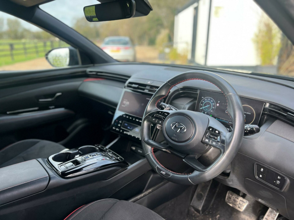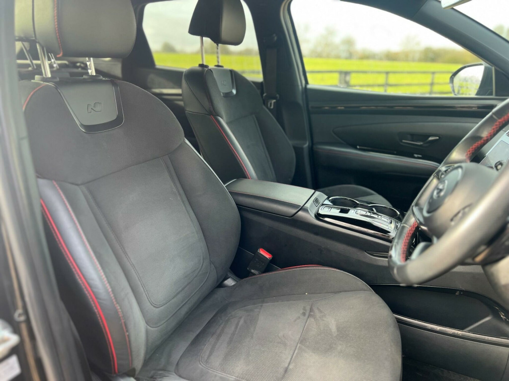 This 2023 Hyundai TUCSON T-GDi N Line is a superb example, having had only one owner since new. This Euro 6 compliant, Four Wheel Drive model boasts a 1.6 litre Petrol Plug-in Hybrid engine, offering an efficient and powerful driving experience. Inside, you'll find a Wireless Phone Charging Pad for convenience, and Dual Zone Climate Control to keep all occupants comfortable. The MFR LED Headlights with Static Bending Light ensure excellent visibility, while the inclusion of an ICCB Cable for domestic sockets and a charging cable for AC charging stations makes powering up straightforward.The TUCSON N Line stands out with its generous boot space, providing ample room for all your luggage or shopping needs. Furthermore, its low insurance group rating indicates that running costs are kept to a minimum, making it an economical choice. These aspects, combined with its advanced hybrid technology and four wheel drive capability, position this Hyundai TUCSON as a highly practical and appealing option compared to other vehicles in its class. .25in touchscreen satellite navigation - mapcare - live services, 12v power outlet - front centre facia and luggage compartment, 19in alloy wheels, abs - anti-lock brake system, adjustable head restraints, adjustable intermittent front windscreen wipers with aero wiper blade, airbags - front - front side - curtain and centre front airbag, alarm - thatcham category 1, alloy pedals, armrest - front with storage, armrest - rear with cup holders, automatic dimming rear view mirror, automatic windscreen wipers with rain sensor, bas - brake assist system, bluelink, bluetooth connectivity, body colour bumpers, body coloured wheel arch inserts, central locking - remote control, charging cable - ac charging stations, childproof rear door locks, climate control - dual zone, cruise control, dab digital radio, dbc - downhill brake control, daytime running lights - led, deadlocks, door frame moulding - gloss black, door mirrors - electric adjustment and heated with power folding function, door mirrors with integrated indicators - body coloured, drive mode select, driver attention warning, drivers seat height adjustment - manual, drivers seat lumbar support - electric, e-call, ess - emergency stop signal, electric parking brake with auto hold function, electric windows - front and rear with anti-trap mechanism and one touch control, electronic stability control - esc, exterior door handles - body coloured, forward collision-avoidance assist - fca with car - pedestrian and cycle, front passenger airbag de-activation switch, front seatbelt pre-tensioners, front and rear seatbelt reminder, hac - hill-start assist control, headlights - automatic with dusk sensor, headlights - led - mfr with static bending light, heated front seats, high beam assist, iccb cable - domestic power sockets, isofix child seat anchorage points - rear, immobiliser, intelligent speed limit assist - isla, interior light - ambient lighting, interior light - luggage compartment, interior light - map reading lights, lane follow assist - lfa, lane keep assist - lka, locking wheel nuts, luggage cover, manual speed limit assist - msla, multi collision braking - mca, parking sensors - front and rear, parking system - rear camera, passenger seat height adjustment - manual, phone connection - android auto, phone connection - apple carplay, positioning lights led, power assisted steering, privacy glass - rear windows and tailgate, radiator grille - dark chrome, rear lights - led, roof rails, seatbelts - height adjustable driver and front passenger, seats - 40-20-40 split folding rear, skid plates - front and rear - silver, smart key - keyless entry with engine start-stop button, speakers - 2 tweeters - 2 front - 2 rear, speed sensitive automatic door locking, steering wheel audio and phone controls, sun visors with driver and passenger illuminated led vanity mirrors, supervision instrument cluster - 10.25in, tsa - trailer stability assist, tinted glass with windscreen shade band, tyre pressure monitoring system with individual tyre pressure display, tyre repair kit, usb connections - front and rear, windscreen washer fluid sensor and warning indicator, wireless phone charging pad