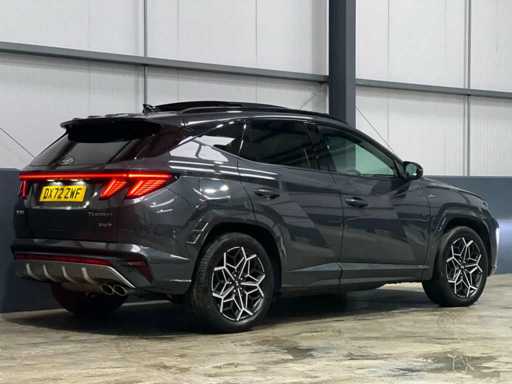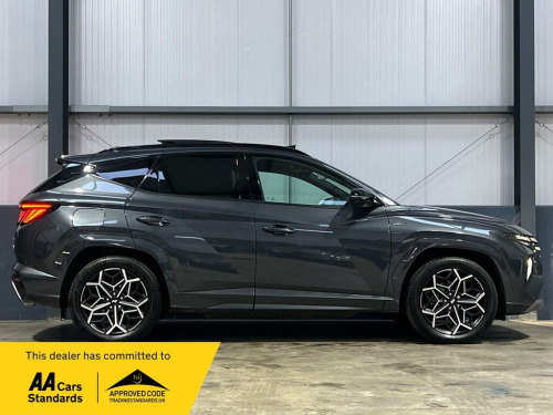 Discover this 2022 Hyundai TUCSON T-GDi N Line S, a sophisticated Plug-in Hybrid presented in excellent condition. This Four Wheel Drive model boasts a 1.6L petrol engine and meets Euro 6 emissions standards. Inside, you'll find a host of convenient features including a heated steering wheel for those chilly mornings, a wireless phone charging pad to keep your devices powered, and Blind Spot Collision Avoidance Assist for enhanced safety. It also comes equipped with both an AC charging cable for charging stations and an ICCB cable for domestic power sockets, making hybrid driving seamless.This TUCSON N Line S offers practical advantages, highlighted by its generous boot space, perfect for all your luggage or shopping needs. Furthermore, its placement in a low insurance group makes it an economical choice for many drivers, indicating how it offers better value compared to similar vehicles. This combination of advanced technology, practicality, and cost effectiveness makes this Hyundai TUCSON a compelling option., .25in touchscreen satellite navigation - mapcare - live services, 12v power outlet - front centre facia and luggage compartment, 19in alloy wheels, abs - anti-lock brake system, adjustable head restraints, adjustable intermittent front windscreen wipers with aero wiper blade, airbags - front - front side - curtain and centre front airbag, alarm - thatcham category 1, alloy pedals, armrest - front with storage, armrest - rear with cup holders, automatic dimming rear view mirror, automatic windscreen wipers with rain sensor, bas - brake assist system, blind spot collision avoidance assist, bluelink, bluetooth connectivity, body colour bumpers, body coloured wheel arch inserts, central locking - remote control, charging cable - ac charging stations, childproof rear door locks, climate control - three zone, cruise control - smart adaptive speed control with stop and go function, dab digital radio, dbc - downhill brake control, daytime running lights - led, deadlocks, door frame moulding - gloss black, door mirrors - electric adjustment and heated with power folding function, door mirrors with integrated indicators - body coloured, drive mode select, driver attention warning, drivers seat height adjustment - manual, drivers seat lumbar support - electric, e-call, ess - emergency stop signal, electric parking brake with auto hold function, electric windows - front and rear with anti-trap mechanism and one touch control, electronic stability control - esc, exterior door handles - body coloured, forward collision-avoidance assist - fca with car - pedestrian and cycle, forward collision-avoidance assist - junction turning, front passenger airbag de-activation switch, front seatbelt pre-tensioners, front and rear seatbelt reminder, hac - hill-start assist control, headlights - automatic with dusk sensor, headlights - led - mfr with static bending light, heated front seats, heated steering wheel, high beam assist, iccb cable - domestic power sockets, isofix child seat anchorage points - rear, immobiliser, intelligent speed limit assist - isla, interior light - ambient lighting, interior light - luggage compartment, interior light - map reading lights, interior personal led light and overhead console lamp, krell premium audio - 8 speakers and subwoofer, lane follow assist - lfa, lane keep assist - lka, locking wheel nuts, luggage cover, manual speed limit assist - msla, multi collision braking - mca, panoramic sunroof - glass - electric tilt and slide, parking sensors - front and rear, parking system - rear camera, passenger seat height adjustment - manual, phone connection - android auto, phone connection - apple carplay, positioning lights led, power assisted steering, privacy glass - rear windows and tailgate, radiator grille - dark chrome, rear cross traffic collision avoidance, rear lights - led, rear side window blind, roof rails, seatbelts - height adjustable driver and front passenger, seats - 40-20-40 split folding rear, skid plates - front and rear - silver, smart electric tailgate, smart key - keyless entry with engine start-stop button, speed sensitive automatic door locking, steering wheel audio and phone controls, sun visors with driver and passenger illuminated led vanity mirrors, supervision instrument cluster - 10.25in, tsa - trailer stability assist, tinted glass with windscreen shade band, tyre pressure monitoring system with individual tyre pressure display, tyre repair kit, usb connections - front and rear, windscreen washer fluid sensor and warning indicator, wireless phone charging pad, leather-suede - black with red stitching