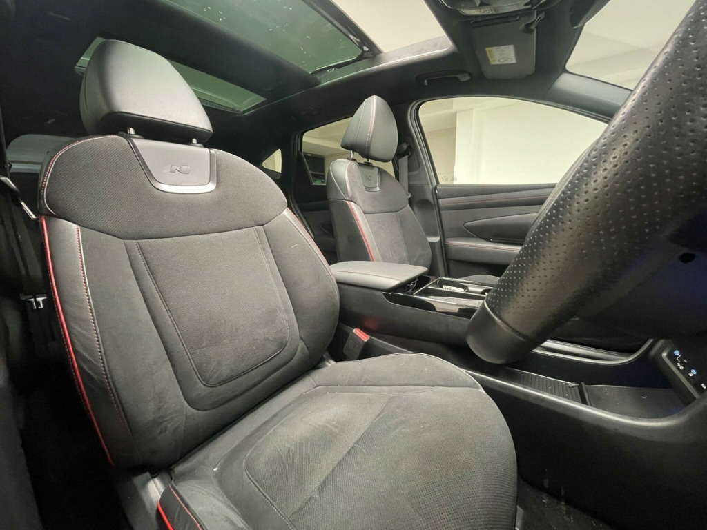 This 2024 Hyundai TUCSON T-GDi N Line S is a superb example, having had only one owner since new. This Four Wheel Drive plug in hybrid boasts a 1.6 litre petrol engine and meets Euro 6 emissions standards. It comes equipped with a Type 2 charging cable, and seamless integration for your smartphone with both Android Auto and Apple CarPlay. Comfort is enhanced by a heated steering wheel, and parking is made simple with front and rear parking sensors.The TUCSON N Line S offers a generous boot space, perfect for all your needs. Its advanced features, including the plug in hybrid technology and four wheel drive system, position it as a more capable and efficient choice compared to many other vehicles in its class. This combination of practicality, technology, and a single owner history makes it a compelling option for any discerning driver. .3in widescreen navigation with bluelink and mapcare, 12v power outlet - front centre facia and luggage compartment, 12in projection head-up display, 19in alloy wheels - n-line design, 64 colour selectable ambient interior lighting, abs - anti-lock brake system, active bonnet system, adjustable head restraints, air conditioning - climate control - three zone, airbags - front - front side - curtain and centre front airbag, alarm - thatcham category 1, armrest - front with storage, armrest - rear with cup holders, automatic dimming rear view mirror, automatic windscreen wipers with rain sensor, blind spot view monitor, bluelink, bluetooth connectivity, bottle holders - front centre console and doors, bumper mouldings - glossy black, central locking - remote control, charging cable - 7 pin type 2, cruise control - smart adaptive speed control with stop and go function, curtain airbag rollover sensor, dbc - downhill brake control, daytime running lights - led, deadlocks, door mirrors - electric adjustment and heated with power folding function, door mirrors with integrated indicators - body coloured, drive mode select, drivers seat height adjustment - electric, drivers supervision instrument cluster with lcd display 12.3in, electric parking brake with auto hold function, electric windows - front and rear with anti-trap mechanism and one touch control, exterior door handles - body coloured, forward collision-avoidance assist - fca with car - pedestrian and cycle, forward collision-avoidance assist - junction turning, front passenger airbag de-activation switch, front passengers seat electric adjustments, front seatbelt pre-tensioners, front ventilated seats, front and rear seatbelt reminder, hac - hill-start assist control, headlights - automatic with dusk sensor, headlights - matrix led, heated front seats, heated rear seats, heated steering wheel, highway drive assist, isofix child seat anchorage points - rear, immobiliser, intelligent speed limit assist - isla, interior light - luggage compartment, interior light - map reading lights, krell premium audio - 8 speakers and subwoofer, lane follow assist - lfa, lane keep assist - lka, leather wrapped steering wheel and gear knob, locking wheel nuts, luggage cover, luggage hooks, luggage net, metal pedals, n line design package, n line interior design package, over the air - ota - navigation map updates, pcaa - parking collision avoidance assist, panoramic sunroof - glass - electric tilt and slide, parking distance warning - front-rear-side, parking sensors - front and rear, parking system - rear camera and guidance system, phone connection - android auto, phone connection - apple carplay, power assisted steering, privacy glass - rear windows and tailgate, rear lights - led, rear seat - remote folding function, rear side window blind, roof rails, seatbelts - height adjustable driver and front passenger, seats - 40-20-40 split folding rear, smart electric tailgate, smart key - keyless entry with engine start-stop button, soft touch rear door paneling, speakers - 2 tweeters - 2 front - 2 rear, speed sensitive automatic door locking, steering wheel audio and phone controls, sun visors with driver and passenger illuminated led vanity mirrors, surround view monitor - svm, tsa - trailer stability assist, tucson branded metal door scuff plate, touch sensitive climate controls with temperature dials, trailer wiring package, tyre pressure monitoring system with individual tyre pressure display, tyre repair kit, usb c - front x2, usb c - rear x2, under floor storage in boot, vsm - vehicle stability management, wheel arch inserts - body coloured, windscreen washer fluid sensor and warning indicator, wireless phone charging pad, ecall