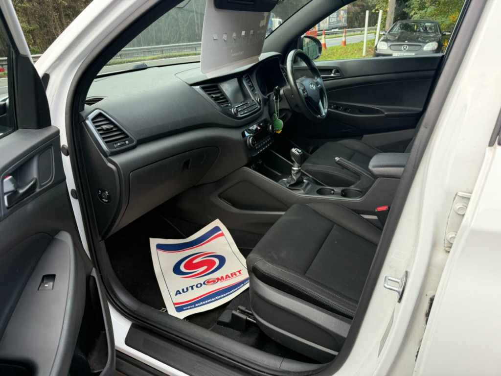 This 2018 Hyundai TUCSON T-GDi GO! SE boasts a full service history and a clear vehicle history check, offering you peace of mind. This Euro 6 compliant 1.6 litre petrol model comes with a 6 month warranty and a 12 month MOT provided on purchase. Inside, you'll find comfortable heated front seats, automatic headlights that activate with a dusk sensor, and seamless integration for your smartphone with Apple CarPlay and Android Auto. Parking is made easier with rear parking sensors.The TUCSON GO! SE offers a compelling blend of practicality and performance. Its acceleration from 0-62mph in just 9.2 seconds demonstrates its responsive nature, while the large boot space ensures you have ample room for luggage or shopping. These features, combined with its low insurance group, indicate that this Hyundai TUCSON is a more economical and convenient choice compared to many other vehicles in its class.. 12V Power Outlet - Front Console and Luggage Compartment, 19in Alloy Wheels, 6 Airbags - Front - Front Seat Side and Curtain, 6 Speakers - 2 Tweeters - 2 Front Door - 2 Rear Door, 8in Touchscreen Satellite Navigation with Traffic Messaging Channel - Reversing Camera - Mapcare and Tom Tom LIVE Services, ABS - Anti-Lock Brake System with EBD - Electronic Brake-Force Distribution, Active Bonnet System, Adjustable Head Restraints, Armrest - Front with Storage, Armrest - Rear Centre with Cup Holders, Automatic De-Fog System for Front Windscreen, Automatic Dimming Rear View Mirror, Automatic Headlights with Dusk Sensor, Automatic Windscreen Wipers with Rain Sensor, BAS - Brake Assist System, Bluetooth Connectivity, Body Colour Bumpers, Bottle Holders - Front Centre Console and Door, Childproof Rear Door Locks, Climate Control - Dual Zone with Ioniser, Courtesy Light - Front Door, Cruise Control with Speed Limiter, Curtain Airbag Rollover Sensor, DBC - Downhill Brake Control, Dark Silver Interior Accents, Daytime Running Lights - LED, Deadlocks, Digital Clock, Door Mirrors - Black Gloss, Door Mirrors - Electric Adjustment and Heated with Power Folding Function, Driver Seat Height Adjustment, ESP - Electronic Stability Programme, ESS - Emergency Stop Signal, Electric Windows - Front and Rear with Drivers Anti-Trap and One-Touch Up-Down Control, Exterior Door Handles - Body Coloured, Flex Steering, Front Fog Lights, Front Map Reading Lights, Front Passenger Airbag De-Activation Switch, Glove Compartment with Cooling Function and Illumination, Go! Emblem, HAC - Hill-Start Assist Control, Headlights - Follow Me Home Function, Headlining - Black, Heated Front Seats, Height Adjustable Front Seatbelts, ISOFIX Child Seat Anchorage Points - Rear - Outer Rear, Immobiliser, Interior Door Handles - Chrome Effect, Interior Light - Luggage Compartment, Interior Trim - Soft Touch - Door Top and Centre Trim, Lane Departure Warning System with Lane Keeping Assist, Leather Wrapped Steering Wheel and Gear Knob, Locking Wheel Nuts, Luggage Hooks, Luggage Net, Parking Sensors - Rear, Perimeter Alarm, Phone Connection - Android Auto, Phone Connection - Apple CarPlay, Positioning Lights LED, Power Assisted Steering, Privacy Glass - Rear Windows, Projection Headlights with Static Cornering Lights, Rear Lights - LED, Rear Spoiler with Integral LED Brake Light, Remote Central Locking, Retractable Load Cover, Roof Rails - Silver, Seatbelt Anchor Pre-Tensioners - Front, Seatbelt Reminder - Front and Rear, Seats - 60-40 Split Folding Rear, Seats - Drivers Electric Lumbar Support, Seats - Rear Reclining, Side Body Moulding - Black, Skid Plates - Front - Silver, Spare Wheel - Full Size Alloy, Speed Limit Information System, Speed Sensitive Automatic Door Locking, Steering Wheel Audio and Phone Controls, Stereo RDS DAB Digital Radio with MP3 Compatibility, Sun Visors with Driver and Passenger Illuminated LED Vanity Mirrors, Sunglasses Holder, TSA - Trailer Stability Assist, Tinted Glass with Shade Band, Trip Computer, Tyre Pressure Monitoring System with Individual Tyre Display, USB and AUX Connections, VSM - Vehicle Stability Management, Windscreen Washer Fluid Sensor and Warning Indicator. Full service history