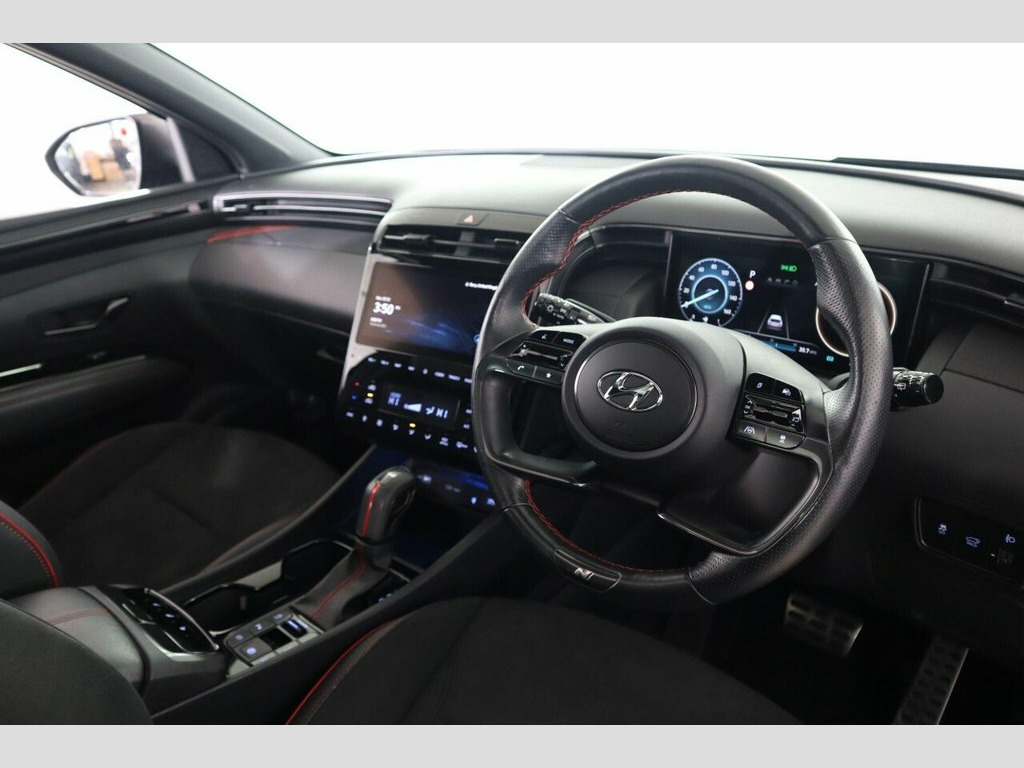 This 2022 Hyundai TUCSON T-GDi N Line S is a superb example, having had only one owner since new. This Euro 6 compliant petrol hybrid boasts a 1.6 litre engine and comes equipped with a wireless phone charging pad, front and rear parking sensors for effortless manoeuvring, and a smart key system for keyless entry and engine start. Inside, you'll appreciate the three zone climate control to keep everyone comfortable, and the smart adaptive cruise control with stop and go function for relaxed journeys. The N Line S trim offers a host of benefits that set this TUCSON apart. Its large boot space provides ample room for all your luggage or shopping needs, making it incredibly practical. Furthermore, its low insurance group rating means that running costs are kept to a minimum, offering excellent value for money compared to similar vehicles. This well maintained Hyundai TUCSON is ready for its next adventure. 10.25in Touchscreen Satellite Navigation, 12V Power Outlet - Front Centre Facia an, 19in Alloy Wheels, ABS - Anti-Lock Brake System, Adjustable Head Restraints, Adjustable Intermittent Front Windscreen, Airbags - Front - Front Side - Curtain a, Alarm - Thatcham Category 1, Alloy Pedals, Armrest - Front with Storage, Armrest - Rear with Cup Holders, Automatic Dimming Rear View Mirror, Automatic Windscreen Wipers with Rain Se, BAS - Brake Assist System, Blind Spot Collision Warning, BlueLink, Bluetooth Connectivity, Body Colour Bumpers, Body Coloured Wheel Arch Inserts, Central Locking - Remote Control, Childproof Rear Door Locks, Climate Control - Three Zone, Cruise Control - Smart Adaptive S