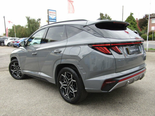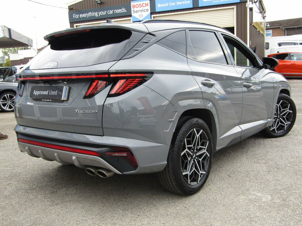 STUNNING, 1 OWNER, HYUNDAI TUCSON 1.6 T-GDi MHEV N Line, Petrol Hybrid DCT Euro 6 (s/s) (150 ps). Finished in SHADOW GREY MET with contrasting HEATED ALCANTARA TRIM. This Tucson ticks all of the family car boxes, with practicality and a good interior its strongest points. This Premium trim brings plenty of high spec and is the best option for a well-valued Tucson. Features include BALANCE OF 5 YEARS WARRANTY. Sat Nav, Heated seats, Reverse Camera, DAB Radio, B/Tooth, LED Run Lights, 19" Alloys and much more. Dealer serviced at 23305 miles, 42764 miles, 54360 miles and on arrival at 63652 miles. EMC IS A FAMILY RUN BUSINESS, EST IN 1989. OUR AIM IS TO PROVIDE A SIMPLE, EASY AND CARING BUYING EXPERIENCE. Please call JEFF or BEN to reserve this wonderful example today. Shadow Grey, 19in Alloy Wheels, Privacy Glass - Rear Windows and Tailgat, Wireless Phone Charging Pad, DAB Digital Radio, Bluetooth Connectivity, Heated Front Seats, Parking System - Rear Camera, Parking Sensors - Front and Rear