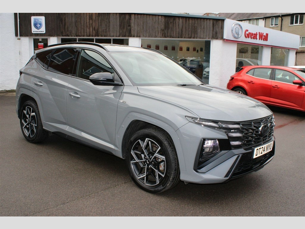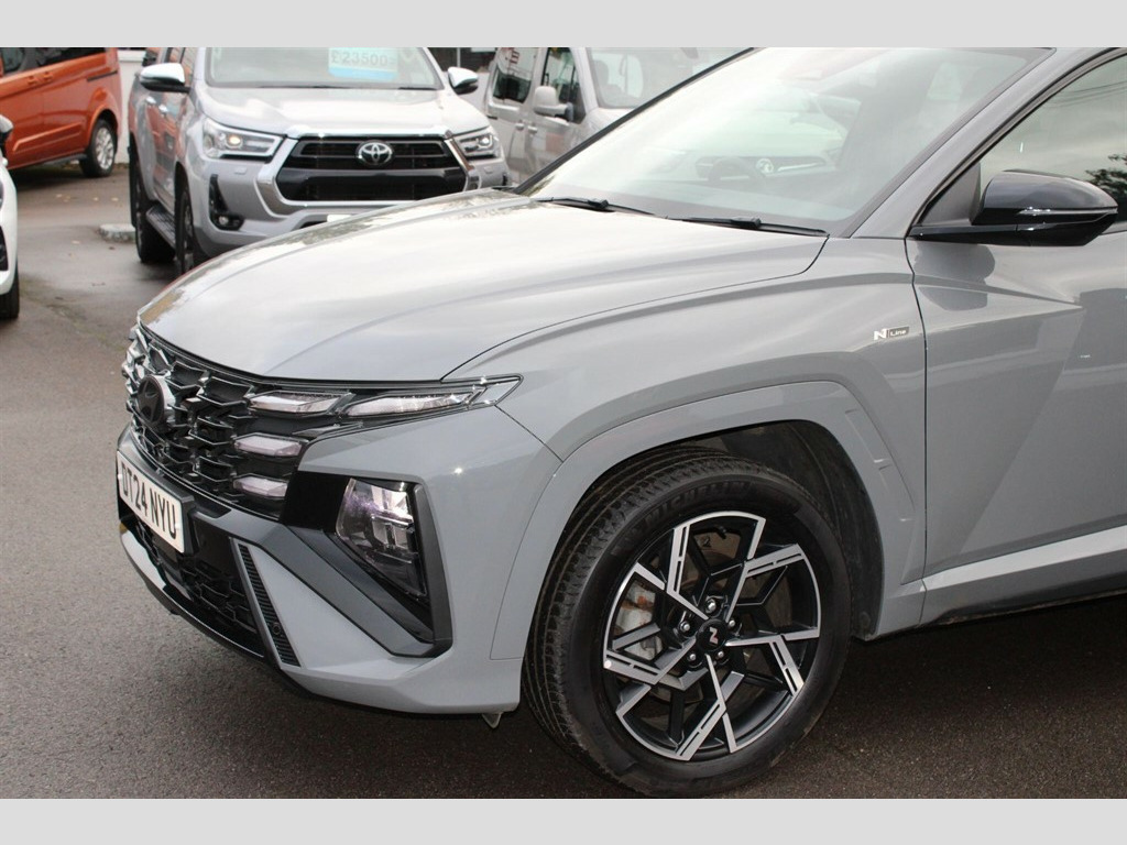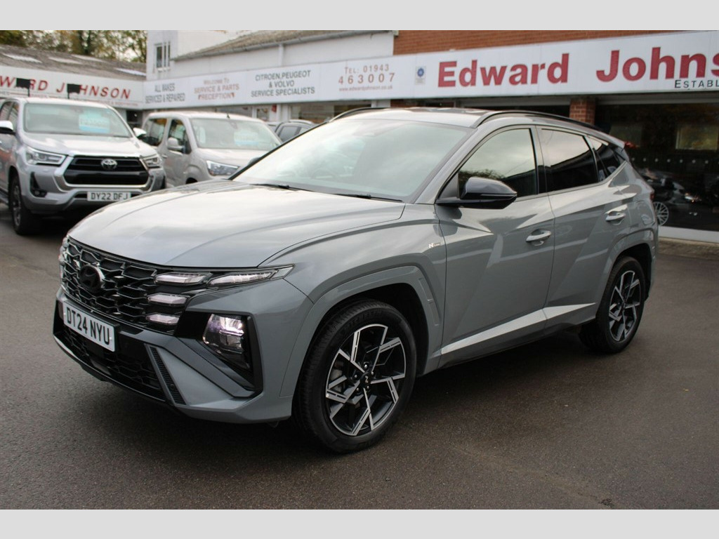 This 2024 Hyundai TUCSON T-GDi N Line presents a superb ownership proposition, having had only one owner from new. This stylish SUV boasts a 1.6 litre petrol hybrid engine, meeting Euro 6 emissions standards. Its N Line trim level enhances its sporty appeal, and you'll appreciate the convenience of keyless entry with a start-stop button, alongside front and rear parking sensors for effortless manoeuvring. Stay connected and entertained with Android Auto phone integration, and enjoy the comfort of a heated steering wheel on colder days. The striking LED headlights ensure excellent visibility. The TUCSON T-GDi N Line offers a compelling blend of performance and practicality. Its acceleration from 0-62mph in just 8.2 seconds demonstrates its responsive nature, outperforming many similar vehicles. Furthermore, its generous boot space provides ample room for all your luggage or shopping needs, making it a versatile choice for families and individuals alike. This particular model also benefits from a low insurance group, which can help to reduce your running costs, further enhancing its appeal as a sensible and enjoyable vehicle. 12.3in Widescreen Navigation with Bluelink and Mapcare,12V Power Outlet - Front Centre Facia and Luggage Compartment,19in Alloy Wheels - N-Line Design,64 Colour Selectable Ambient interior Lighting,ABS - Anti-Lock Brake System,Active Bonnet System,Adjustable Head Restraints,Air Conditioning - Climate Control - Dual Zone,Airbags - Front - Front Side - Curtain and Centre Front Airbag,Alarm - Thatcham Category 1,Armrest - Front with Storage,Armrest - Rear with Cup Holders,Automatic Dimming Rear View Mirror,Automatic Windscreen Wipers with Rain Sensor,BlueLink,Bluetooth Connectivity,Bottle Holders - Front Centre Console and Doors,Bumper Mouldings - Glossy Black,Central Locking - Remote Control,Cruise Control - Smart Adaptive Speed Control with Stop and Go Function,Curtain Airbag Rollover Sensor,DBC - Downhill Brake Control,Daytime Running Lights - LED,Deadlocks,Door Mirrors - Electric Adjustment and Heated with Power Folding Function,Door Mirrors with Integrated Indicators - Body Coloured,Drive Mode Select,Drivers Seat Height Adjustment - Manual,Drivers Supervision Instrument Cluster with LCD Display 12.3in,Electric Parking Brake with Auto Hold Function,Electric Windows - Front and Rear with Anti-Trap Mechanism and One Touch Control,Exterior Door Handles - Body Coloured,Forward Collision-Avoidance Assist - FCA with Car - Pedestrian and Cycle,Forward Collision-Avoidance Assist - Junction Turning,Front Passenger Airbag De-Activation Switch,Front Passengers Seat Height Adjustment - Manual,Front Seatbelt Pre-Tensioners,Front and Rear Seatbelt Reminder,HAC - Hill-Start Assist Control,Headlights - Automatic with Dusk Sensor,Headlights - LED,Heated Front Seats,Heated Steering Wheel,Highway Drive Assist,ISOFIX Child Seat Anchorage Points - Rear,Immobiliser,Intelligent Speed Limit Assist - ISLA,Interior Light - Luggage Compartment,Interior Light - Map Reading Lights,Lane Follow Assist - LFA,Lane Keep Assist - LKA,Leather Wrapped Steering Wheel and Gear Knob,Locking Wheel Nuts,Luggage Cover,Luggage Hooks,Luggage Net,Metal Pedals,N Line Design Package,N Line Interior Design Package,Over The Air - OTA - Navigation Map Updates,Parking Sensors - Front and Rear,Parking System - Rear Camera and Guidance System,Phone Connection - Android Auto,Phone Connection - Apple CarPlay,Power Assisted Steering,Privacy Glass - Rear Windows and Tailgate,Rear Lights - LED,Rear Seat - Remote Folding Function,Rear Side Window Blind,Roof Rails,Seatbelts - Height Adjustable Driver and Front Passenger,Seats - 40-20-40 Split Folding Rear,Smart Electric Tailgate,Smart Key - Keyless Entry with Engine Start-Stop Button,Soft Touch Rear Door Paneling,Speakers - 2 Tweeters - 2 Front - 2 Rear,Speed Sensitive Automatic Door Locking,Steering Wheel Audio and Phone Controls,Sun Visors with Driver and Passenger Illuminated LED Vanity Mirrors,TSA - Trailer Stability Assist,TUCSON Branded Metal Door Scuff Plate,Touch Sensitive Climate Controls with Temperature Dials,Trailer Wiring Package,Tyre Pressure Monitoring System with Individual Tyre Pressure Display,Tyre Repair Kit,USB C - Front x2,USB C - Rear x2,Under Floor Storage in Boot,VSM - Vehicle Stability Management,Wheel Arch Inserts - Body Coloured,Windscreen Washer Fluid Sensor and Warning Indicator,Wireless Phone Charging Pad,eCall