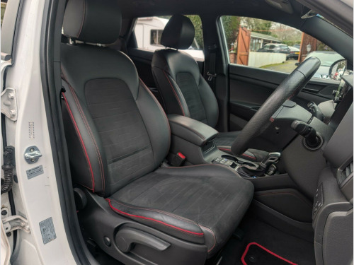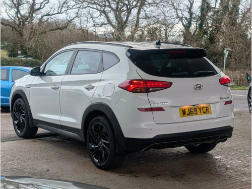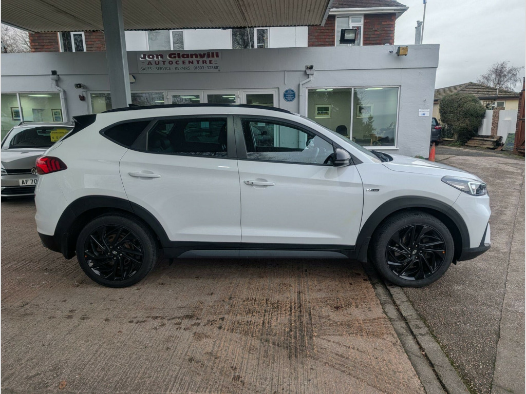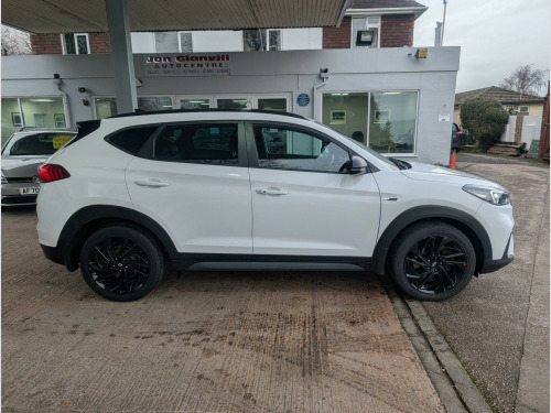 Hyundai TUCSON 1.6 T-GDi N Line DCT Euro 6 (s/s) 5dr.We are pleased to be offering this very nice example of Hyundai's Tucson. This 2019 example is a T-GDi N Line, so has a very nice cabin and interior, with features like heated front seats, smart keyless entry with a start-stop button, and front and rear parking sensors with a rear camera system to ensure a comfortable and convenient driving experience. Automatic headlights with a dusk sensor further add to the ease of use. This presents an exceptional opportunity to own one of these vehicles, and with a low mileage of just 42,560 miles, this is well worth consideration. Furthermore, the generous boot space makes it a highly practical choice for families or those who require ample storage. These highlights collectively position this Hyundai TUCSON as a well rounded and appealing option.This vehicle also stands out with its performance being able to accelerate to 62mph in a brisk 8.9 seconds. With a Euro 6 rating it avoids low emission zone charges in many of our large cities here in the UK.This car will come with a full 12 months MOT, be serviced up to date and, for your complete peace of mind, it will be covered by our own 6 months/6000 mile warranty which can be used at a garage of your choice. If you would like more information, or like to arrange a viewing/test drive, please do not hesitate to get in touch. Part-exchange welcome. Please visit our website (https://www.jonglanvillautocentre.co.uk) for vehicles available which are not advertised on Autotrader. If you are having difficulty finding a particular type/make of vehicle, please get in touch as we may be able to find one for you. ather-suede - black with red stitching, phone connection - apple carplay, heated front seats, 8in touchscreen satellite navigation including traffic messaging channel - mapcare and live services, parking sensors - front and rear, parking system - rear camera, cruise control with speed limiter, drive mode select, privacy glass - rear windows and tailgate, hac - hill-start assist control, smart key - keyless entry with engine start-stop button, automatic dimming rear view mirror with compass, automatic windscreen wipers with rain sensor, automatic headlights with dusk sensor, electric parking brake, 19in alloy wheels, 6 speakers - 2 tweeters - 2 front door - 2 rear door, dab digital radio, abs - anti-lock brake system, 6 airbags - front - front seat side and curtain, active bonnet system, air conditioning - dual zone climate control, armrest - front with storage, armrest - rear centre with cup holders, autonomous emergency brake, bas - brake assist system, black headliner, bluetooth connectivity, bottle holders - front centre console and door, childproof rear door locks, curtain airbag rollover sensor, dbc - downhill brake control, daytime running lights - led, deadlocks, door courtesy lights, door mirrors - electric adjustment and heated with power folding function, drivers seat height adjustment - manual, drivers seat lumbar support - electric, esp - electronic stability programme, ess - emergency stop signal, electric windows - front and rear with drivers anti-trap and one-touch up-down control, front fog lights, front passenger airbag de-activation switch, front passenger seat height adjustment - manual, glove compartment with cooling function and illumination, isofix child seat anchorage points - rear - outer rear, lane keep assist - lka, locking wheel nuts, luggage hooks, luggage net, n line badging, n line branded gear stick, n line branded leather wrapped steering wheel, n line exclusive front and rear bumpers, n line grille, perimeter alarm, phone connection - android auto, positioning lights led, rear lights - led, rear seats - reclining manual, seats - 60-40 split folding rear, spare wheel - temporary space saver, speed limit information system, speed sensitive automatic door locking, sports suspension, static cornering lights, steering wheel audio and phone controls, sun visors with driver and passenger illuminated led vanity mirrors, sunglasses holder, tsa - trailer stability assist, trip computer, twin exhaust finisher, tyre pressure monitoring system with individual tyre display, usb and aux connections - front, vsm - vehicle stability management, windscreen washer fluid sensor and warning indicator, wireless phone charging pad