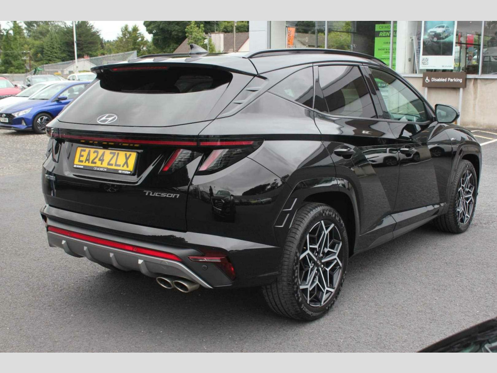 Step into the ultimate fusion of dynamic performance and head-turning design with this 2024 Hyundai Tucson N Line S. Powered by the responsive 1.6 T-GDi petrol engine, this range-topping model delivers confident performance with a sporty edge, wrapped in bold N Line styling inside and out.Highlights Include: 1.6 T-GDi Petrol Engine – Punchy and refined performance N Line Styling Pack – Sports bumpers, darkened trim, twin exhausts Leather & Suede Sports Seats – Heated front & rear with driver memory BOSE Premium Sound System️ Panoramic Glass Sunroof 10.25" Touchscreen with Navigation, Apple CarPlay & Android Auto 360° Parking Camera with Smart Parking Assist Smart Cruise Control, Blind Spot Monitoring, Lane Follow Assist⚙️ Selectable Drive Modes for a truly connected driveDesigned to make every journey more exciting, this Tucson N Line S blends standout looks with impressive practicality and all the premium tech you'd expect from a flagship SUV.