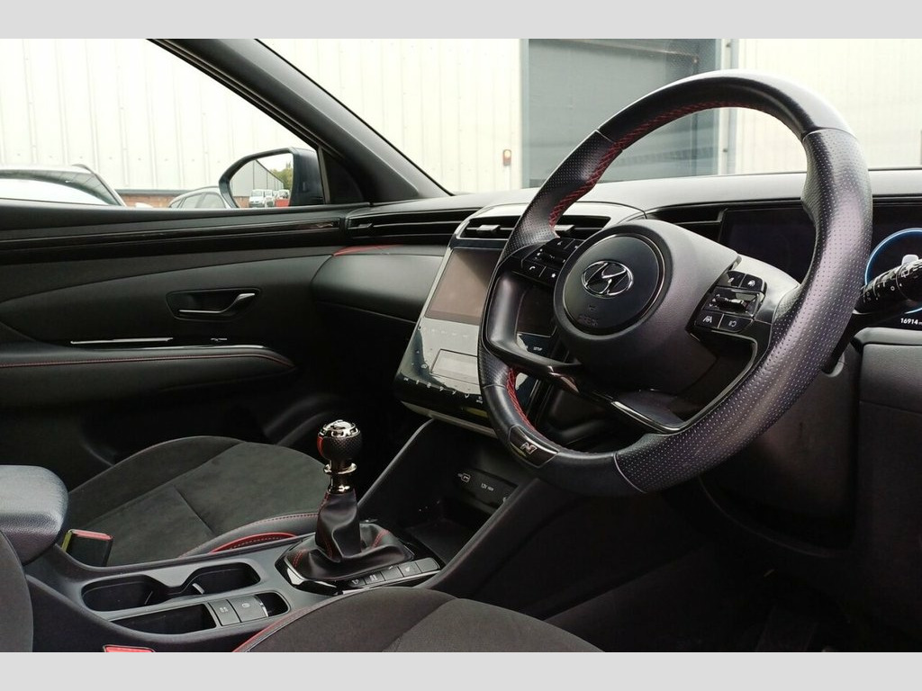 This 2022 Hyundai TUCSON T-GDi N Line presents an exceptional ownership proposition with only one previous owner and a remarkably low mileage of just 16912 miles, all backed by a clear vehicle history check. This Euro 6 compliant 1.6 litre petrol model, finished in the sporty N Line trim, offers a refined driving experience. Inside, you'll find a host of convenient features designed to enhance your journey, including Smart Key with keyless entry and engine start stop button, a wireless phone charging pad, and seamless smartphone integration with both Android Auto and Apple CarPlay. For added comfort, the front seats are heated, ensuring a pleasant drive in any weather. The TUCSON T-GDi N Line stands out from similar vehicles thanks to its thoughtful design and practical benefits. Its low insurance group rating means more affordable running costs, while the generous boot space provides ample room for luggage, shopping, or sports equipment, making it a versatile choice for families and individuals alike. This well maintained, single owner vehicle offers a compelling combination of style, technology, and practicality. 10.25in Touchscreen Satellite Navigation, 12V Power Outlet - Front Centre Facia an, 19in Alloy Wheels, ABS - Anti-Lock Brake System, Adjustable Head Restraints, Adjustable Intermittent Front Windscreen, Airbags - Front - Front Side - Curtain a, Alarm - Thatcham Category 1, Armrest - Front with Storage, Armrest - Rear with Cup Holders, Automatic Dimming Rear View Mirror, Automatic Windscreen Wipers with Rain Se, BAS - Brake Assist System, BlueLink, Bluetooth Connectivity, Body Colour Bumpers, Body Coloured Wheel Arch Inserts, Central Locking - Remote Control, Childproof Rear Door Locks, Climate Control - Dual Zone, Cruise Control, DAB Digital Radio, Daytime Running Lights - LED, DBC - Downhil