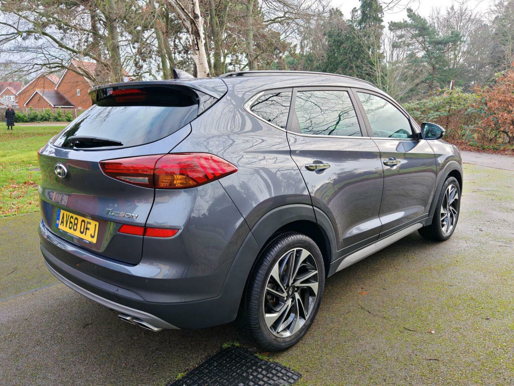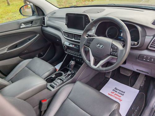 Hyundai TUCSON 1.6 T-GDi Premium SE DCT Euro 6, 25,000 miles | 1 Owner | Huge Factory Spec, We are pleased to offer this stunning Hyundai Tucson Premium SE, presented in exceptional condition throughout. A one-owner car from new with just 25,000 miles, backed by a full Hyundai main dealer service history (7 stamps – pictured), plus recent MOT and service completed in preparation for its next owner. The car sits on unmarked diamond-cut alloy wheels with excellent tyres all round and has clearly been cherished. ⭐ Factory Specification Highlights:, Panoramic glass roof, Bi-LED headlights, Blind Spot Monitoring & Rear Cross-Traffic Alert, Power tailgate, Keyless entry & start, Electric drivers seat, Krell premium sound system, 360° surround view cameras, Satellite navigation, Cruise control, Ambient interior lighting, Heated & ventilated front seats, Heated rear seats, DAB radio, Bluetooth audio & hands-free, Apple CarPlay & Android Auto, Automatic headlights & rain-sensing wipers, Brake Assist, Plus much more, The vehicle has also benefited from a full professional valet and an exterior two-stage machine polish, and is presented in truly outstanding condition. ???? Peace of Mind:, 3 months RAC warranty included, 12 months RAC breakdown cover, Extended RAC warranty options available at excellent prices, Supplied with 2 keys (replacement keys can be costly), We are a family-owned business with a genuine passion for cars and customer service. We pride ourselves on presenting only the very best vehicles and making the buying experience straightforward and enjoyable. Viewing by appointment please