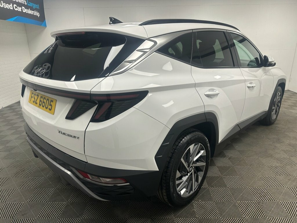 The 2021 Hyundai Tucson SE Connect is a well-equipped compact SUV featuring 17-inch alloy wheels, dual-zone air conditioning, a leather steering wheel, and a 10.25-inch touchscreen with satellite navigation and connected services. It offers connectivity with Apple CarPlay and Android Auto, safety features including a rear-view camera and rear parking sensors, and driving aids such as cruise control, Lane Keep Assist, and Forward Collision-Avoidance Assist. 10.25in Touchscreen Satellite Navigation, 12V Power Outlet - Front Centre Facia an, 18in Alloy Wheels, ABS - Anti-Lock Brake System, Adjustable Head Restraints, Adjustable Intermittent Front Windscreen, Airbags - Front - Front Side - Curtain a, Alarm - Thatcham Category 1, Armrest - Front with Storage, Armrest - Rear with Cup Holders, Automatic Dimming Rear View Mirror, Automatic Windscreen Wipers with Rain Se, BAS - Brake Assist System, Blind Spot Collision Warning, BlueLink, Bluetooth Connectivity, Body Colour Bumpers, Central Locking - Remote Control, Childproof Rear Door Locks, Chrome Effect Bumper Moulding, Climate Control - Dual Zone, Cruise Control, DAB Digital Radio, DBC - Downhill B