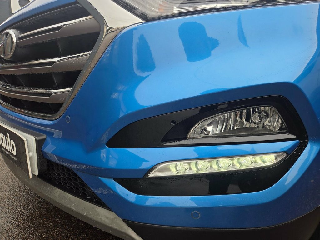 Bluauto Premium Cars are pleased to offer this stunning Hyundai Tucson 1.6 T-GDI Sport Edition. This car has come into our showroom in fantastic condition both inside and out, we can clearly see that the previous 1 owner has taken superb care of this car. Our Hyundai boasts an outstanding service history having been serviced 7 times from new with all of the services being carried out by Hyundai. The servicing has been carried out at the following mileage intervals: 9366, 18686, 25890, 32262, 38509, 42900, 47372. We will also be servicing this car on top of this! Our Tucson comes equipped with the following specification: Dual zone climate control A/C, Black leather interior, Satellite navigation, Cruise control, Bluetooth connectivity, USB and AUX input, Electric front seats, Heated front seats, Heated rear seats, Lane departure warning, Auto wipers, Different drive mode, Auto dimming rearview mirror, Power folding wingmirrors, Rear tinted windows, DAB radio, LED daytime running lights, Rear parking camera, Front & Rear parking sensors, Auto xenon headlights. 12V Power Outlet - Front Console and Lug, 19in Alloy Wheels, 6 Airbags - Front - Front Seat Side and , 6 Speakers - 2 Tweeters - 2 Front Door -, 8in Touchscreen Satellite Navigation wit, ABS - Anti-Lock Brake System with EBD - , Active Bonnet System, Adjustable Head Restraints, Adjustable Intermittent Front Windscreen, Armrest - Front with Storage, Armrest - Rear Centre with Cup Holders, Automatic De-Fog System for Front Windsc, Automatic Dimming Rear View Mirror with , Automatic Headlights with Dusk Sensor, Automatic Windscreen Wipers with Rain Se, BAS - Brake Assist System, Bluetooth Connectivity, Body Colour Bumpers, Bottle Holders - Front Centre Console an, Childproof Rear Door Locks, Ch
